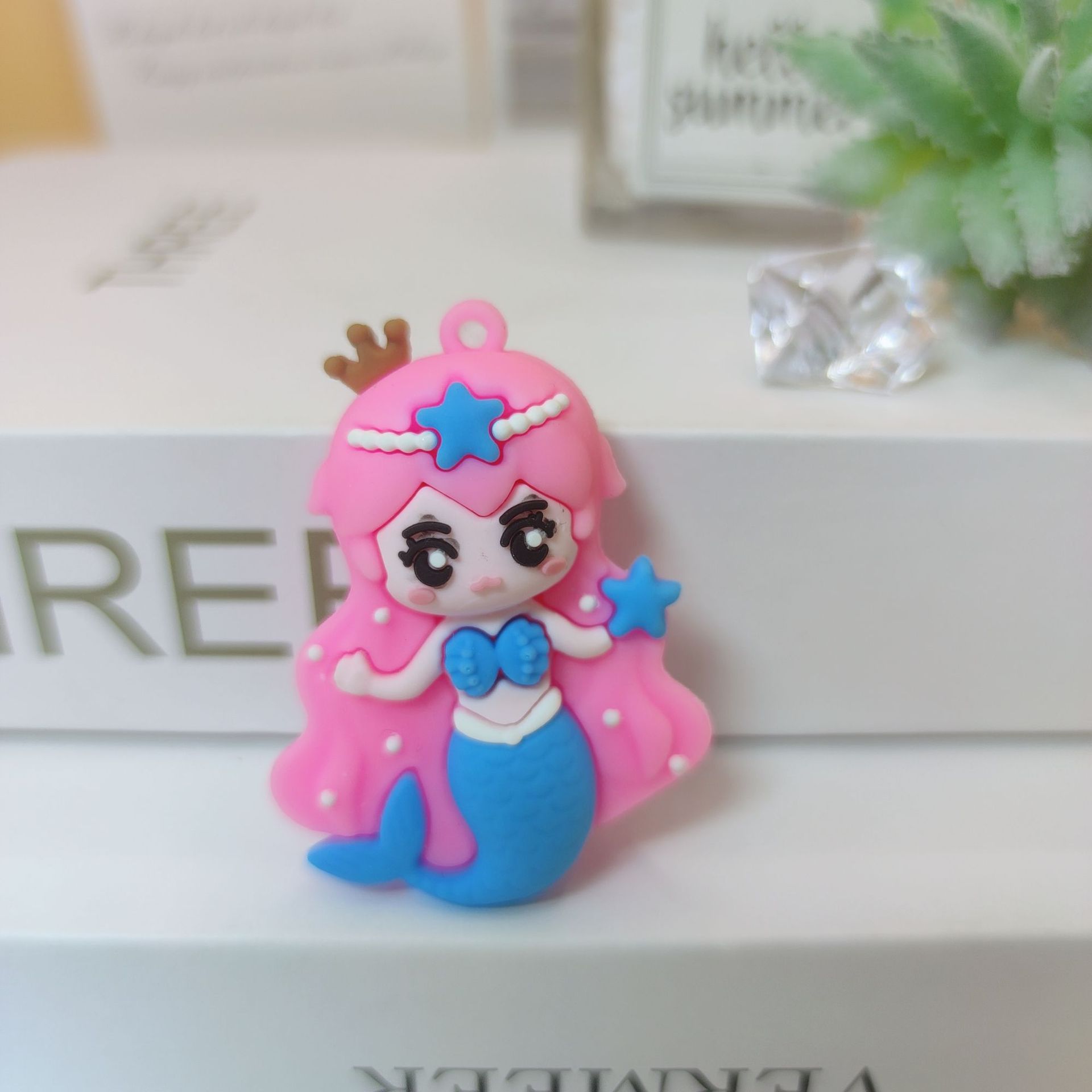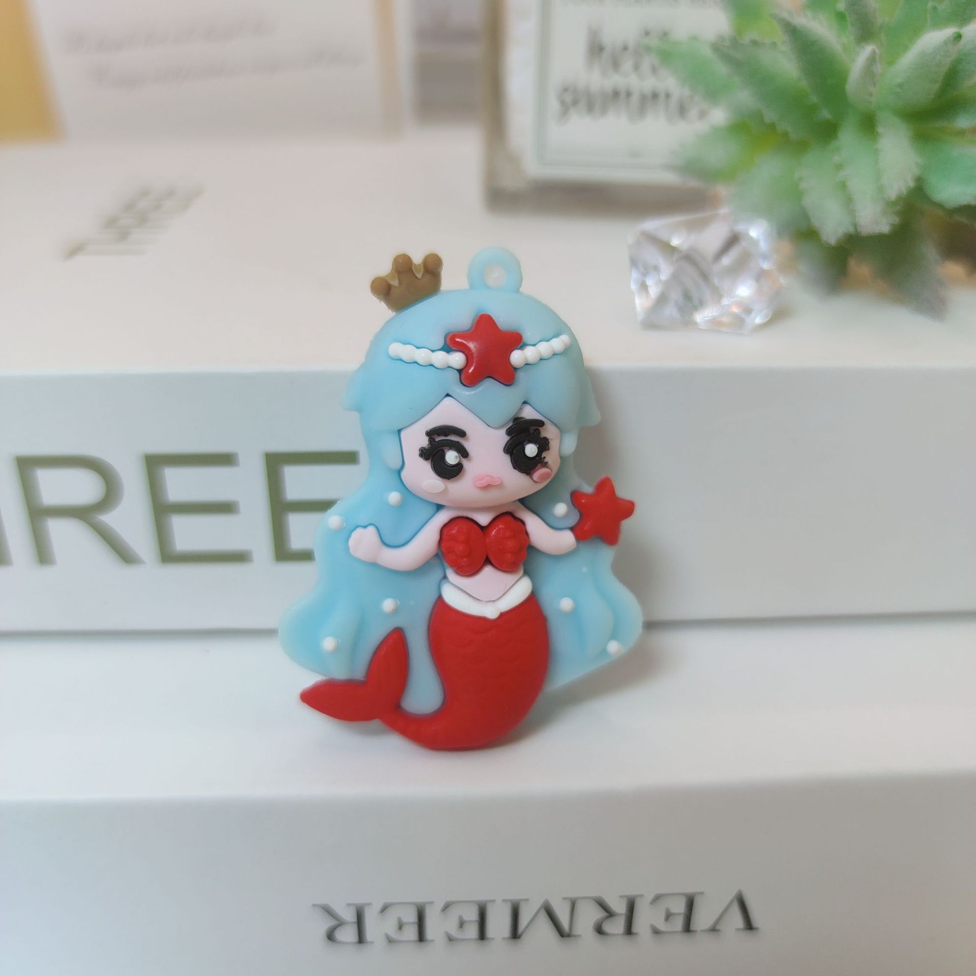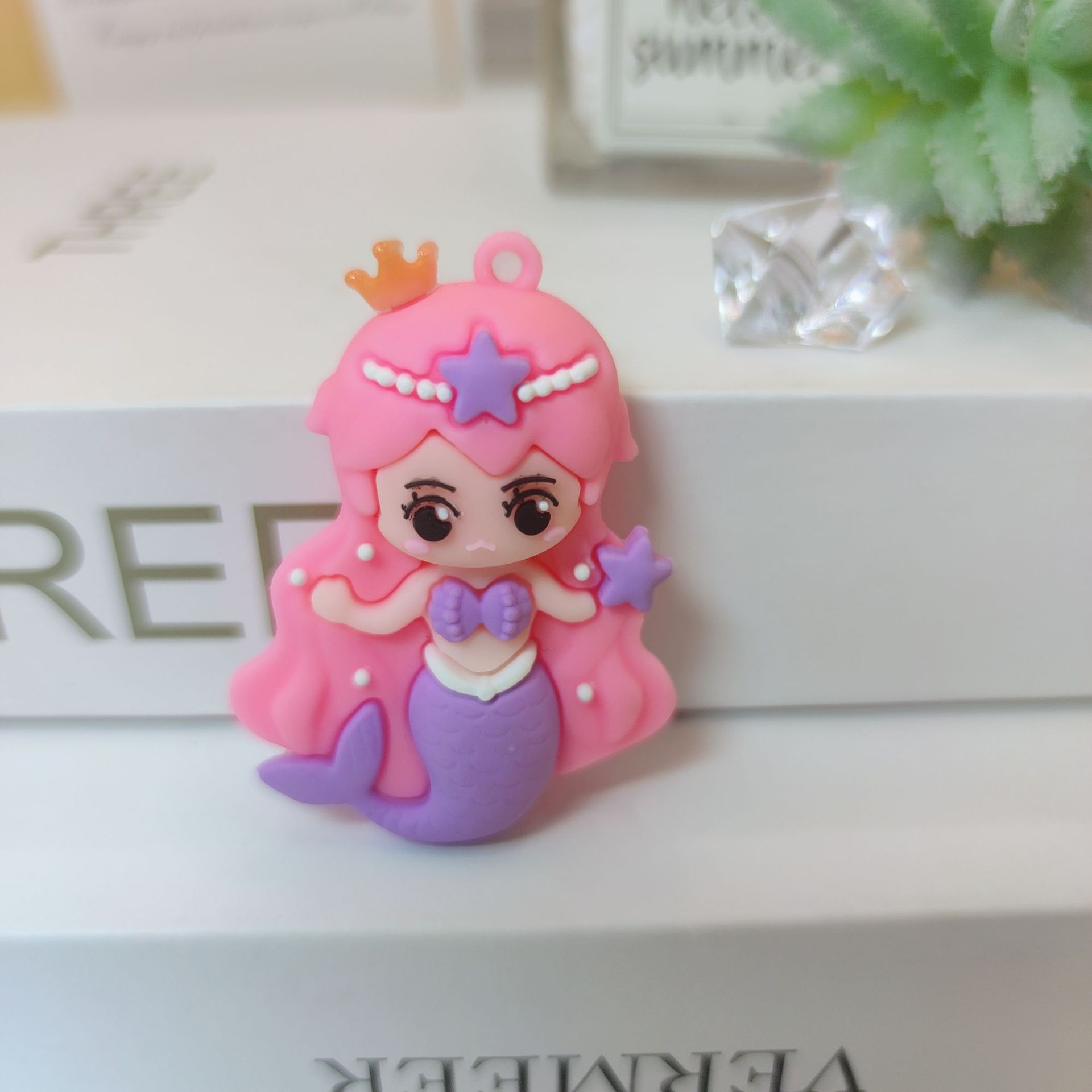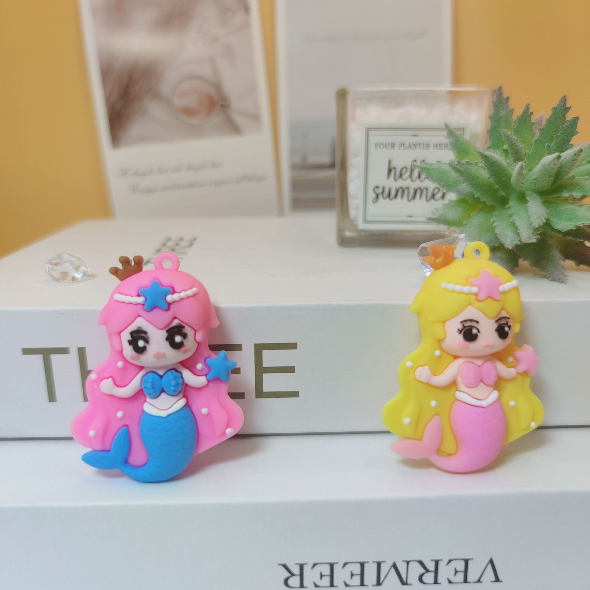 만화 인어 키 체인 펜던트 3 차원 부드러운 접착제 인어 공주 액세서리 케이크 장식품 푸시 작은 선물