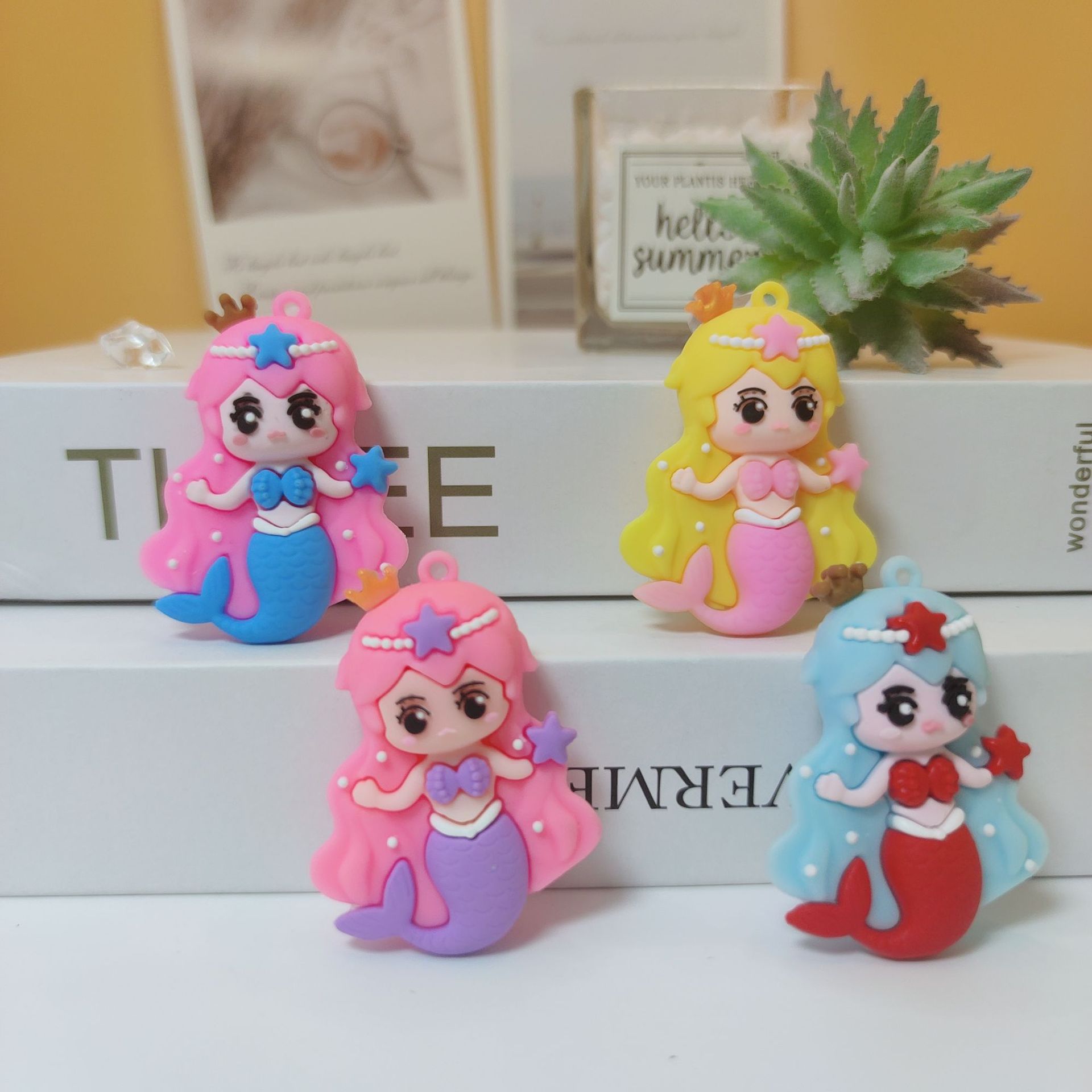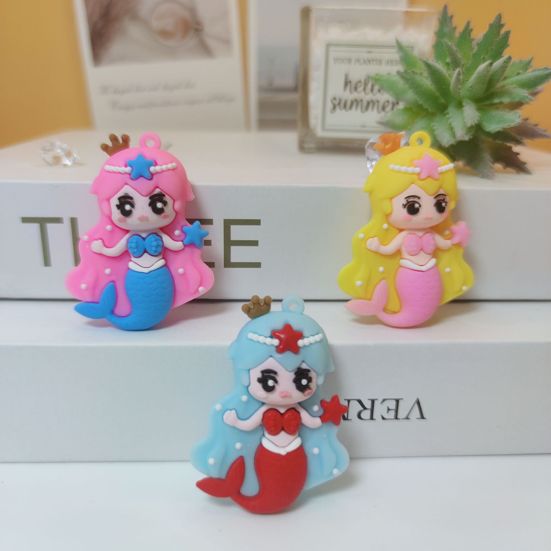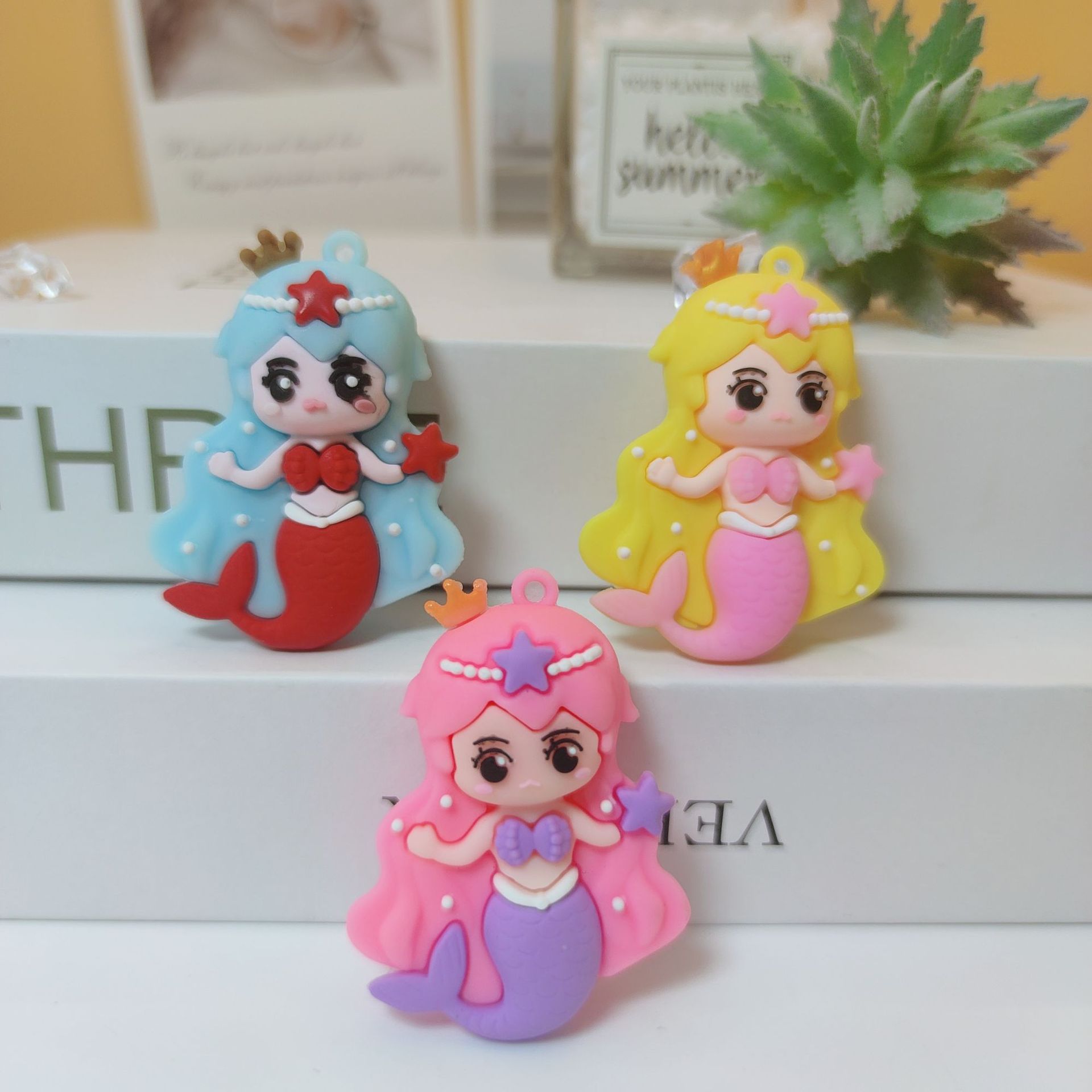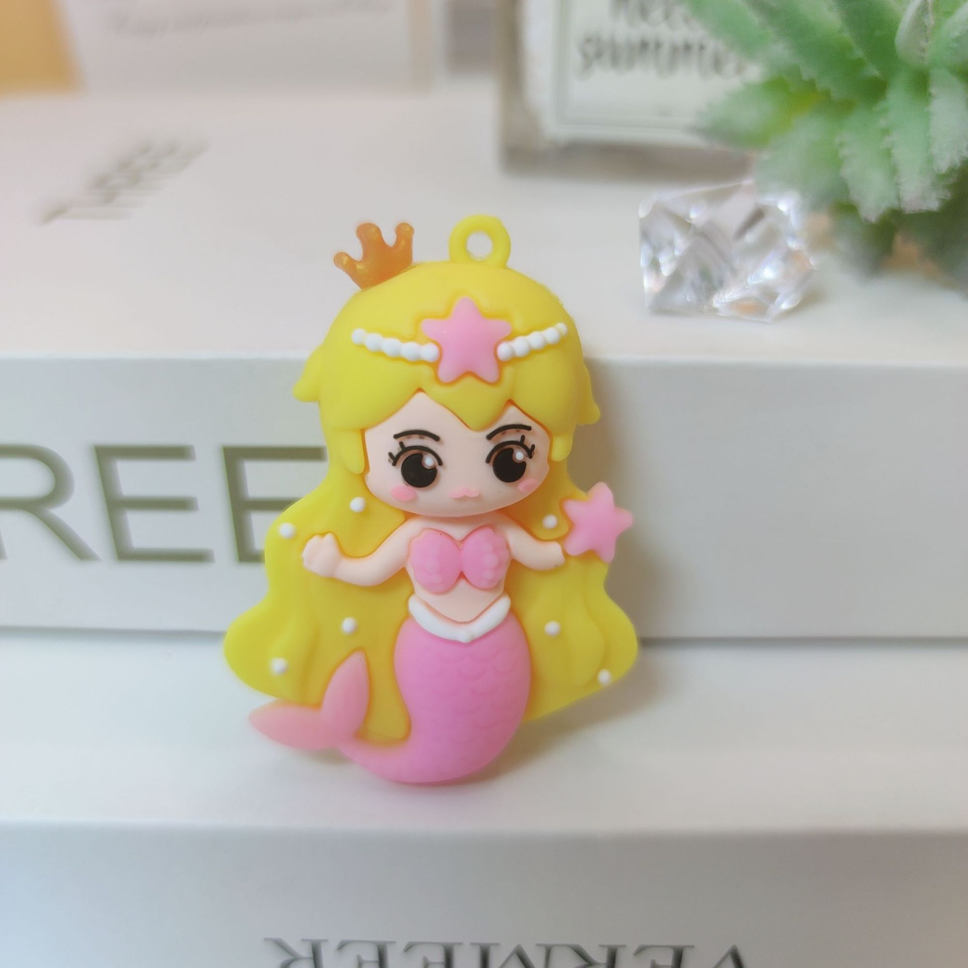 만화 인어 키 체인 펜던트 3 차원 부드러운 접착제 인어 공주 액세서리 케이크 장식품 푸시 작은 선물