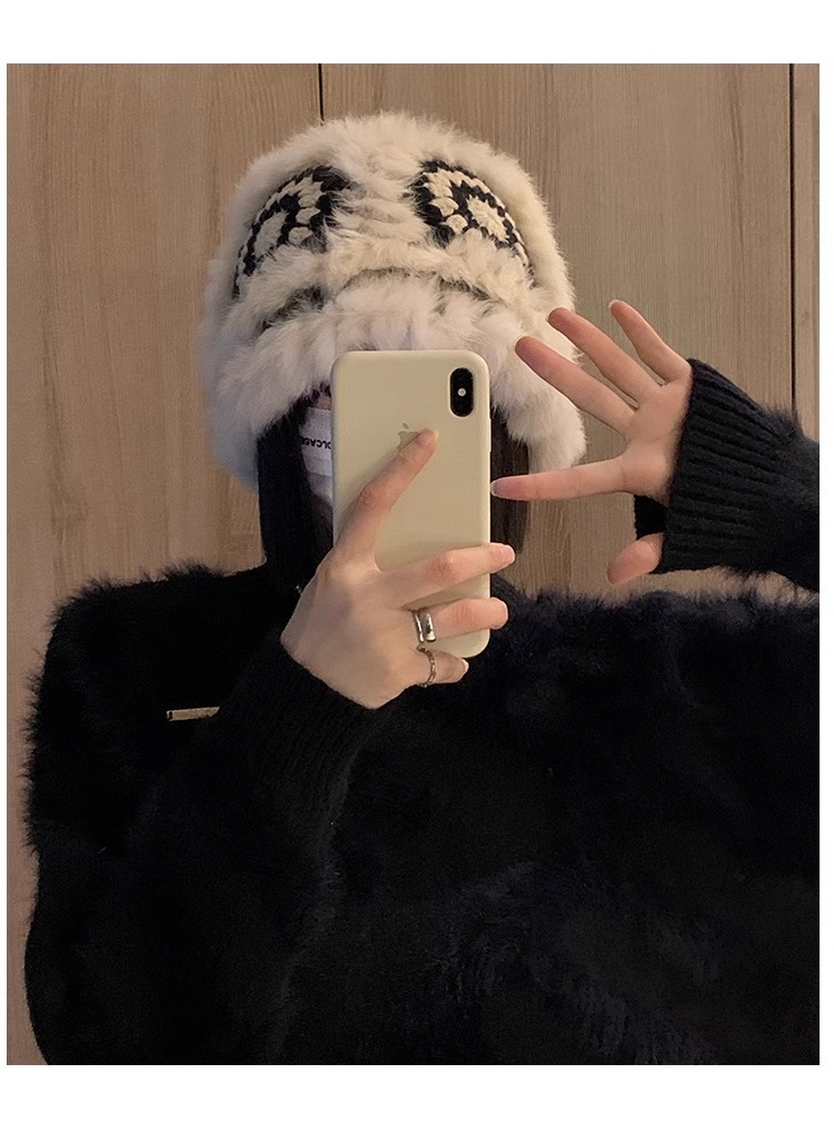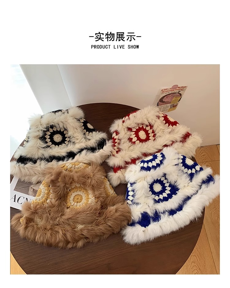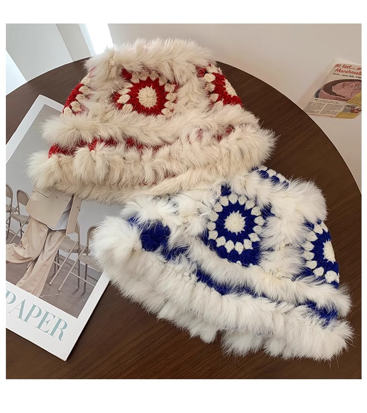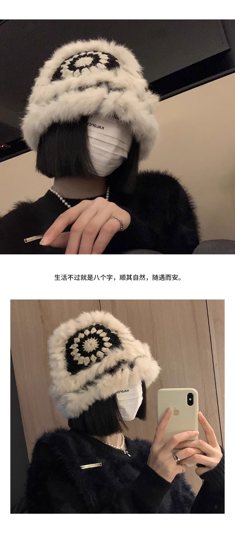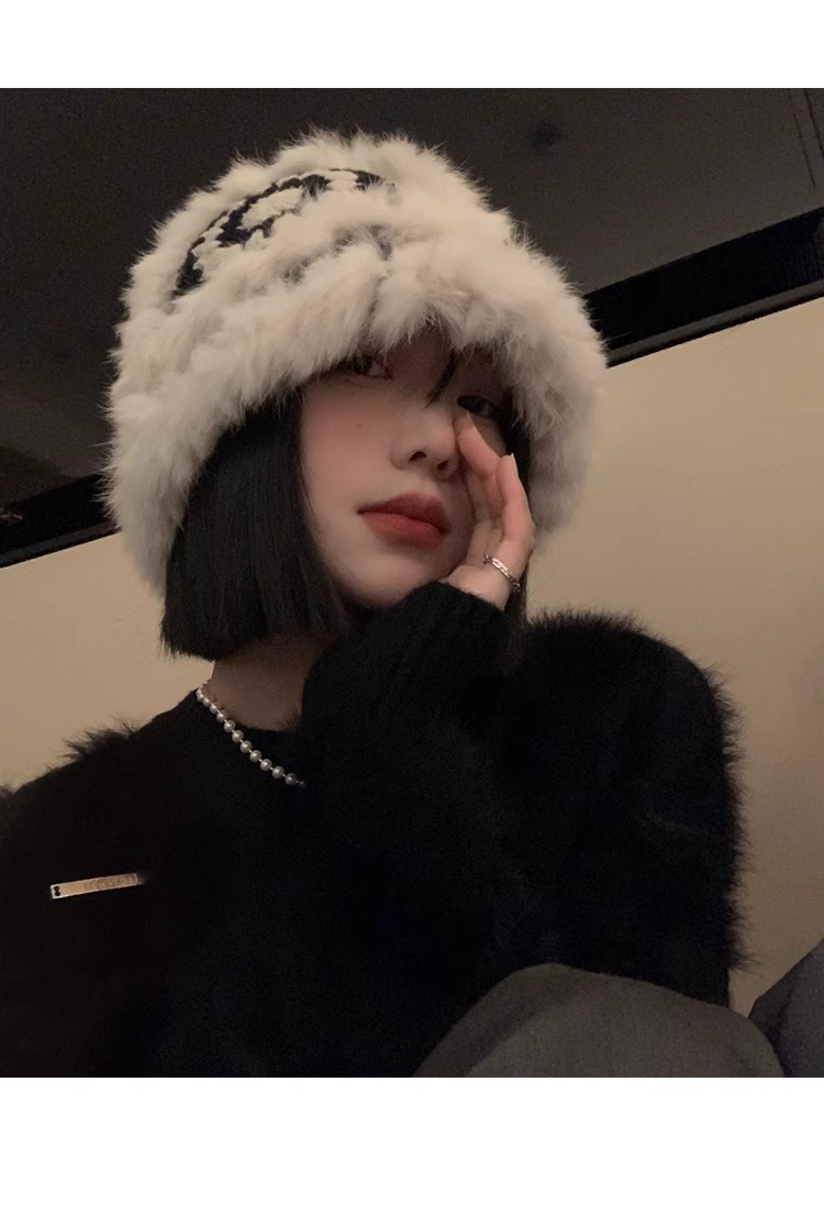 토끼 모피 니트 푹신한 모자 여성의 가을과 겨울 푹신한 호랑이 머리 사자 댄스 어부 모자 귀여운 얼굴 작은 양모 모자