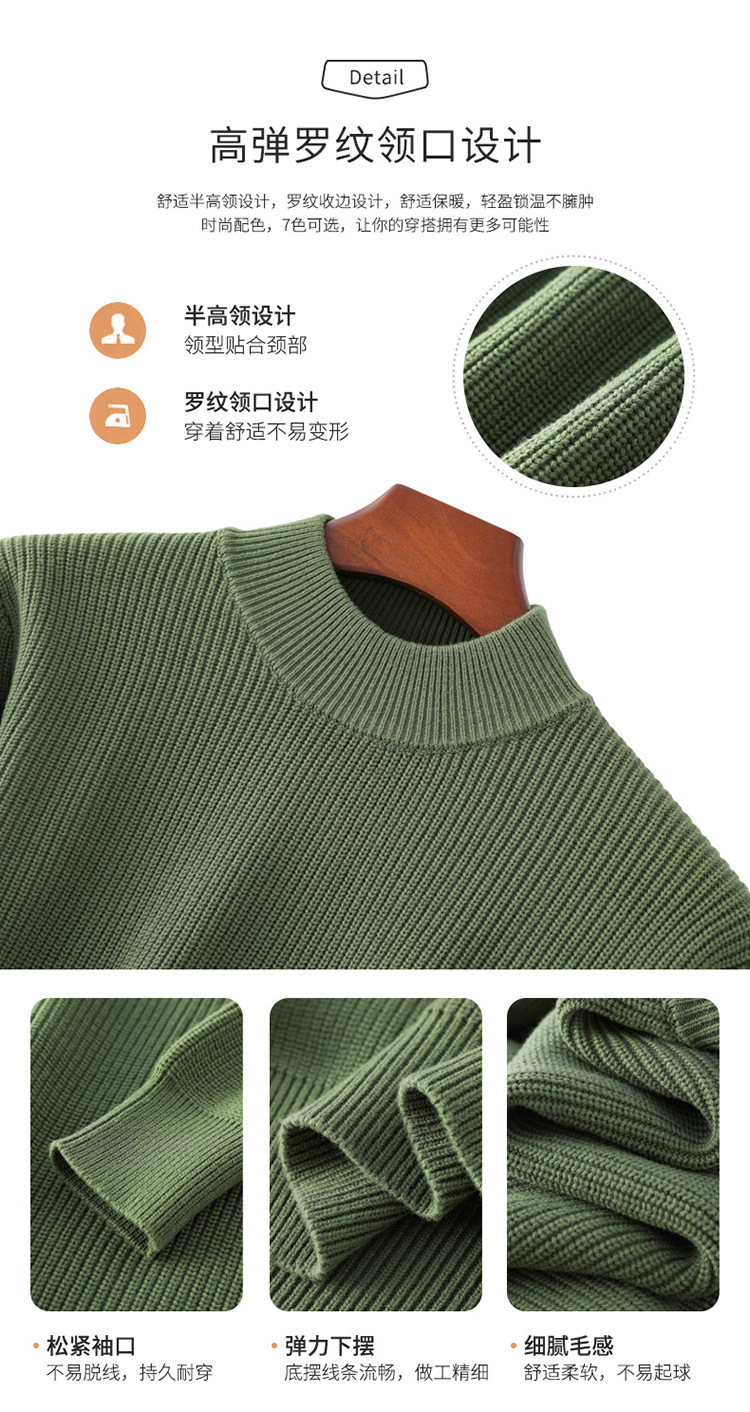 Combed 퓨어 코튼 니트 스웨터 남자 하프 터틀넥 Yuanbao 니들 두꺼운 풀오버 탑 긴 소매베이스 셔츠 따뜻한 남성복