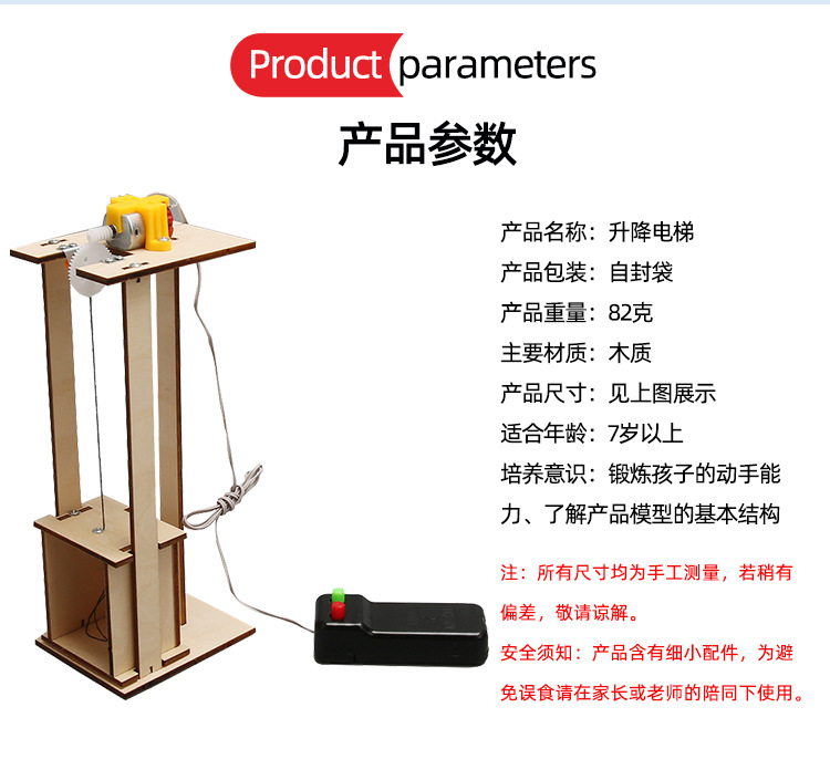 초등 및 중학교 학생의 수제 과학 실험 엘리베이터 리프트 조립 과학 및 기술 작은 생산 DIY 교육 과학 및 교육 인식