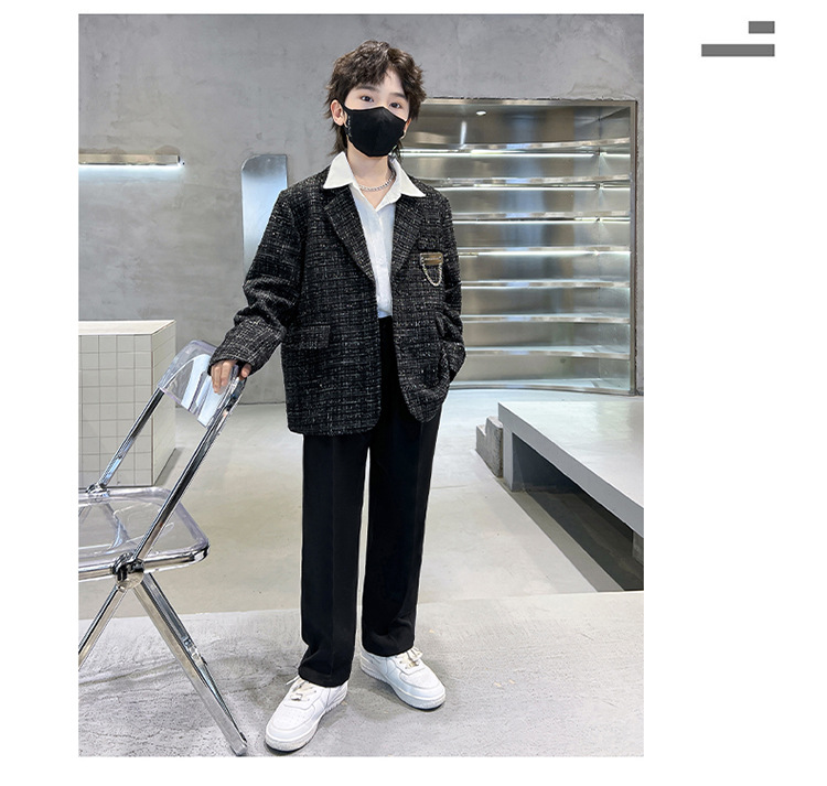 소년의 그물 붉은 튀김 거리 세트 세트 2024 새로운 어린이 유행 대학 스타일 무대 가을 유니폼 3 피스 세트스토어 가기