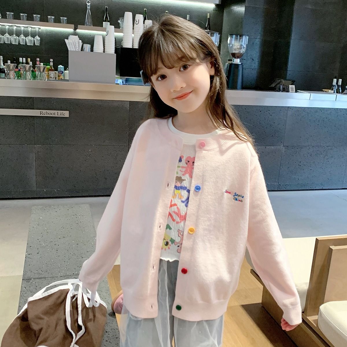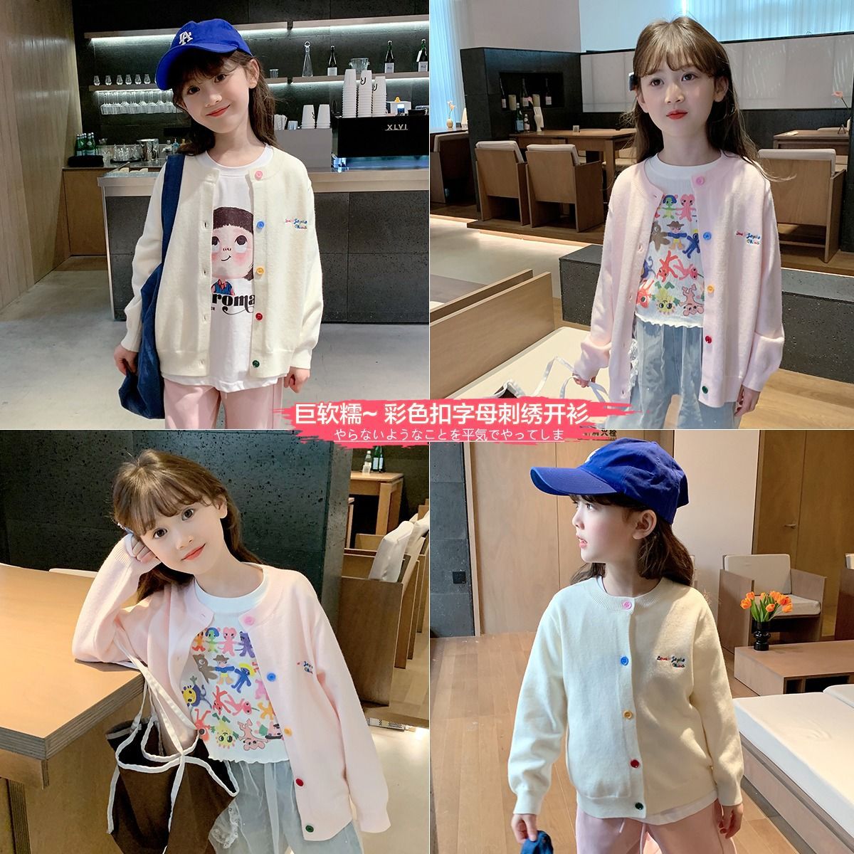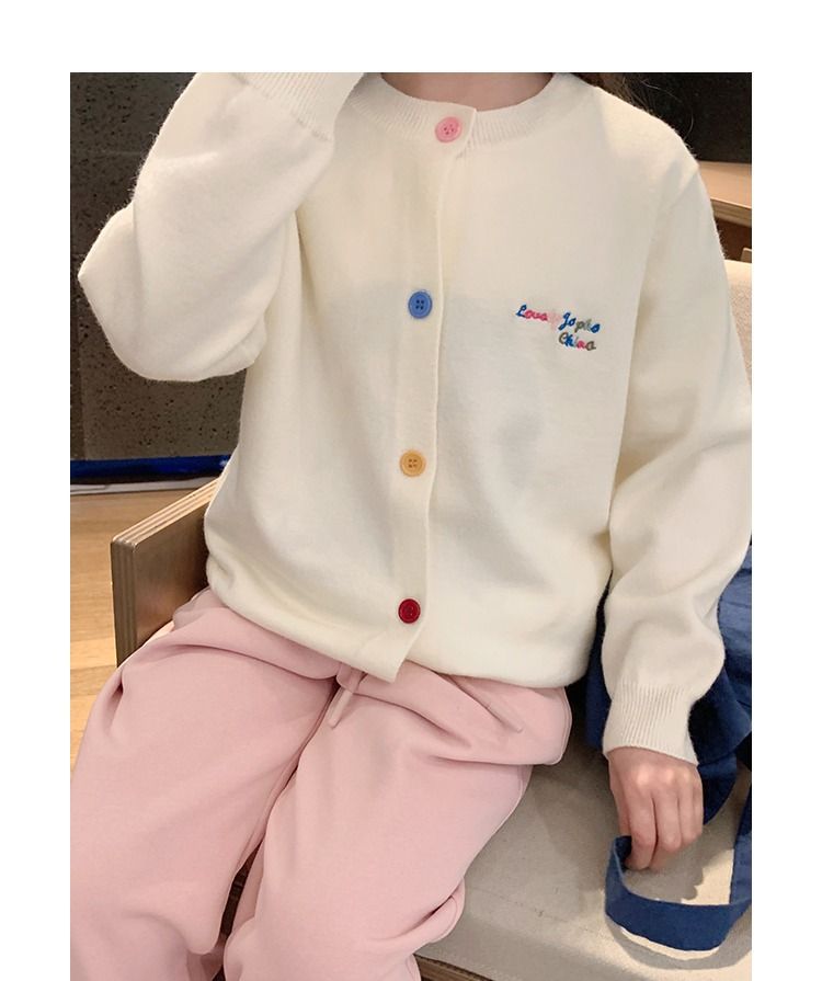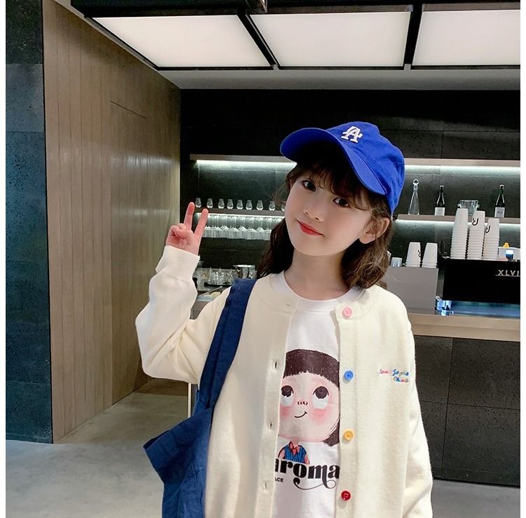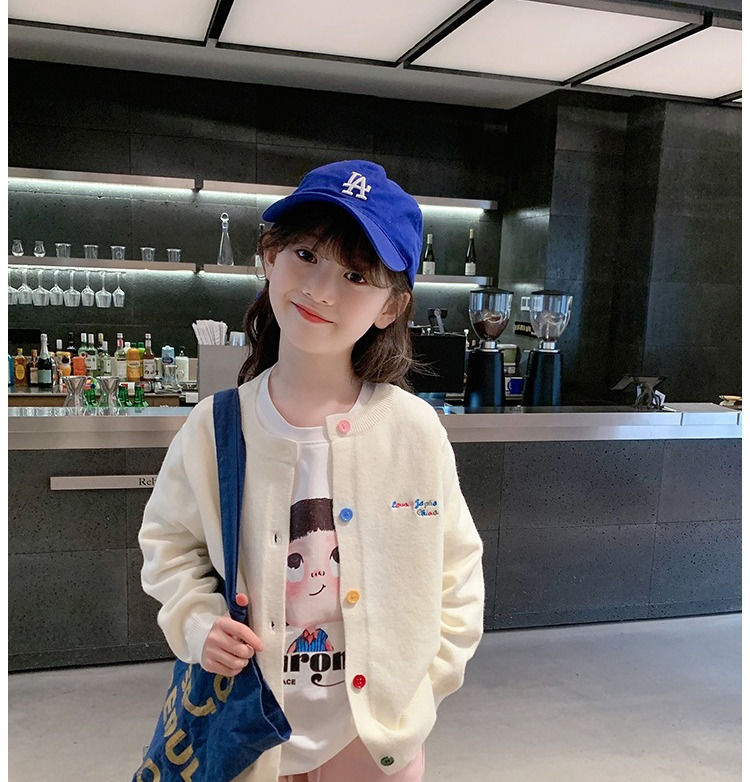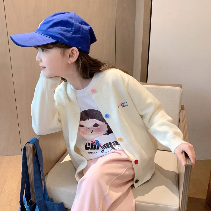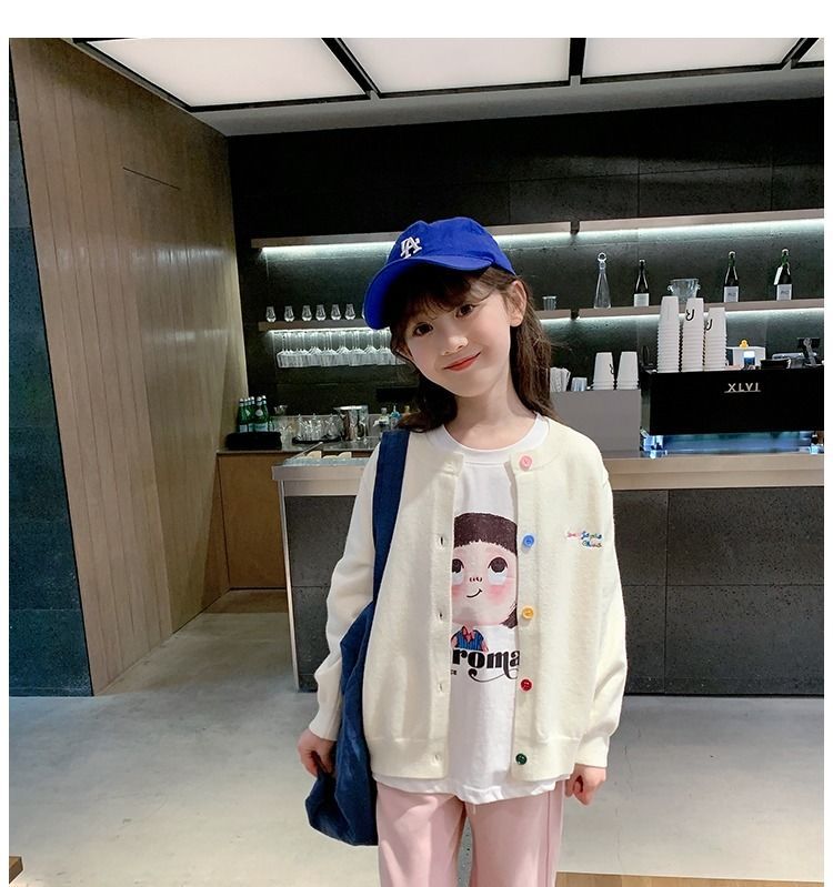 소녀 니트 카디건 2024 봄과 가을 새로운 한국 스타일 어린이 서양식 스웨터 대형 어린이 얇은 긴 소매 재킷스토어 가기