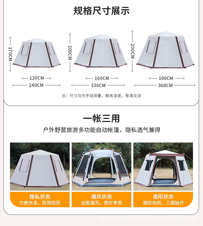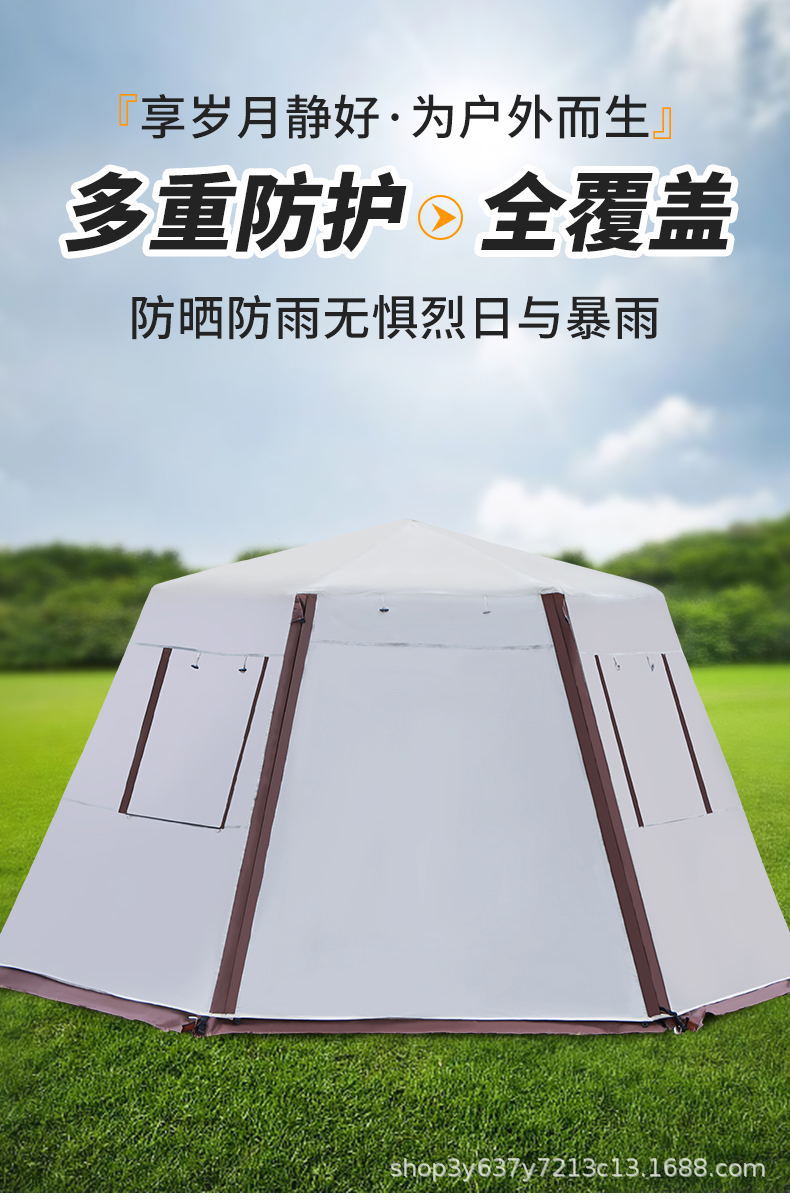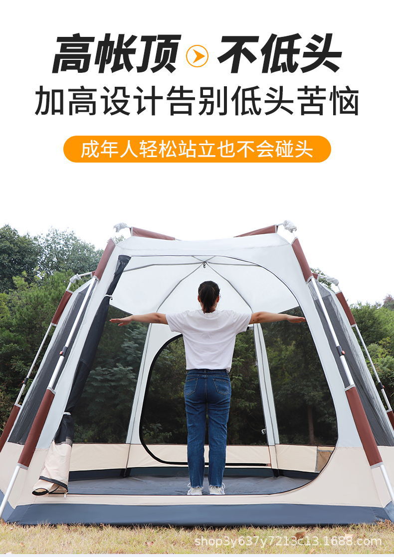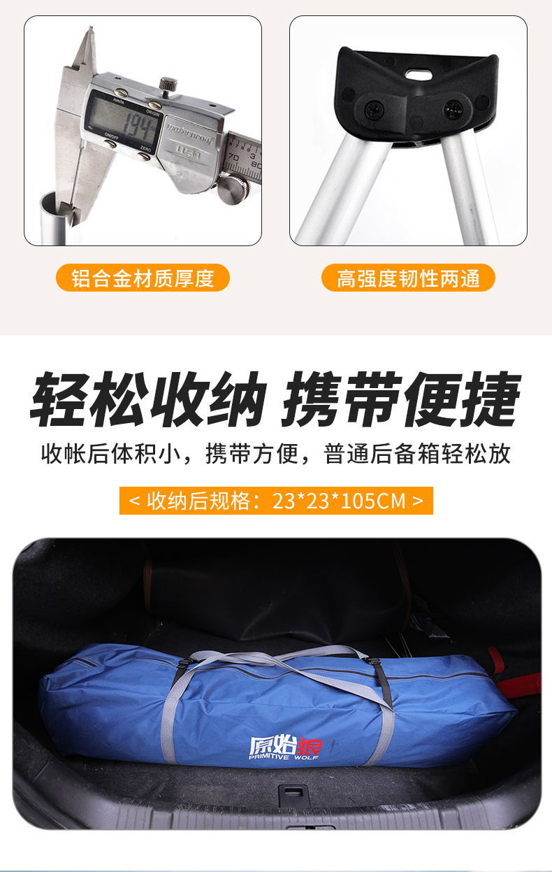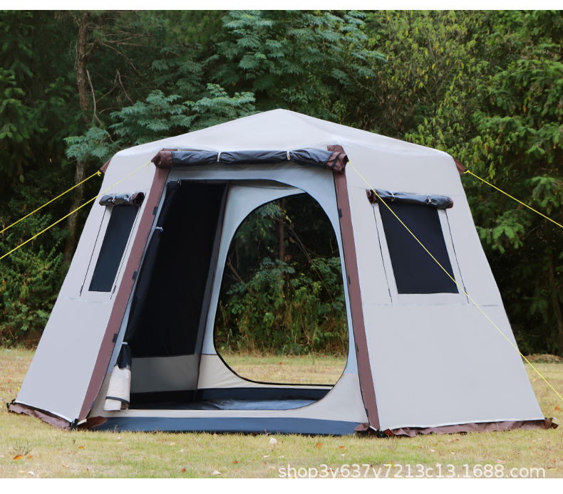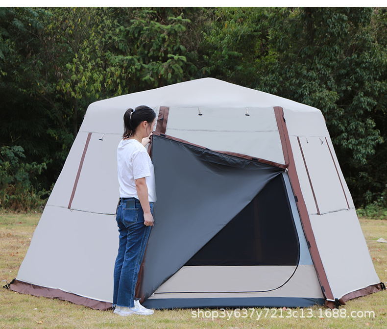 원래 늑대 야외 자동 알루미늄 극 3-4-5-6-8 명 야외 캠핑 더블 레이어 두꺼운 안티 폭풍 비 텐트스토어 가기