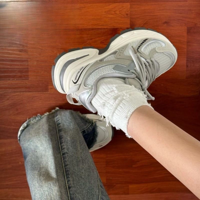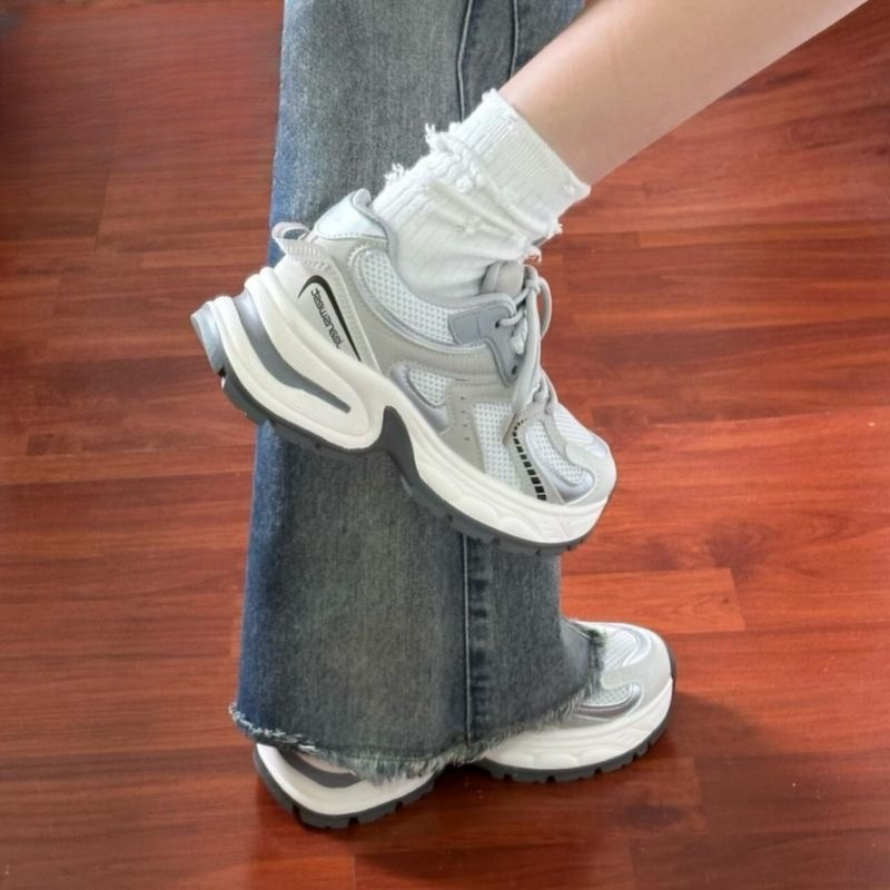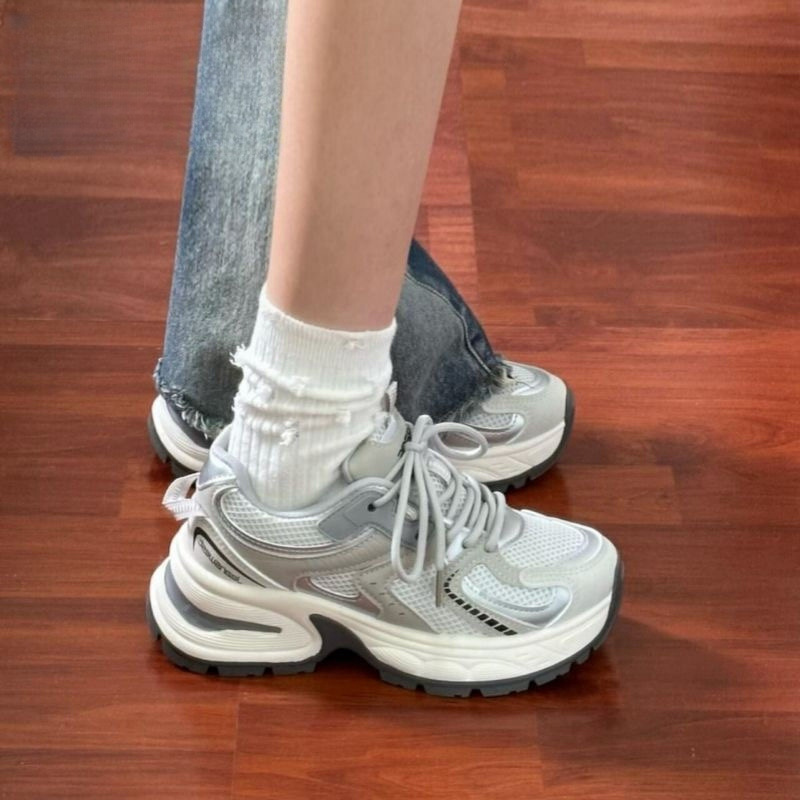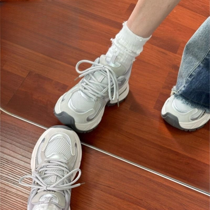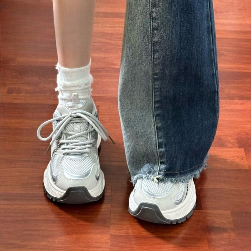 Zhao Lusi의 같은 스타일의 발을 보여주는 작은 메쉬 실버 그레이 운동화 여성 올 매치 토레 신발 여성용 캐주얼 통기성 러닝 슈즈