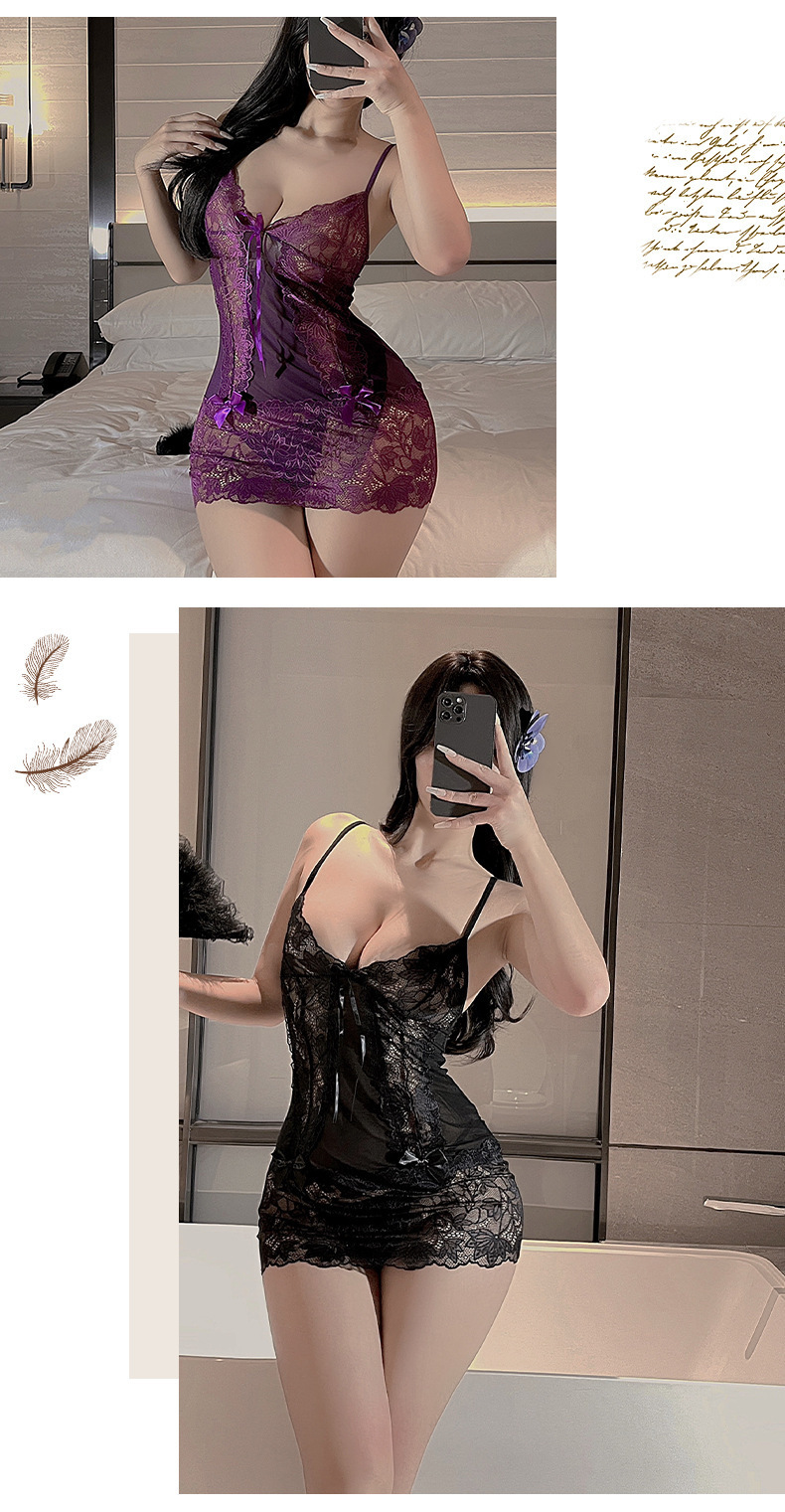 섹시한 란제리 섹시한 레이스 유니폼 매혹적인 시스루 의상 코스프레 여성 세트 투명 슬링 파자마 보라색스토어 가기