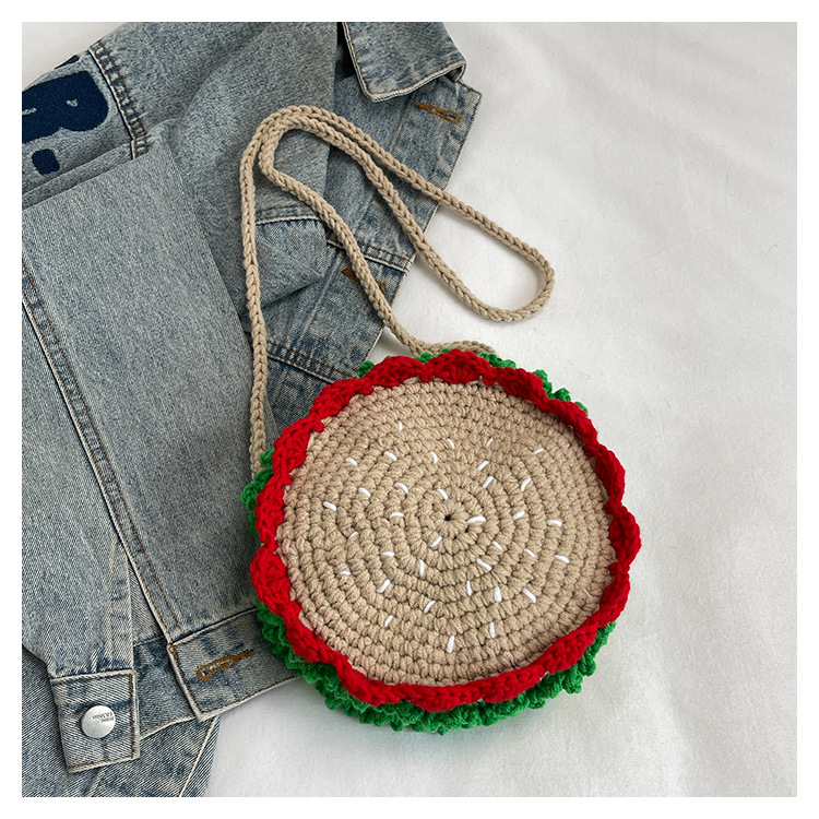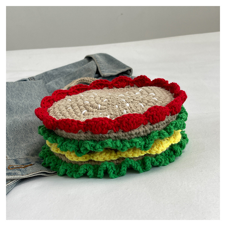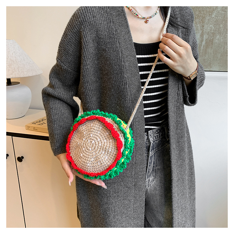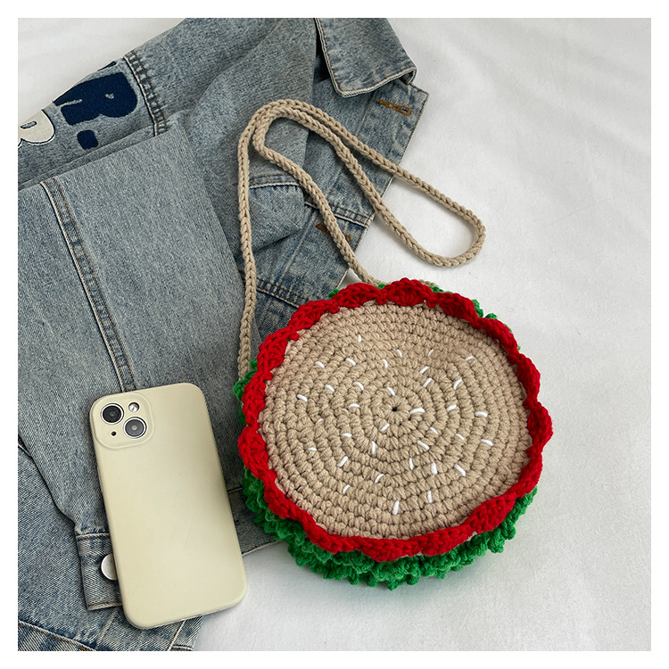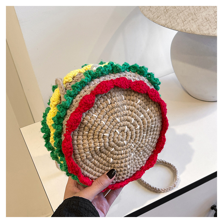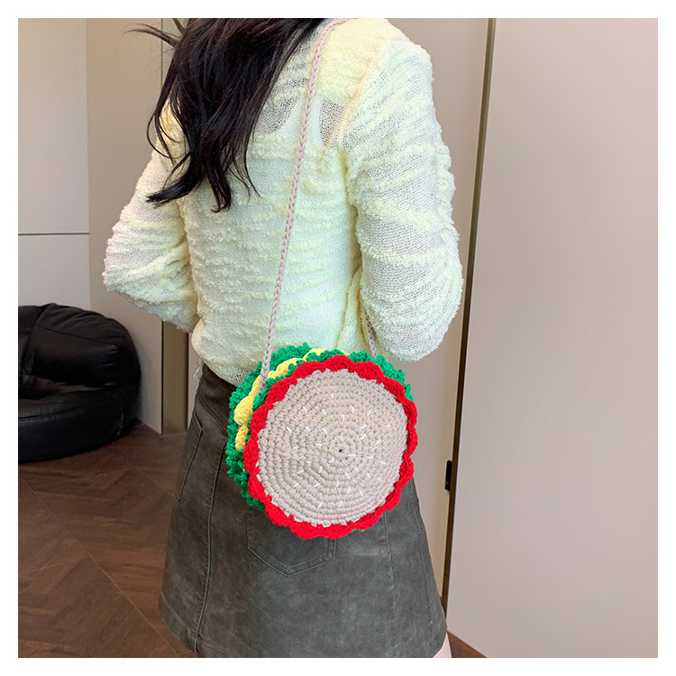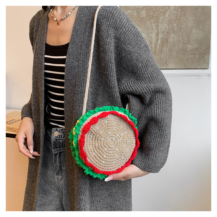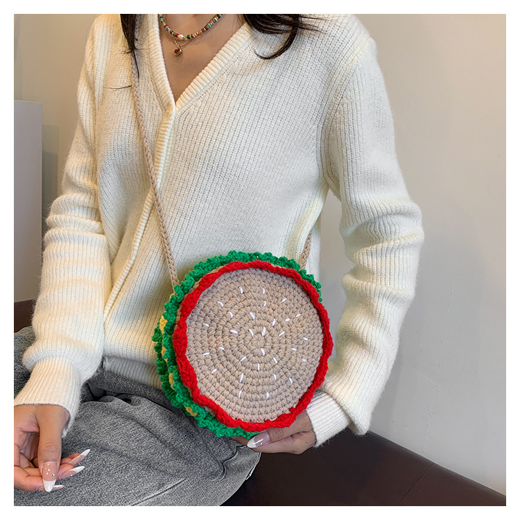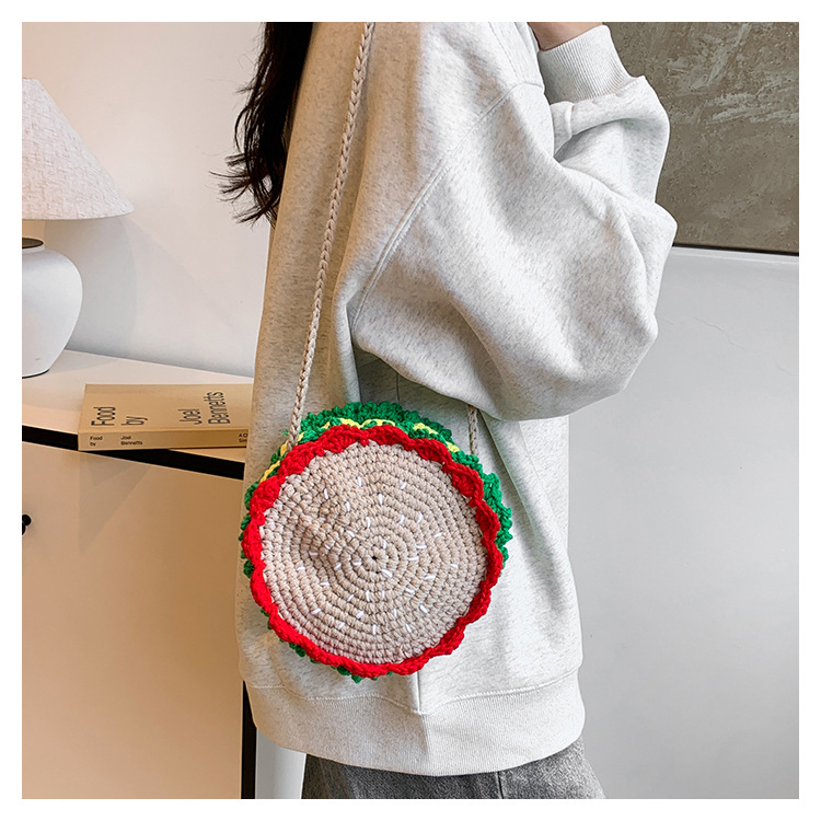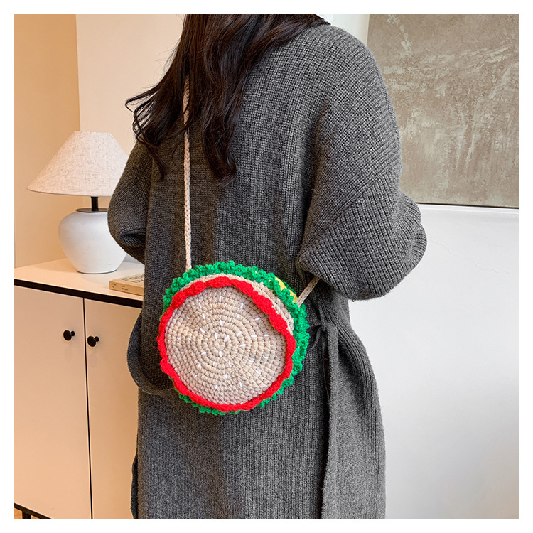 짠 귀여운 햄버거 작은 둥근 가방 2024 가을 새로운 귀여운 소녀 어깨 가방 모든 경기 색상 대비 미니 크로스 바디 가방스토어 가기
