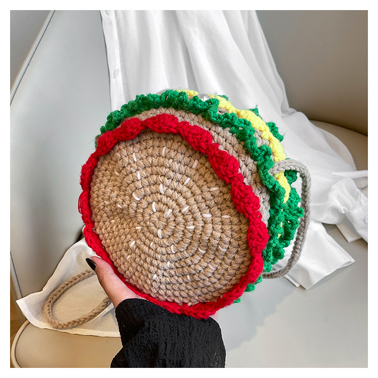 짠 귀여운 햄버거 작은 둥근 가방 2024 가을 새로운 귀여운 소녀 어깨 가방 모든 경기 색상 대비 미니 크로스 바디 가방