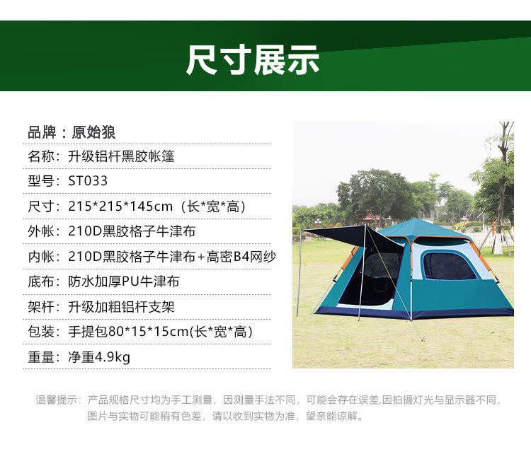 원래 늑대 텐트 야외 캠핑 블랙 고무 옥스포드 천 알루미늄 폴 휴대용 캠핑 두꺼운 그늘 자동 텐트
