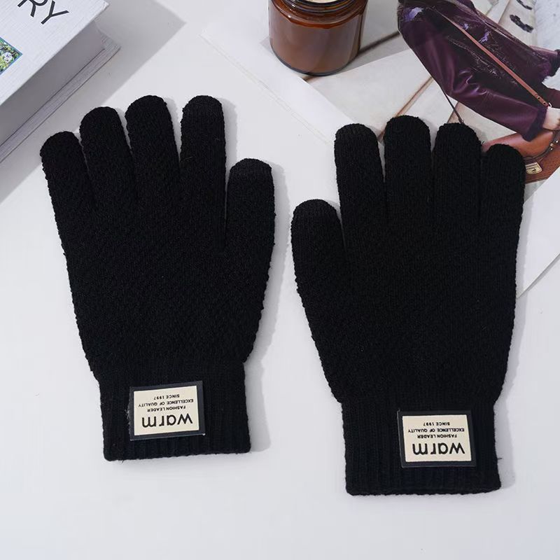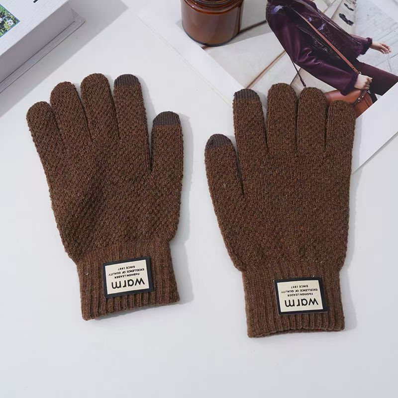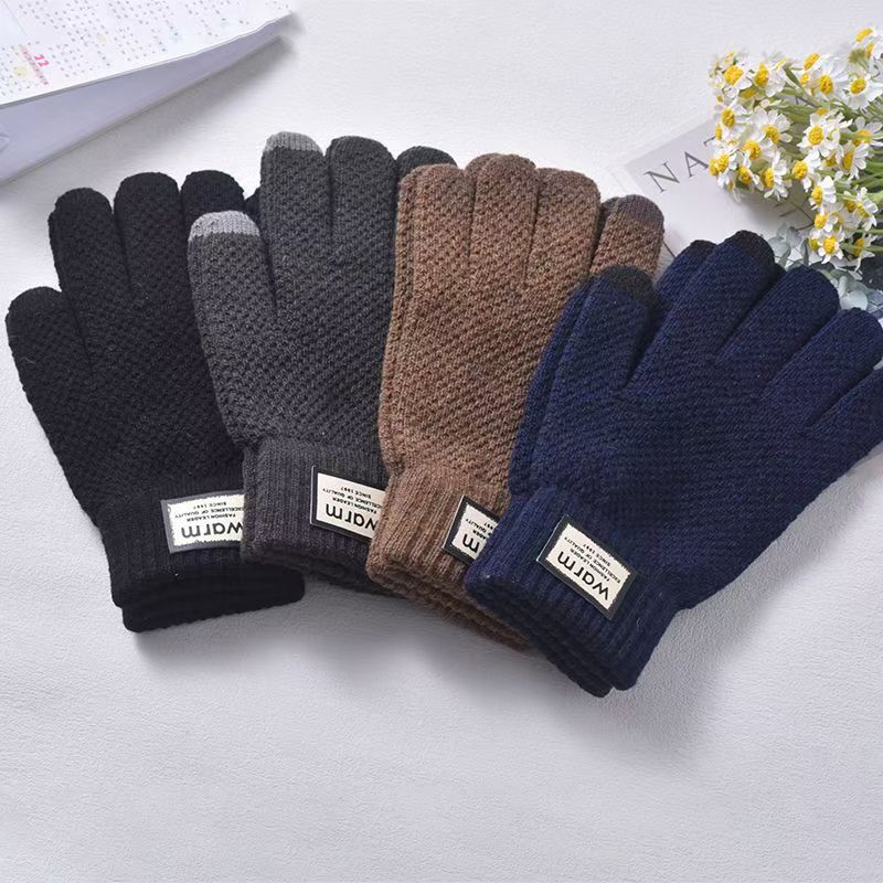 야외 터치 스크린 울 니트 장갑 풀 핑거 따뜻한 감기 방지 기모 두꺼운 자카드 5 손가락 남녀 커플