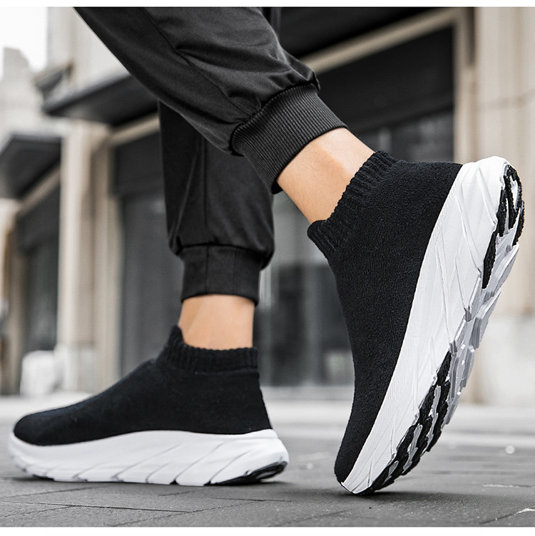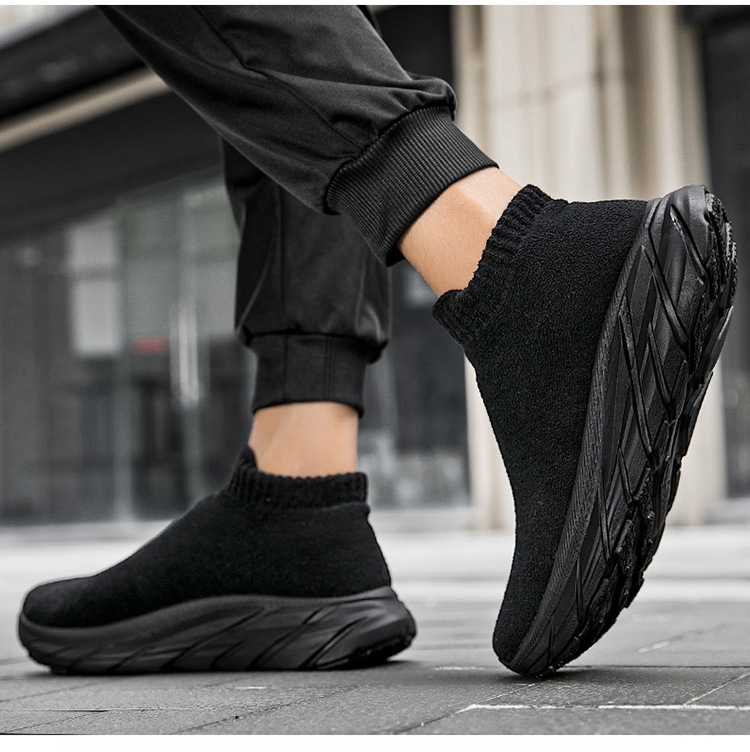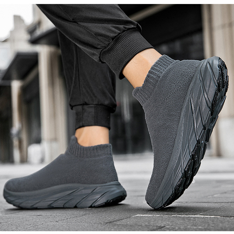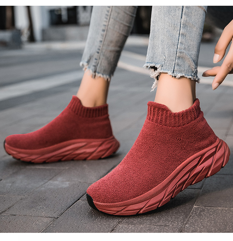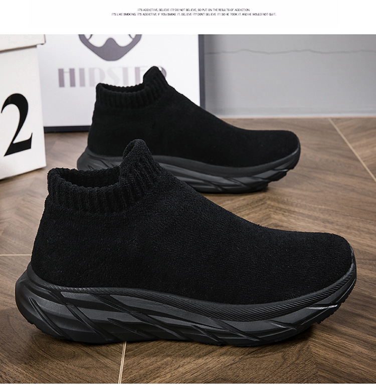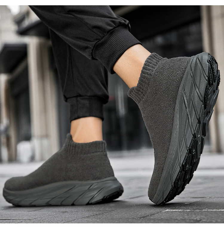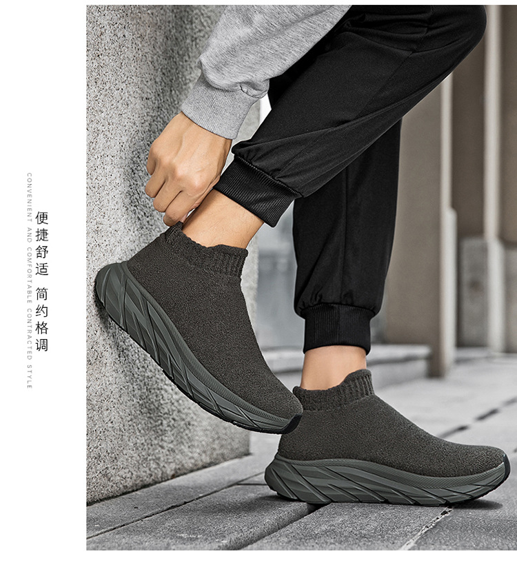 국경을 넘는 따뜻한 면화 신발 여성의 새로운 기모 양말 신발 커플 캐주얼 운동화 남성용 미드 탑 양말 신발 경량스토어 가기