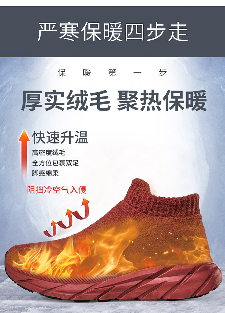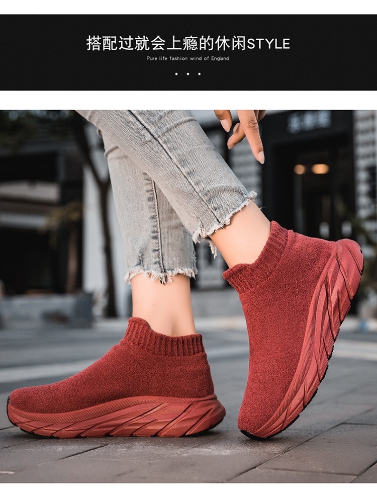 국경을 넘는 따뜻한 면화 신발 여성의 새로운 기모 양말 신발 커플 캐주얼 운동화 남성용 미드 탑 양말 신발 경량
