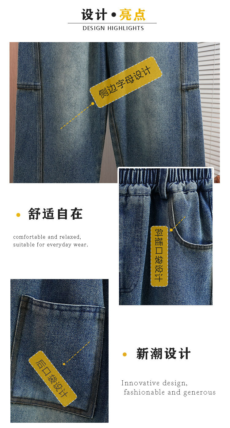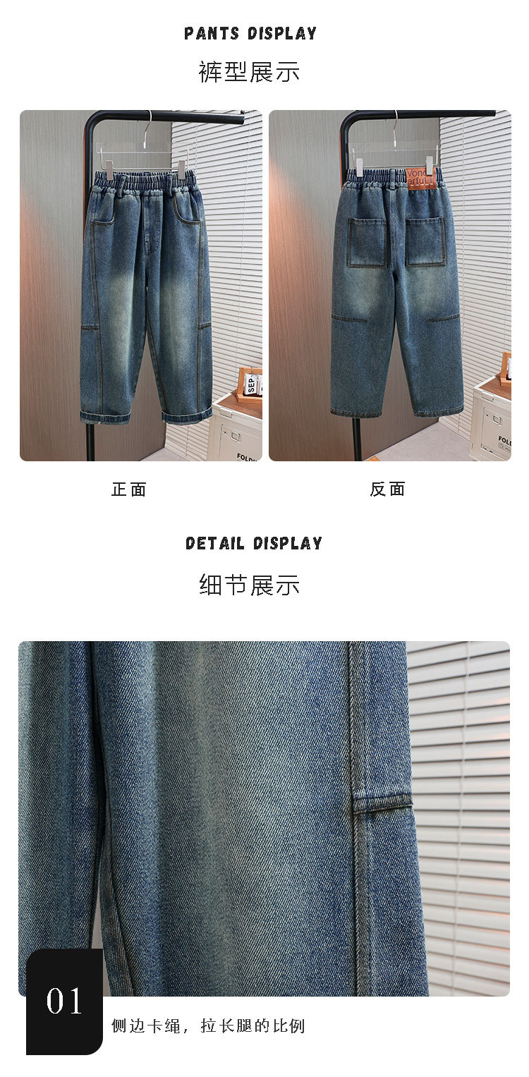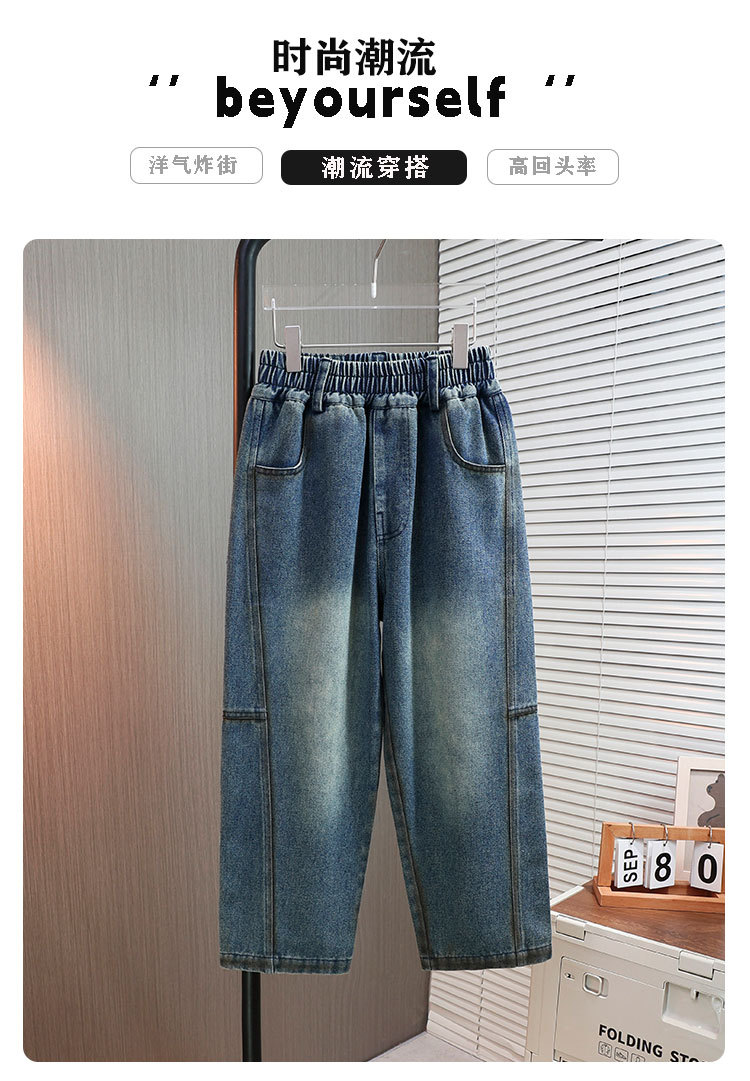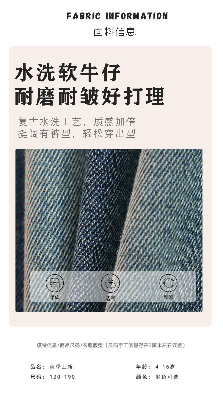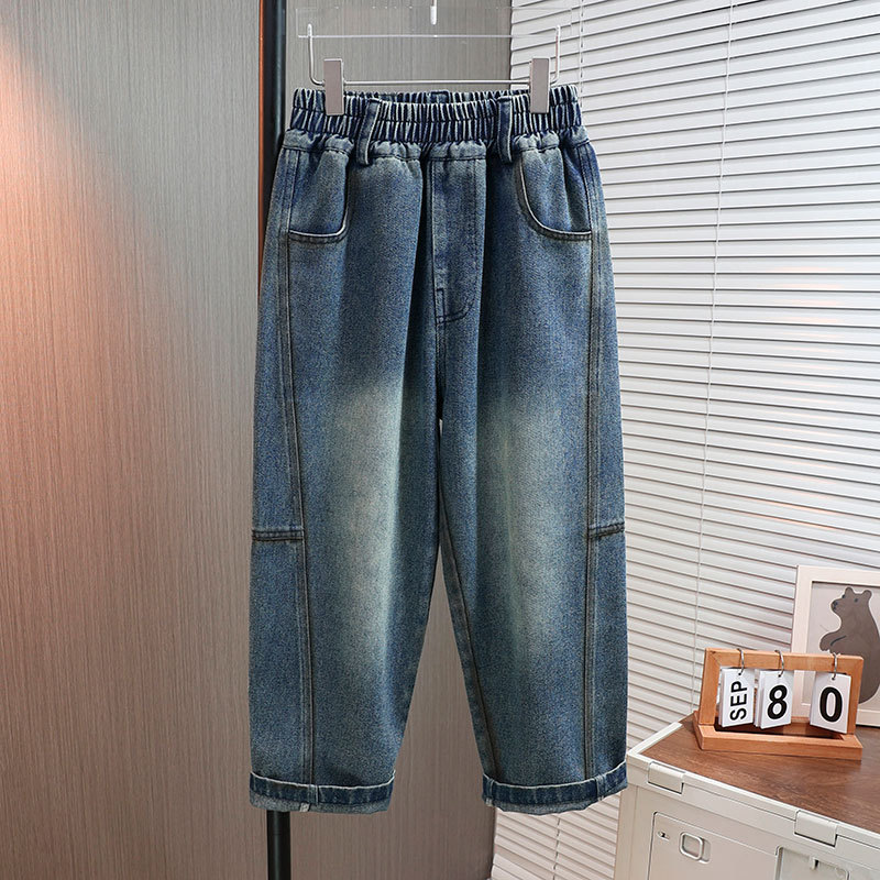 남아용 가을 신상 데님 바지 2025 아동복 트렌디 소프트 데님 중대형 아동 캐주얼 루즈핏 스트레이트 팬츠