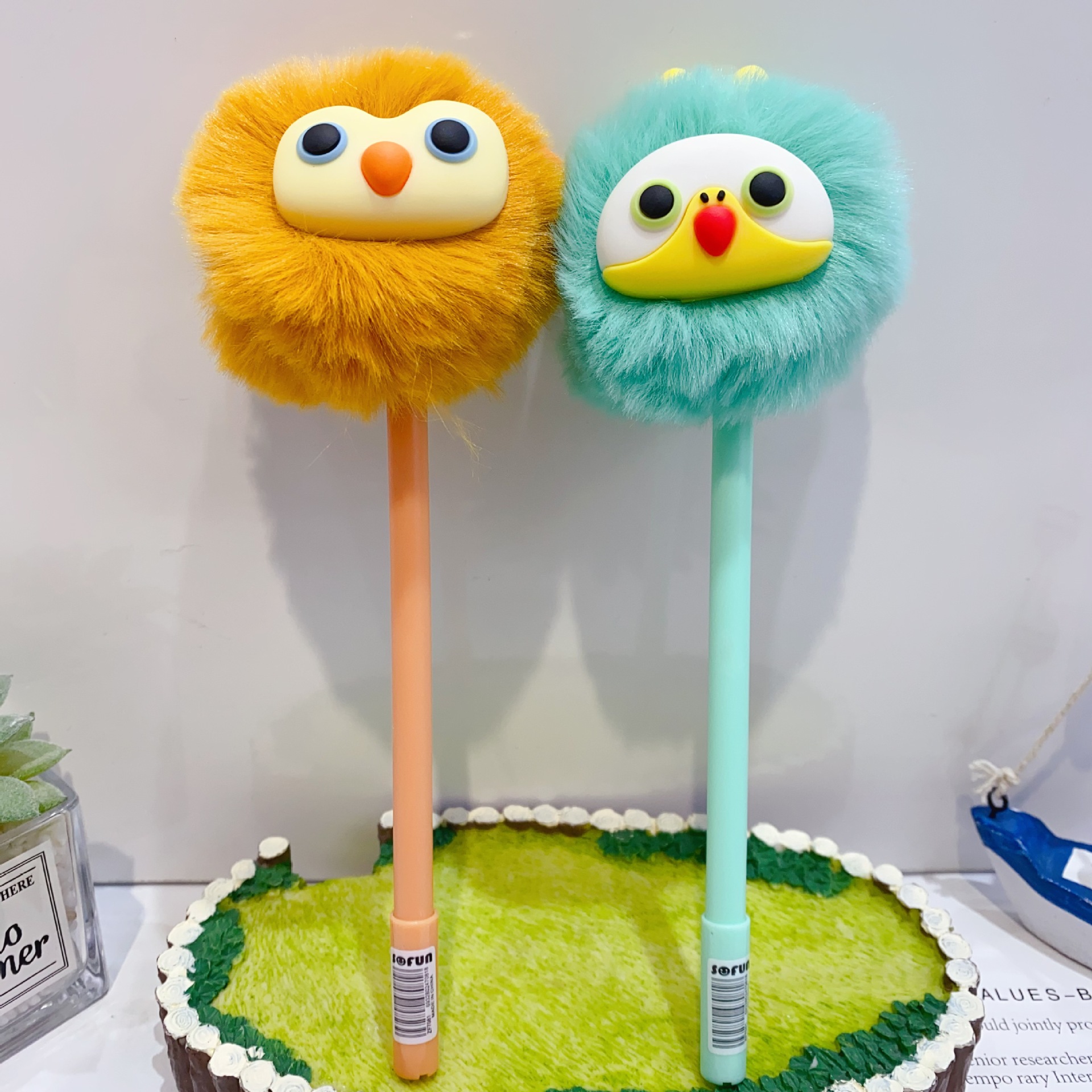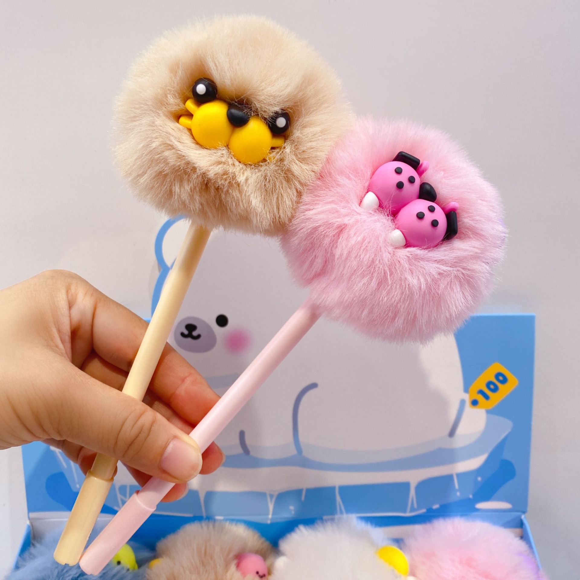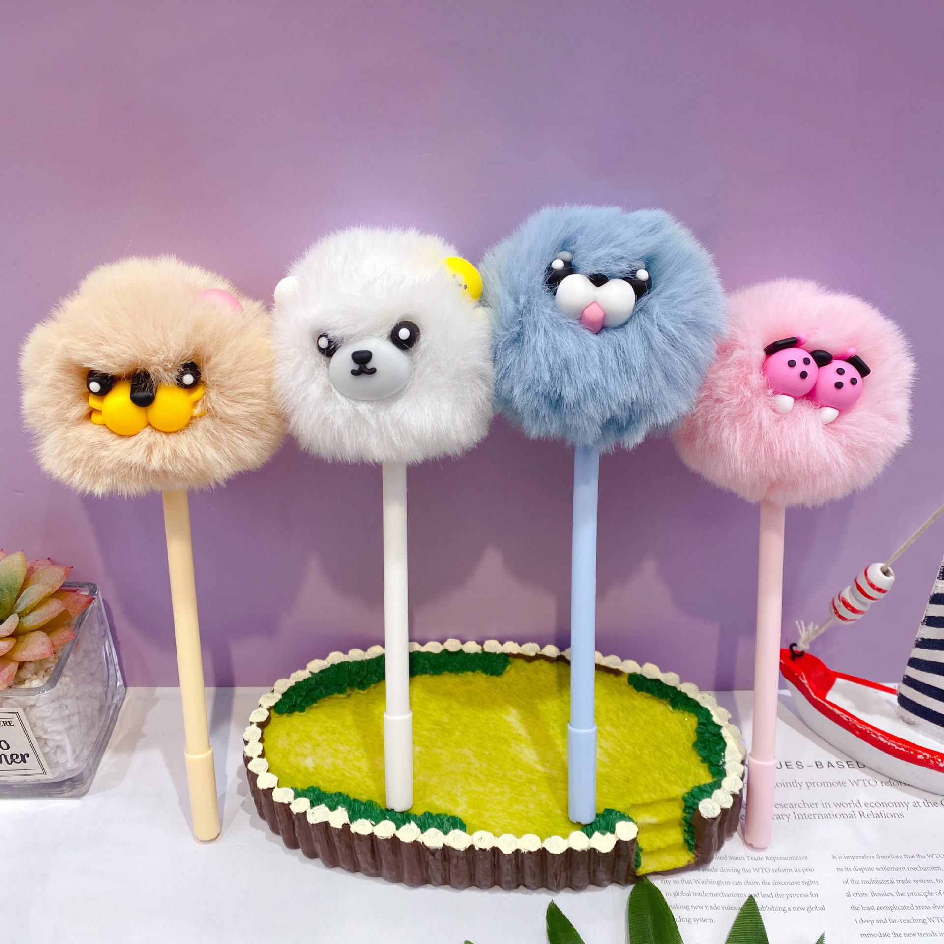 • 7587 귀여운 동물 털뭉치 인형 중성펜