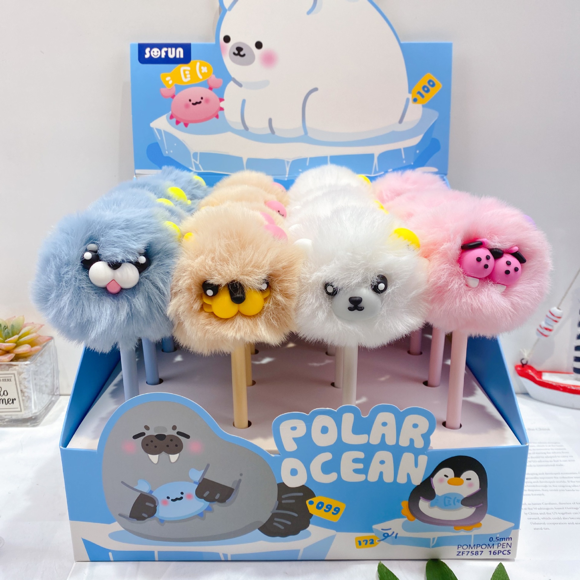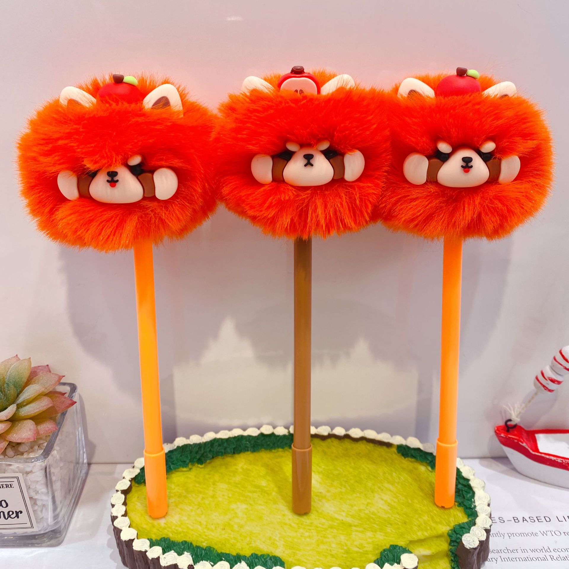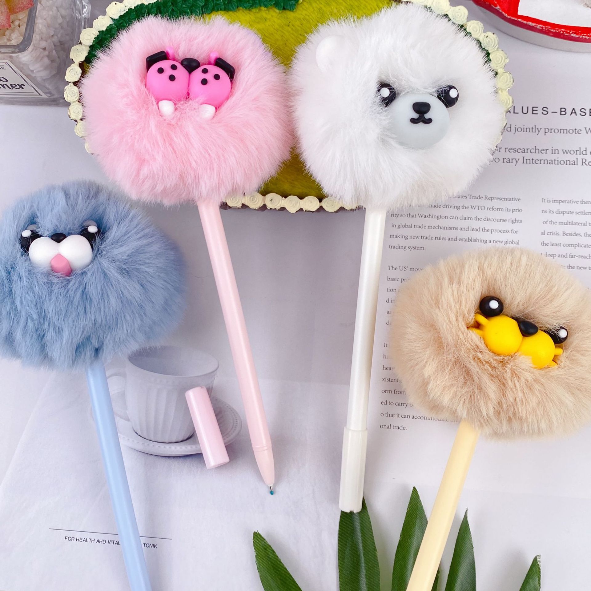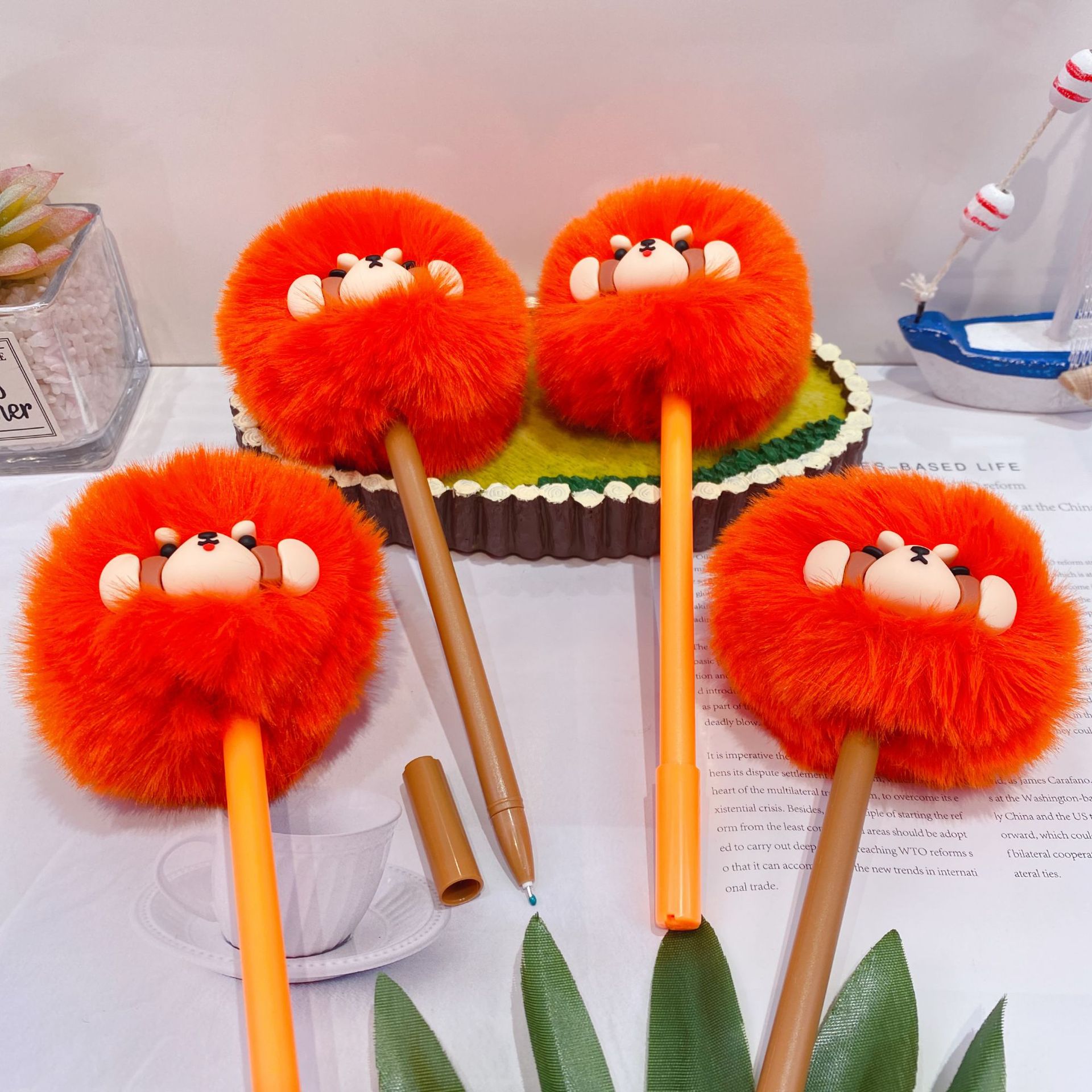 • 7587 귀여운 동물 털뭉치 인형 중성펜