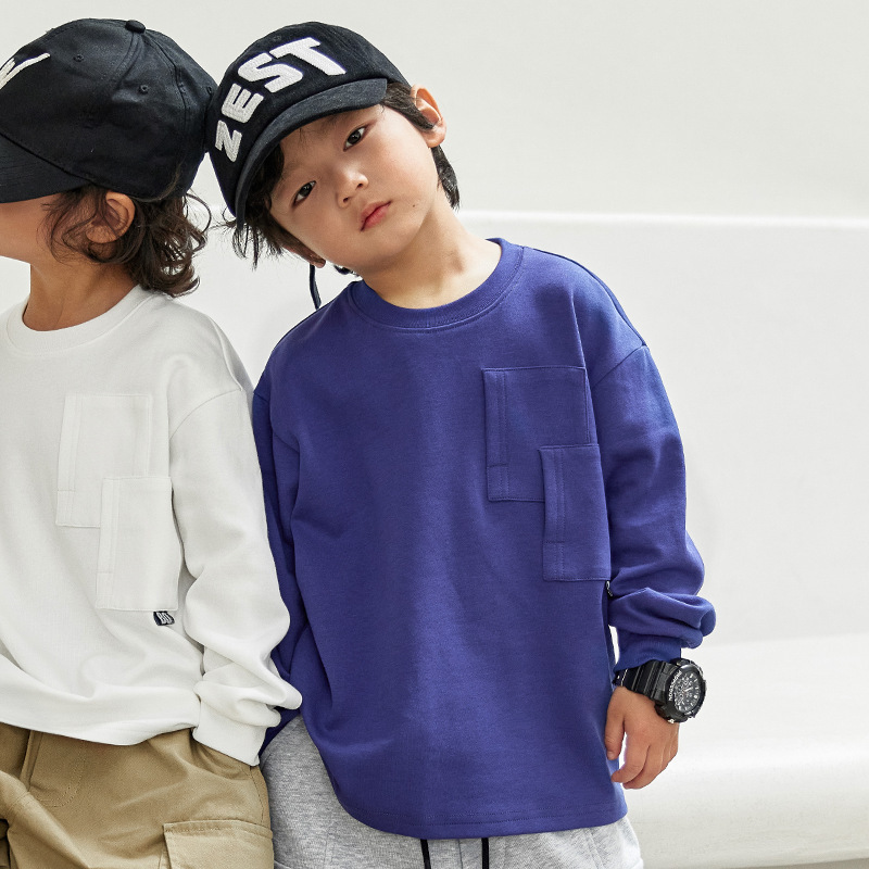 남학생 일본 티셔츠 긴팔 스웨터 봄 2024 새로운 어린이 소년베이스 셔츠 탑 트렌디 라운드 넥 봄스토어 가기