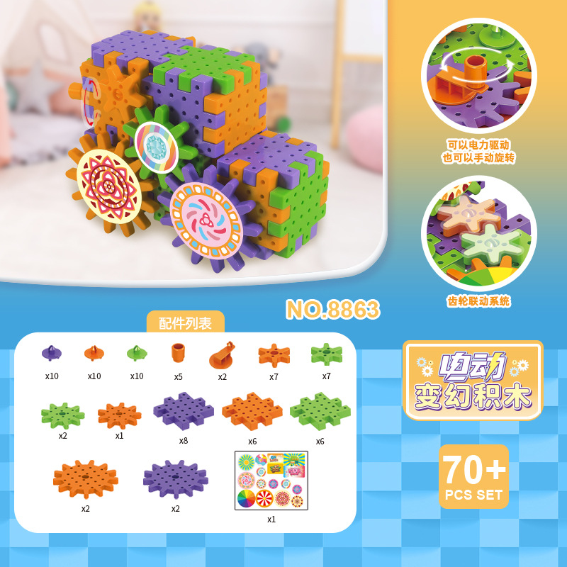 국경 간 전기 조립 건물 블록 가변 기계 기어 연계 어린이 교육 조립 건물 블록 장난감 유치원스토어 가기