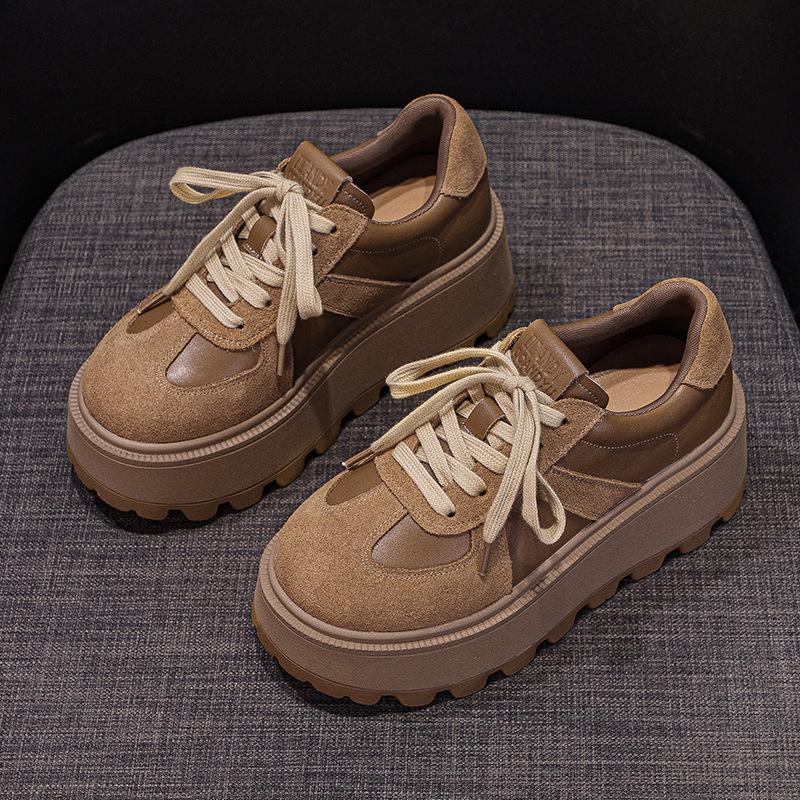 Desun 신발 두꺼운 단독 높이 증가 여성의 2025 새로운 스크럽 가죽 레트로 캐주얼 패션 스포츠 스니커즈 여성 학생 신발스토어 가기