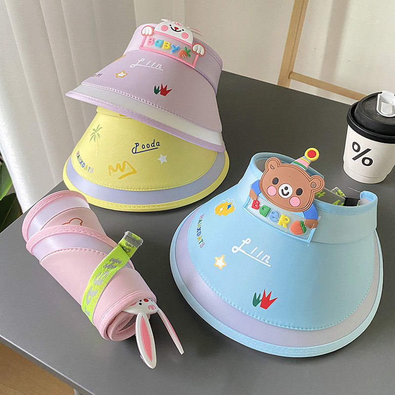 어린이 선스크린 모자 소녀 2024 새 여름 반 UV 휴가 모자 팬용 태양 모자