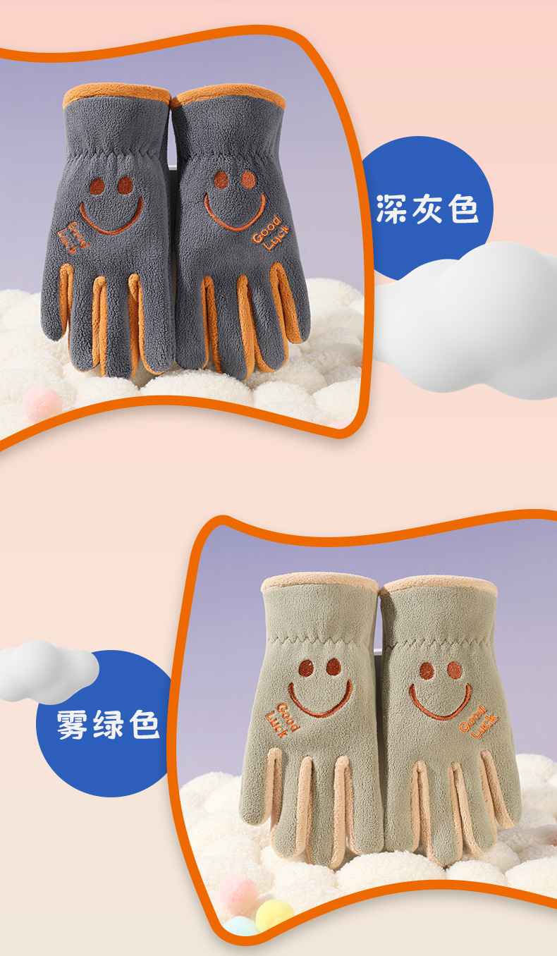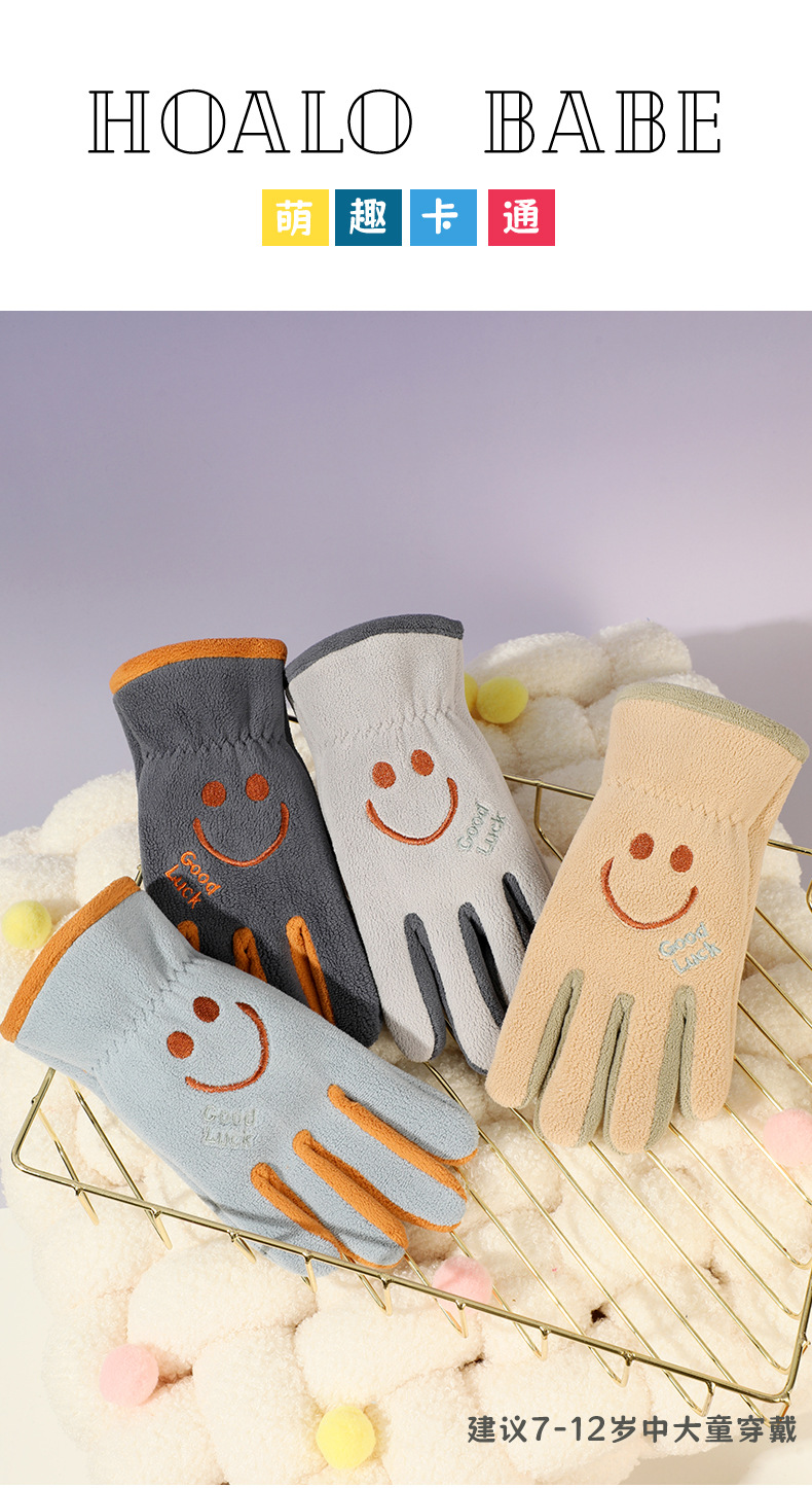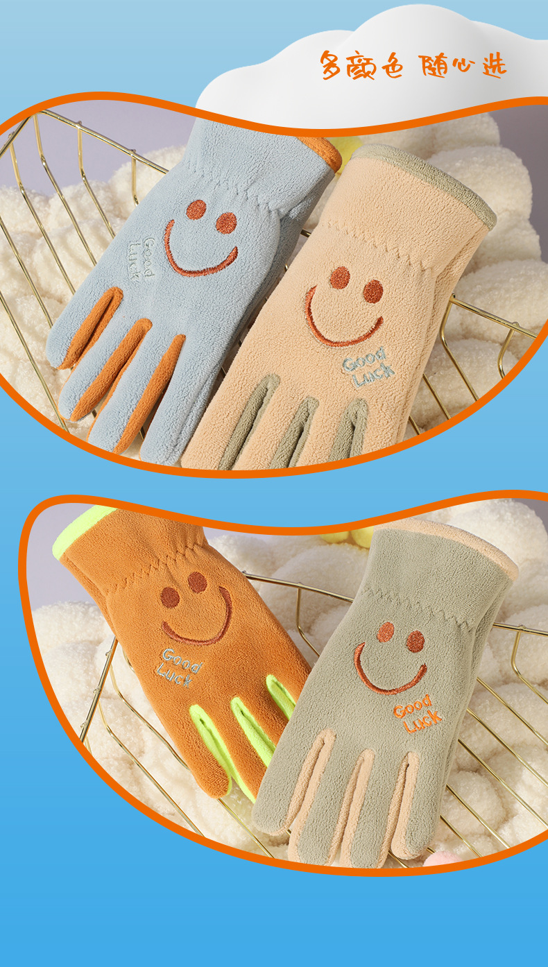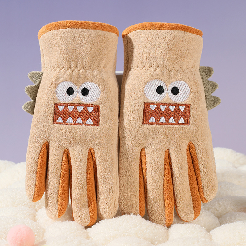 어린이 다섯 손가락 장갑, 가을 겨울 귀여운 만화 캐릭터 남녀 학생용, 아오리 벨벳 야외 자전거 타기용 보온 장갑스토어 가기