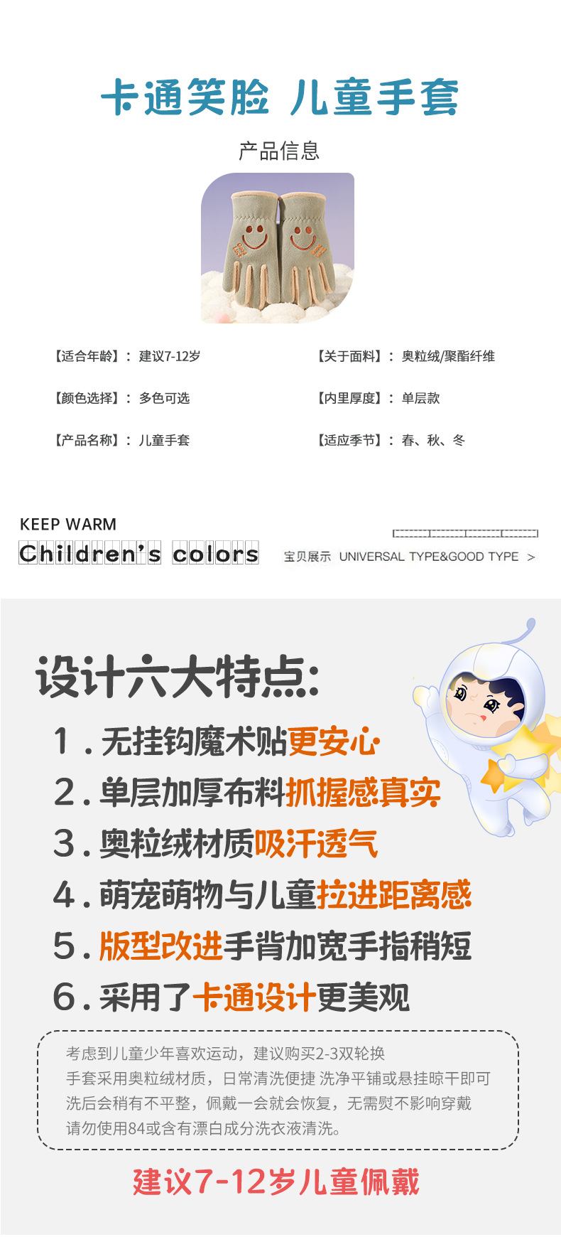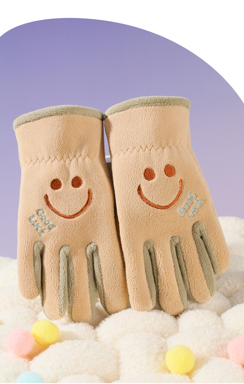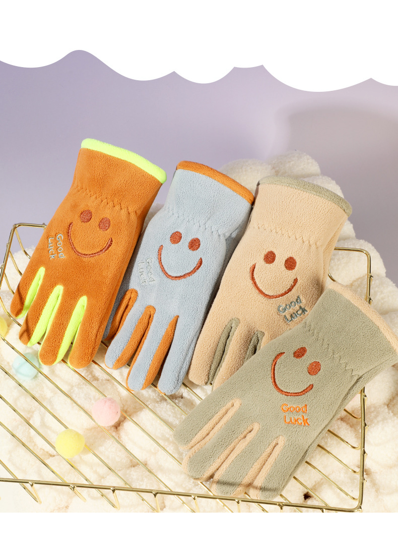 어린이 다섯 손가락 장갑, 가을 겨울 귀여운 만화 캐릭터 남녀 학생용, 아오리 벨벳 야외 자전거 타기용 보온 장갑스토어 가기