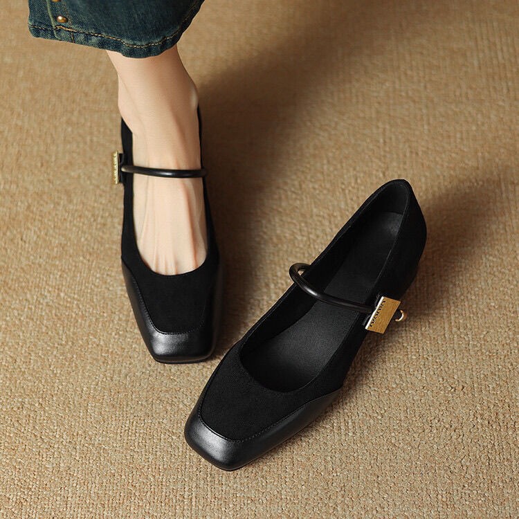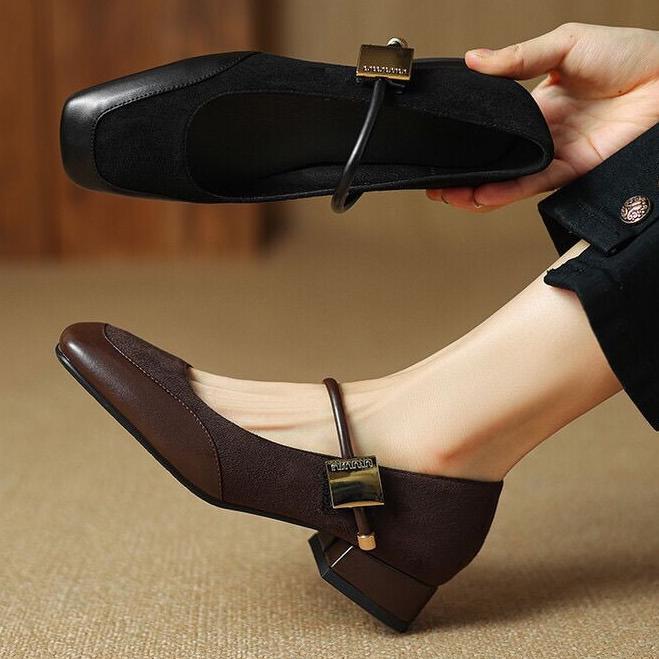 프랑스 미드 힐 뉴 메리 제인 신발 여성용 빈티지 버건디 얕은 입 스퀘어 발가락 싱글 레이어 신발 금속 버클 두꺼운 힐 하이힐 신발스토어 가기