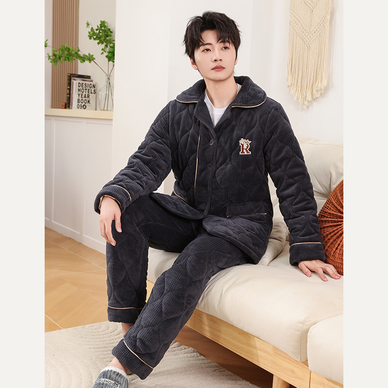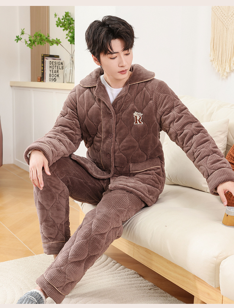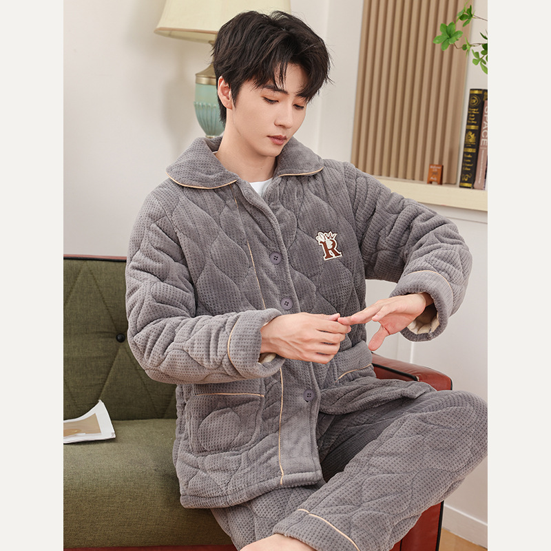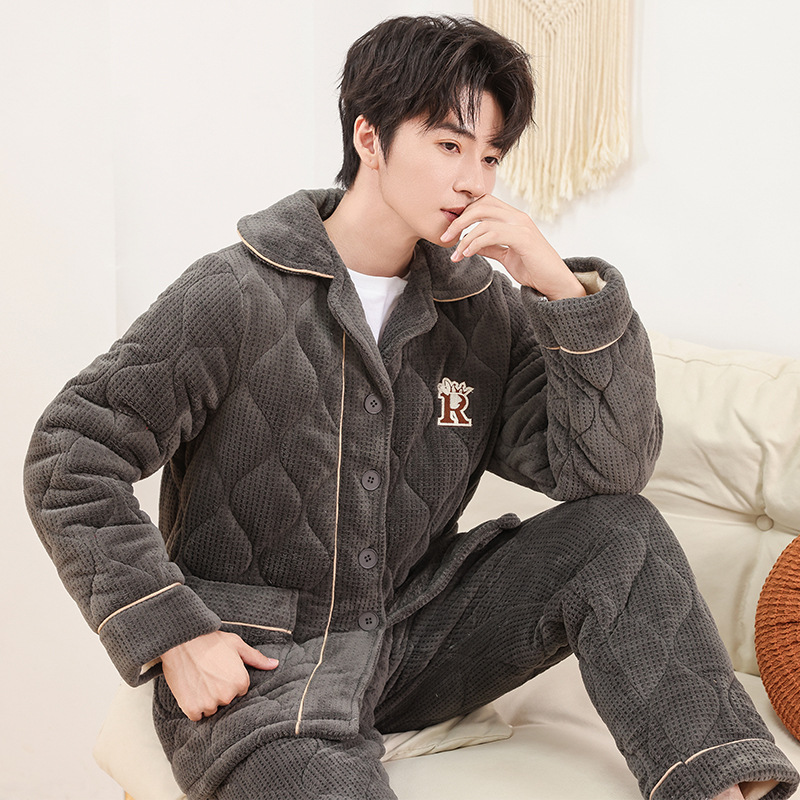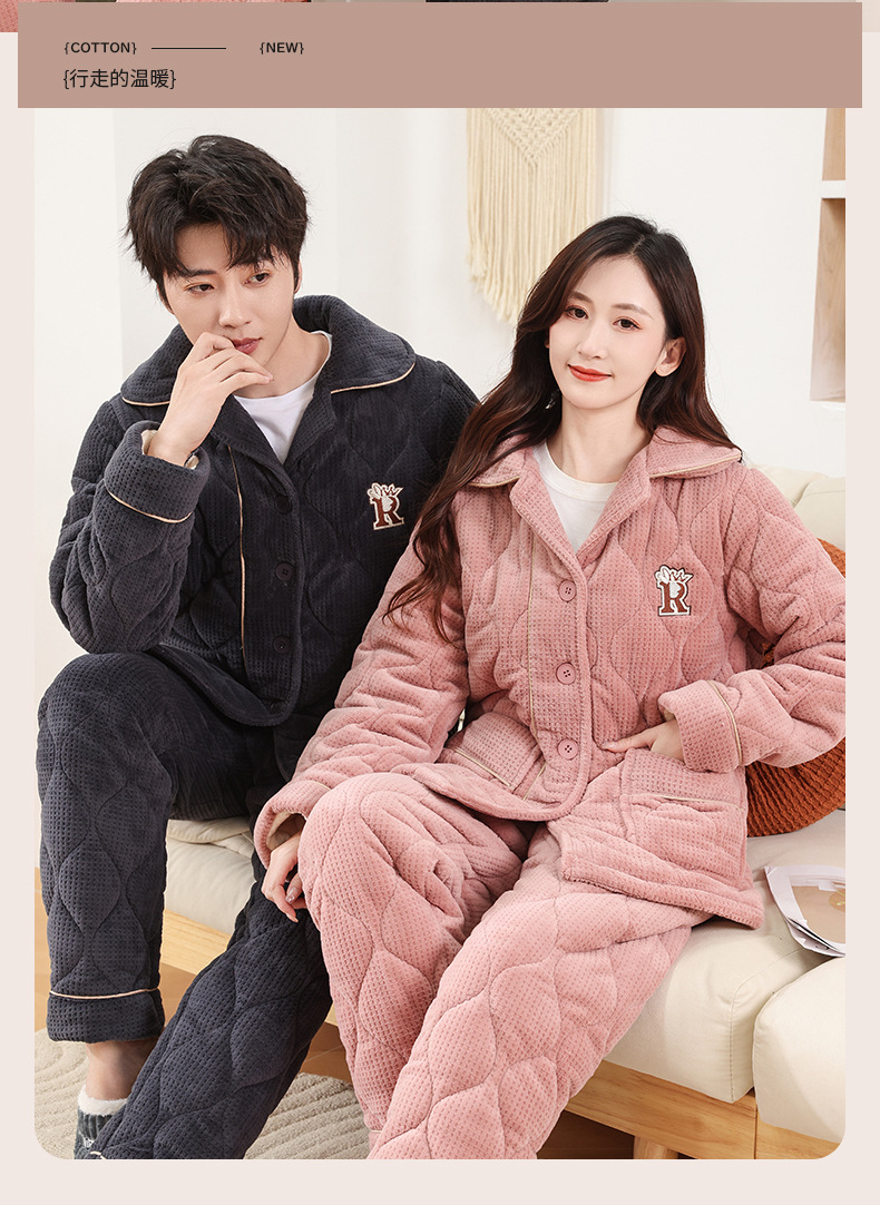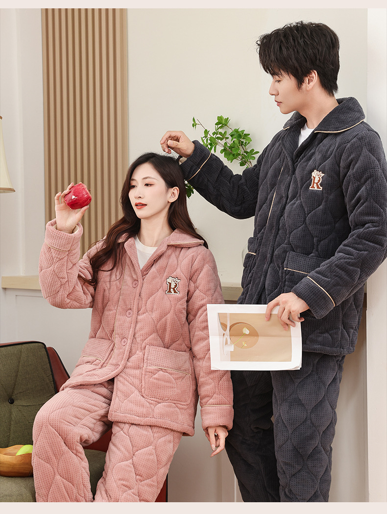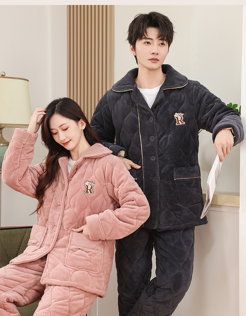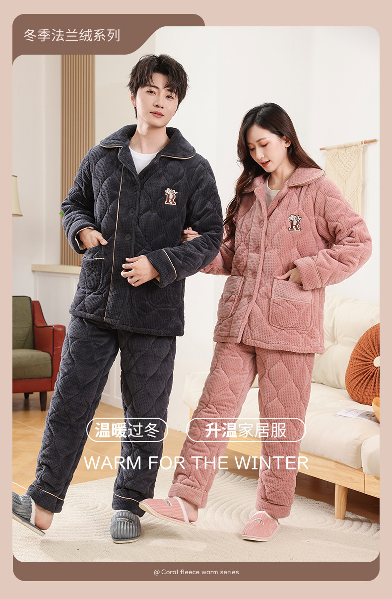 커플 잠옷 소녀 새로운 겨울 플란넬 3 층 두꺼운 퀼트 따뜻한 집 옷 소년 캐주얼 세트