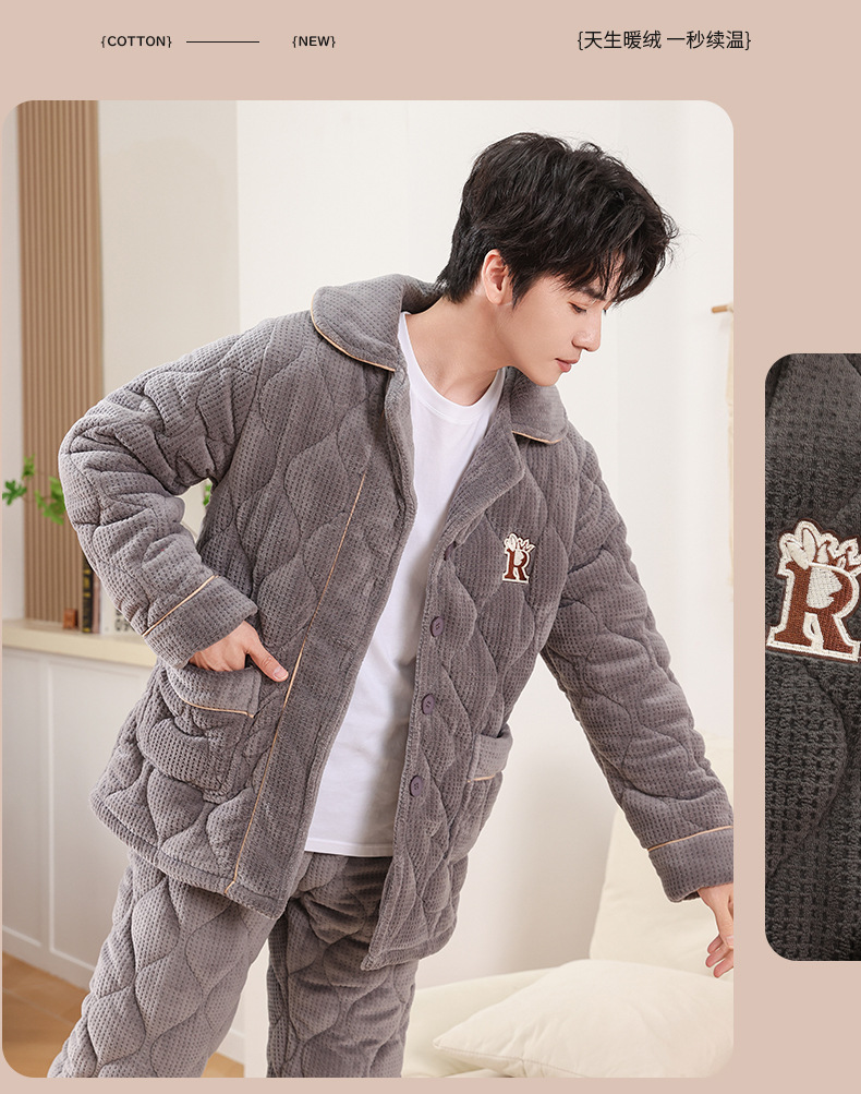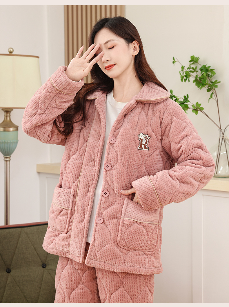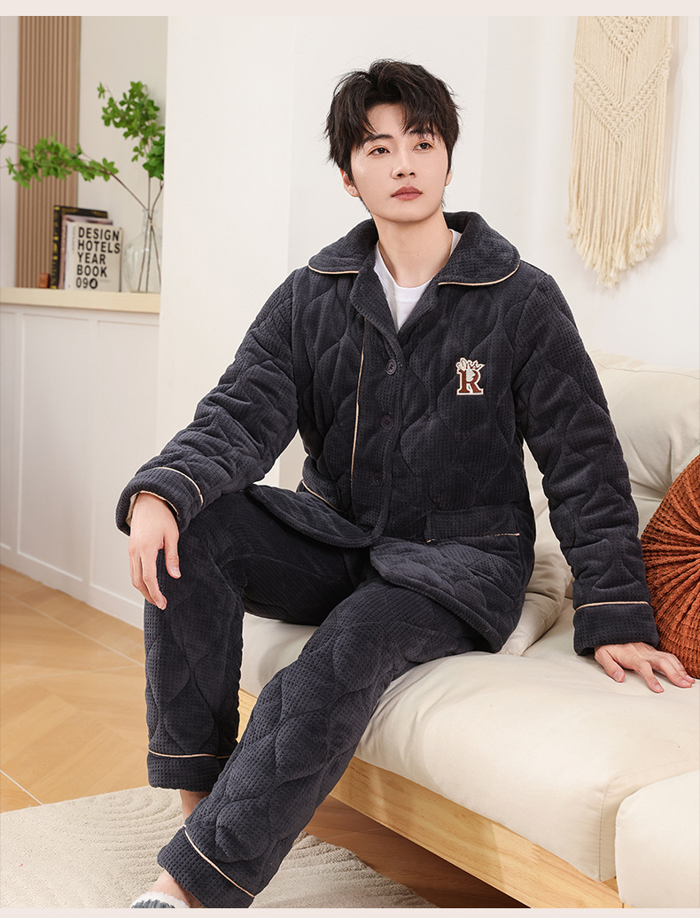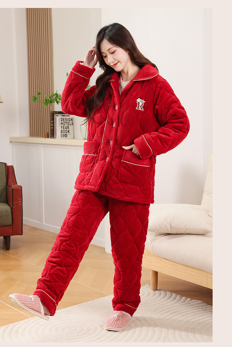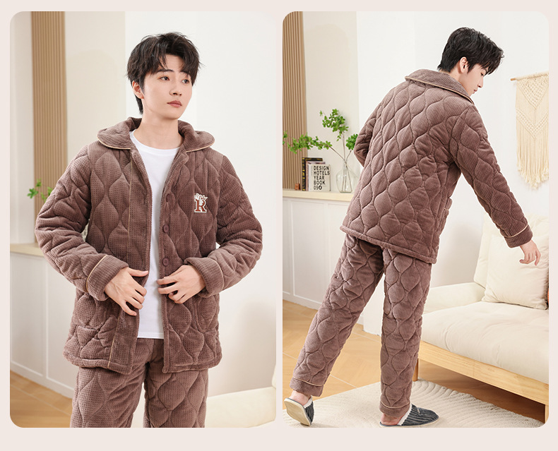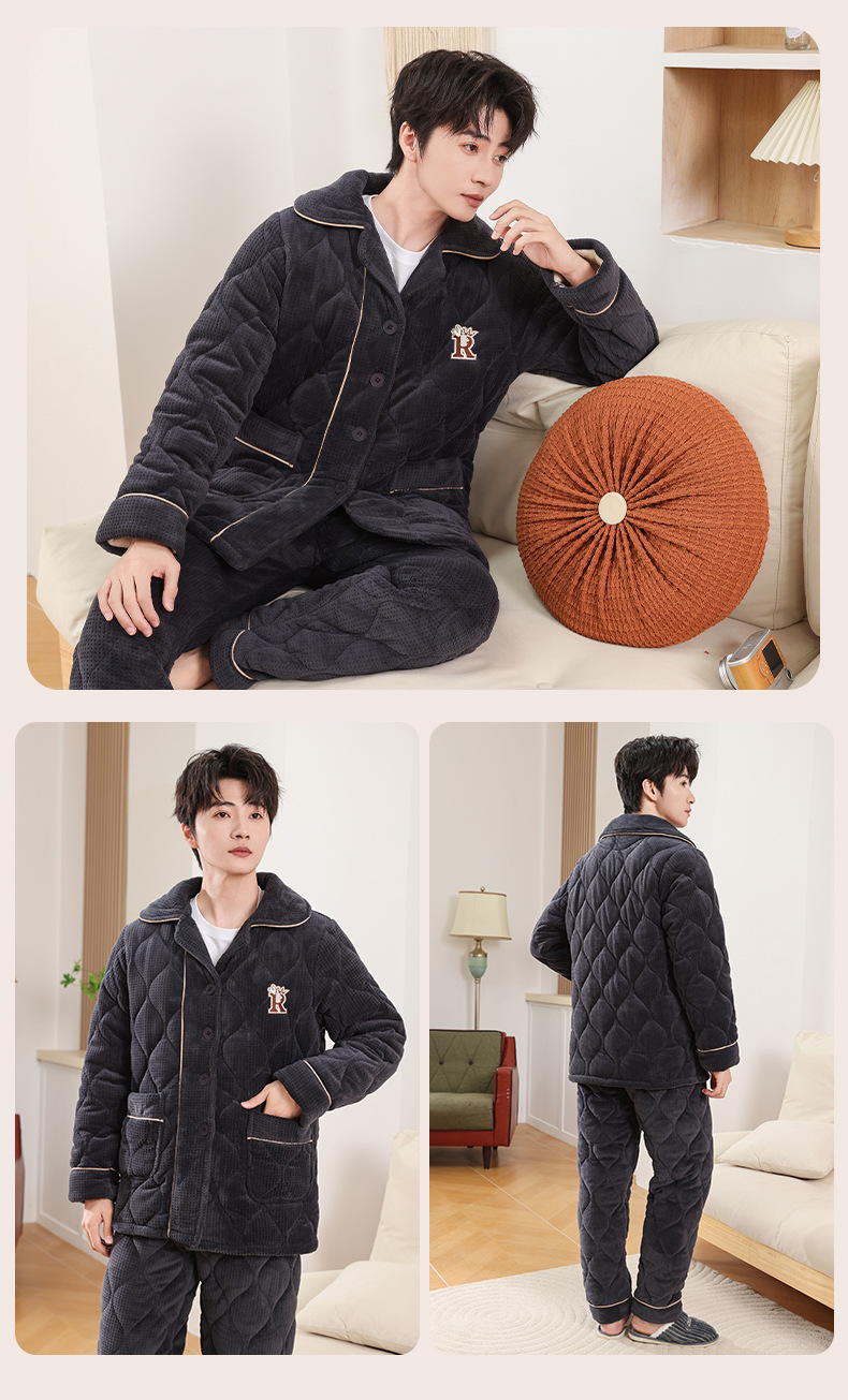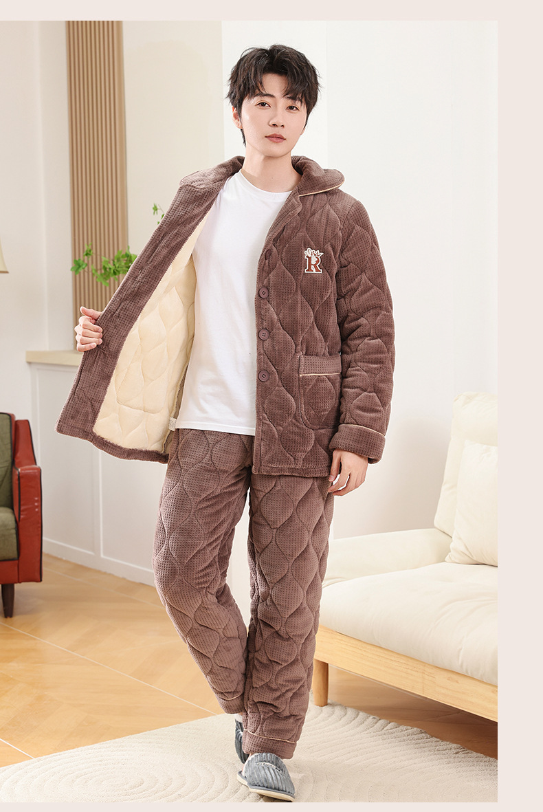 커플 잠옷 소녀 새로운 겨울 플란넬 3 층 두꺼운 퀼트 따뜻한 집 옷 소년 캐주얼 세트