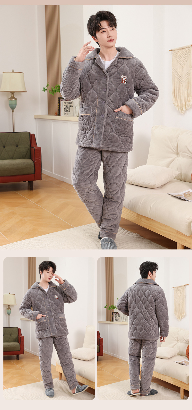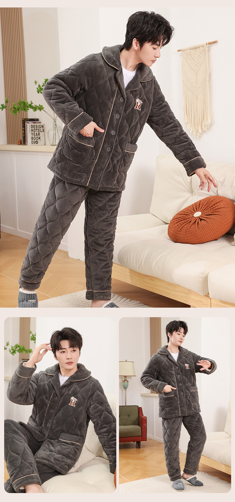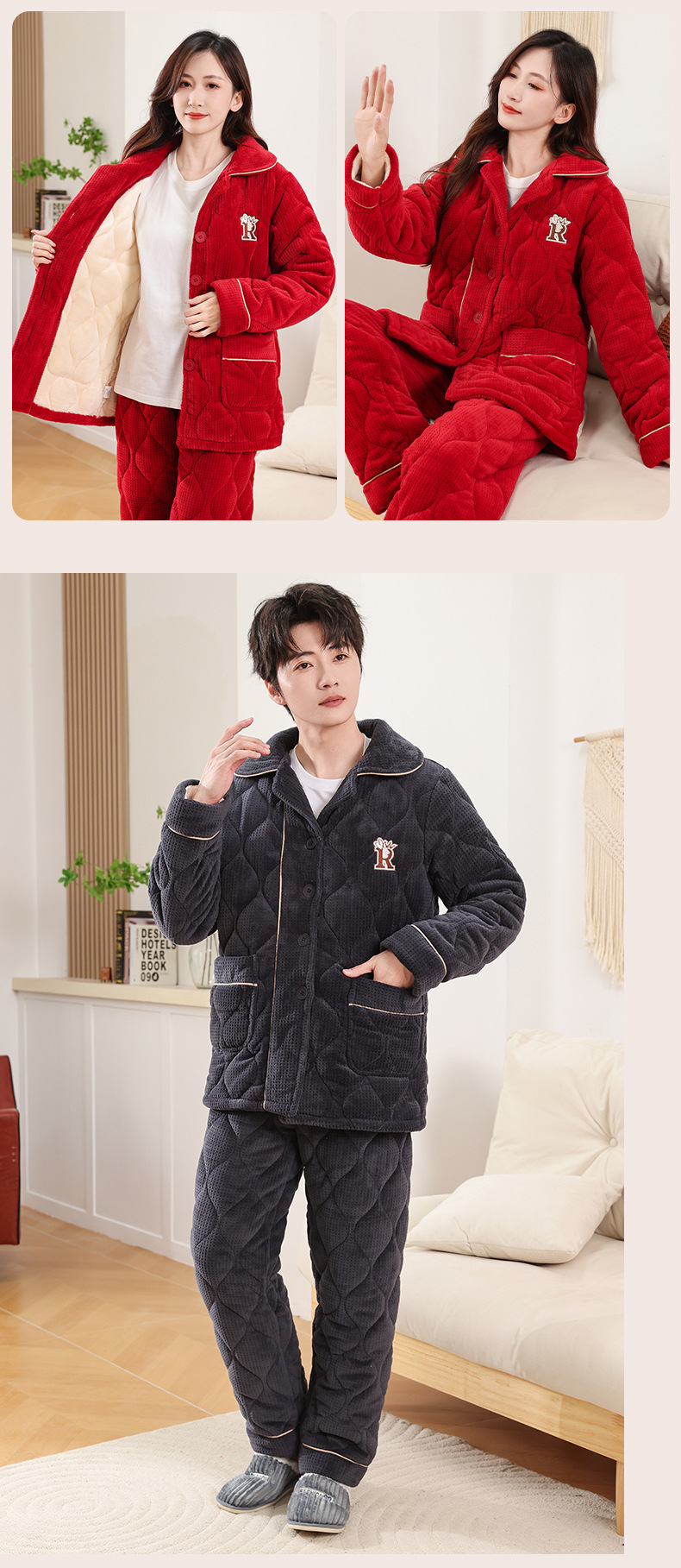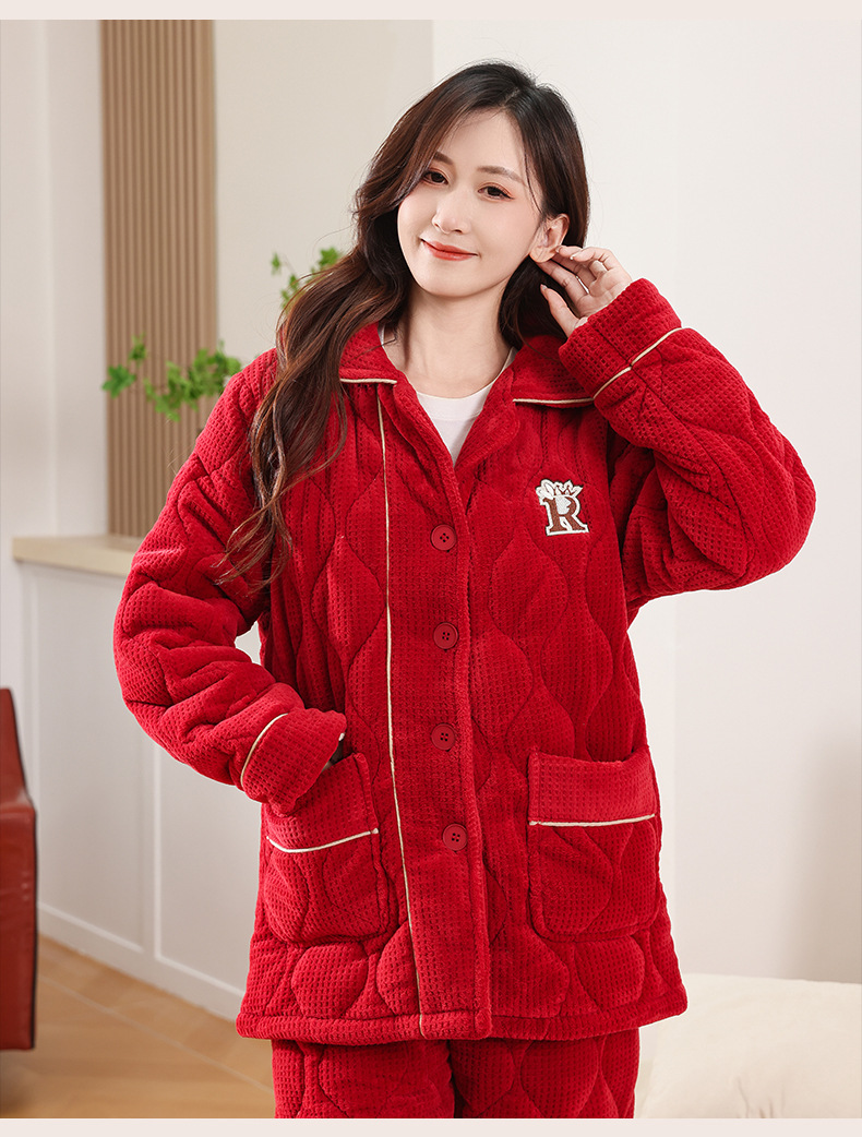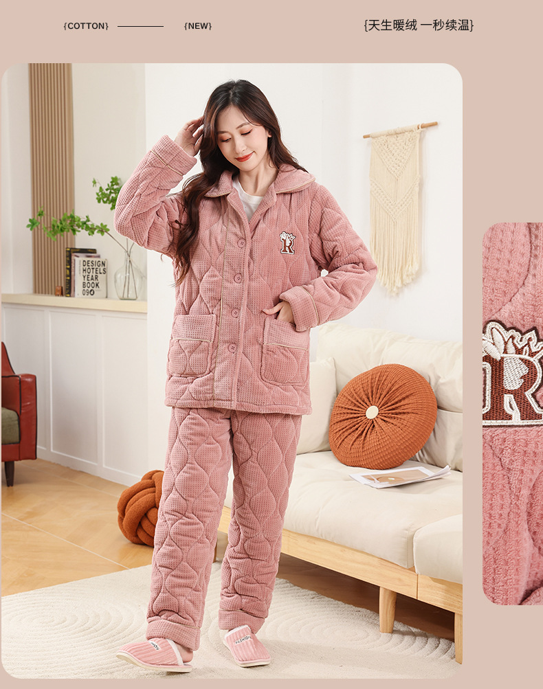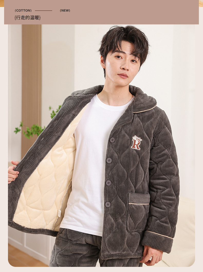 커플 잠옷 소녀 새로운 겨울 플란넬 3 층 두꺼운 퀼트 따뜻한 집 옷 소년 캐주얼 세트