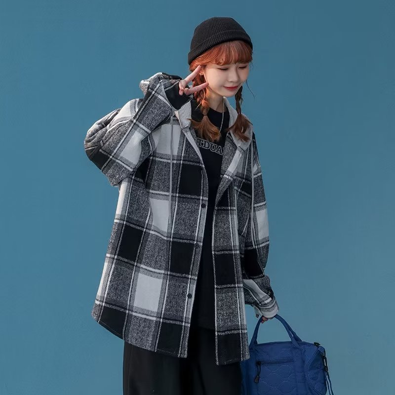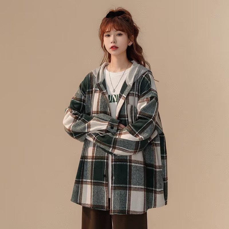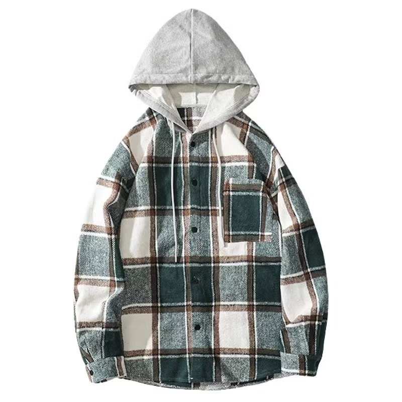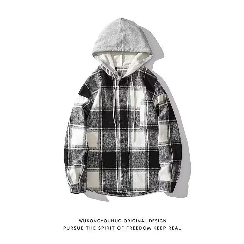 2024 격자 무늬 긴 소매 셔츠 남자의 봄과 가을 플러스 사이즈 패션 청소년 캐주얼 후드 코트 트렌디스토어 가기