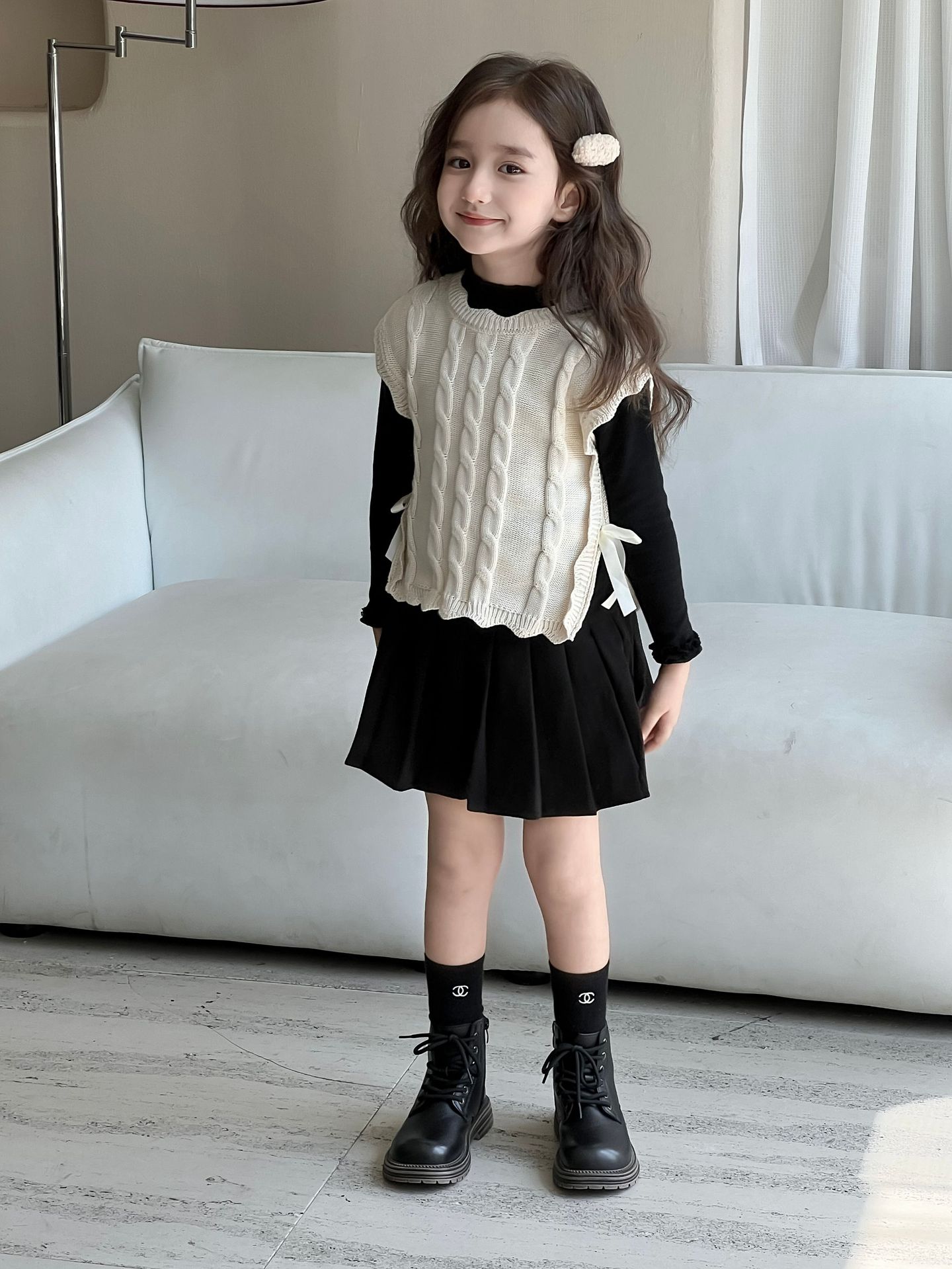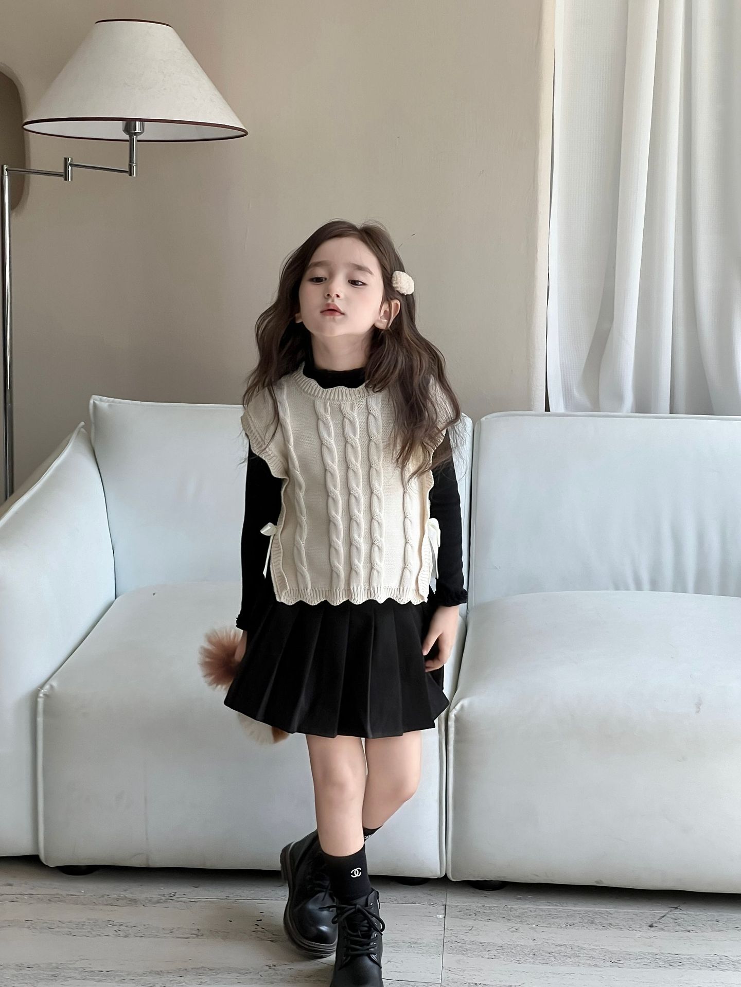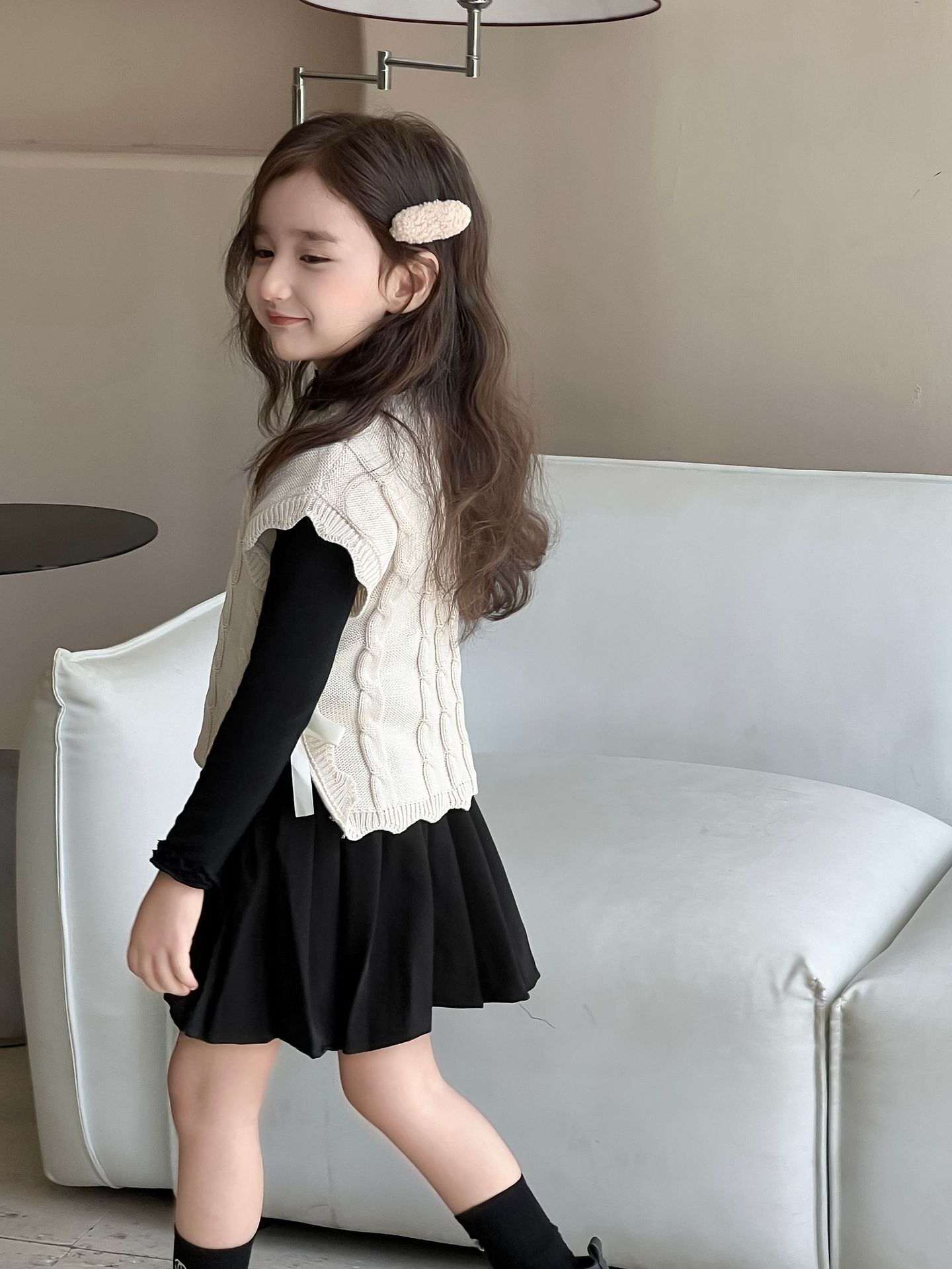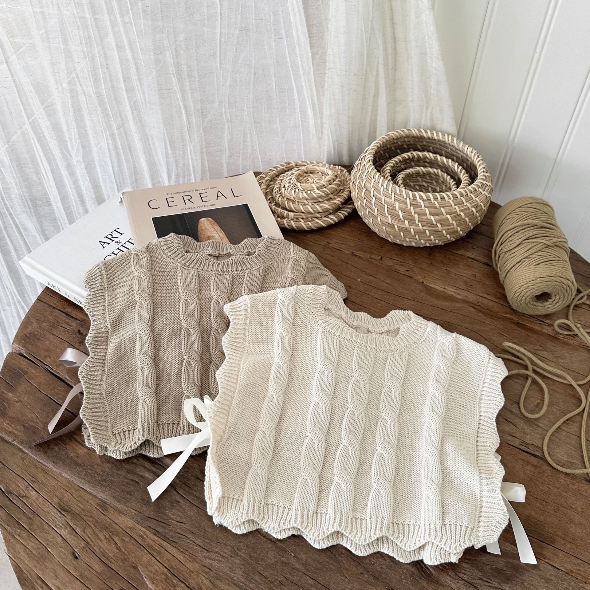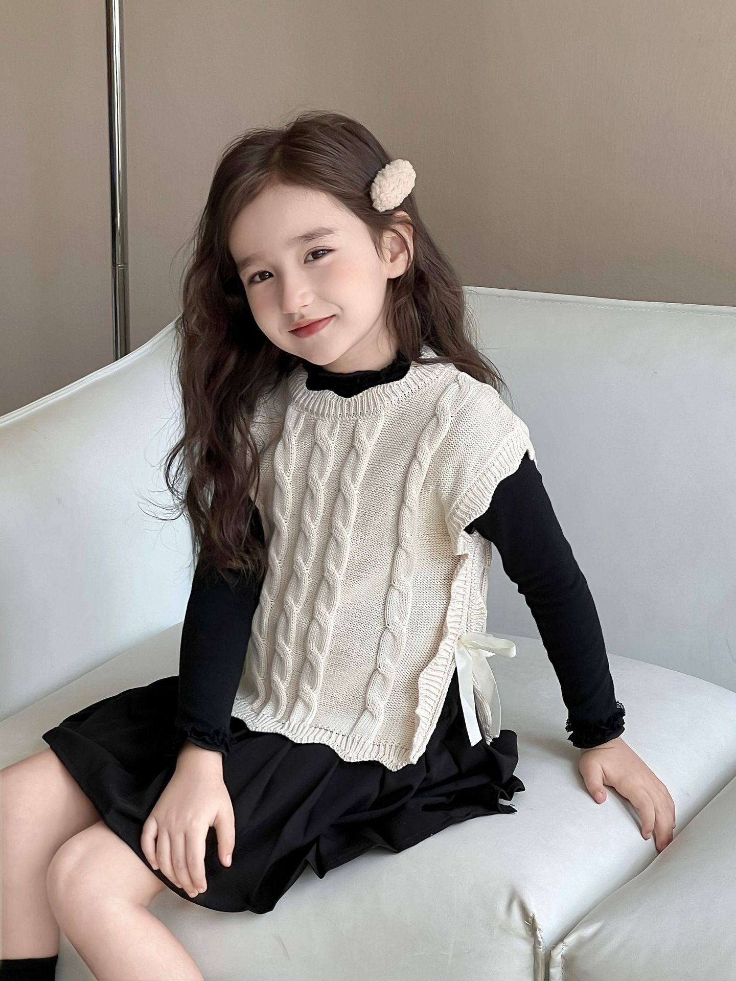 여자 조끼 2024 가을, 겨울 새로운 달콤한 숲 레이스 양모 조끼 아기 양복 조끼 탑 스웨터 유행스토어 가기