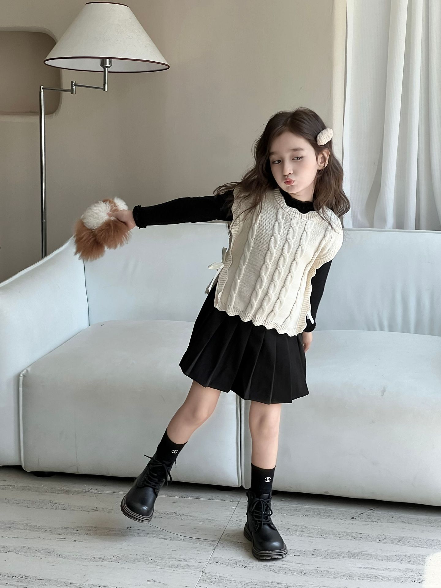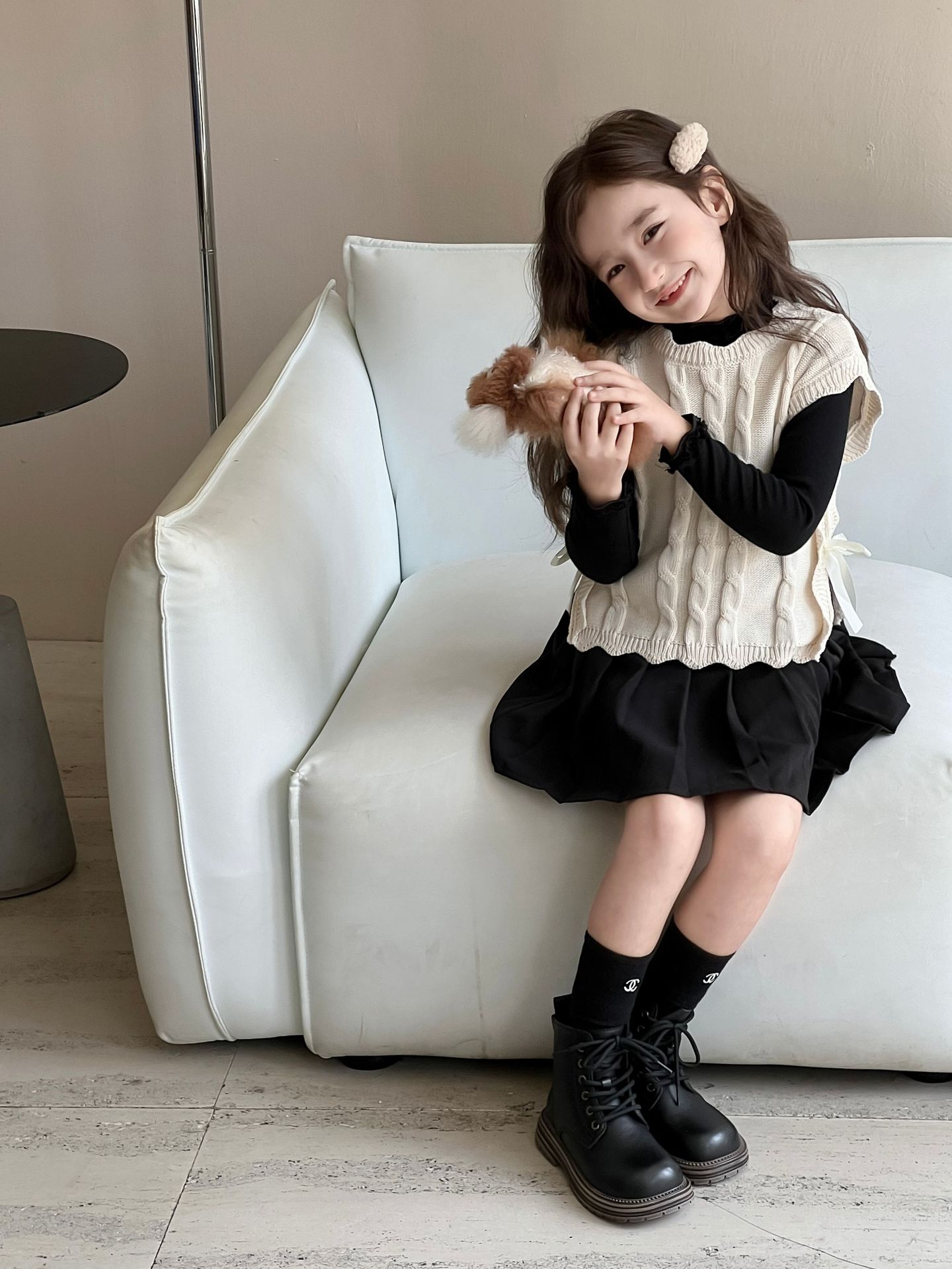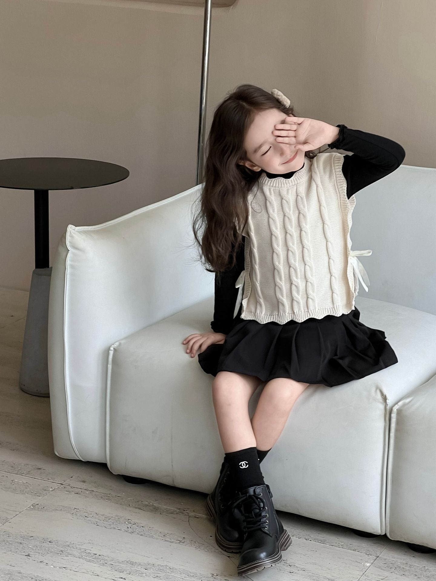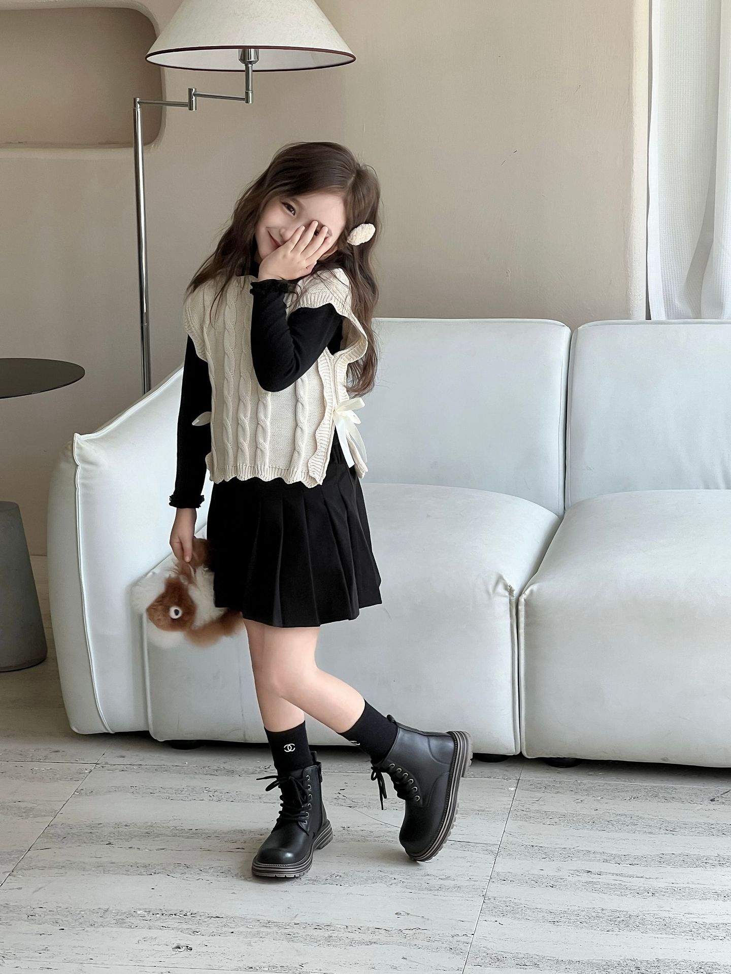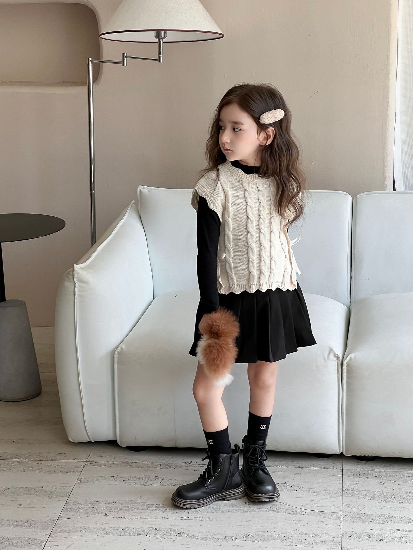 여자 조끼 2024 가을, 겨울 새로운 달콤한 숲 레이스 양모 조끼 아기 양복 조끼 탑 스웨터 유행스토어 가기
