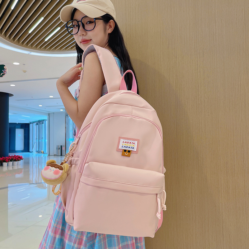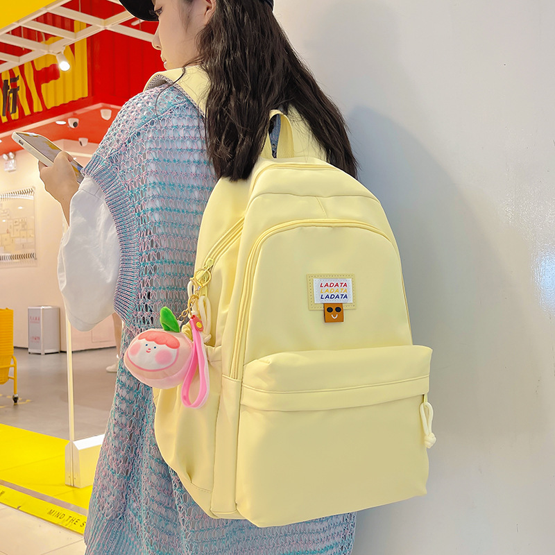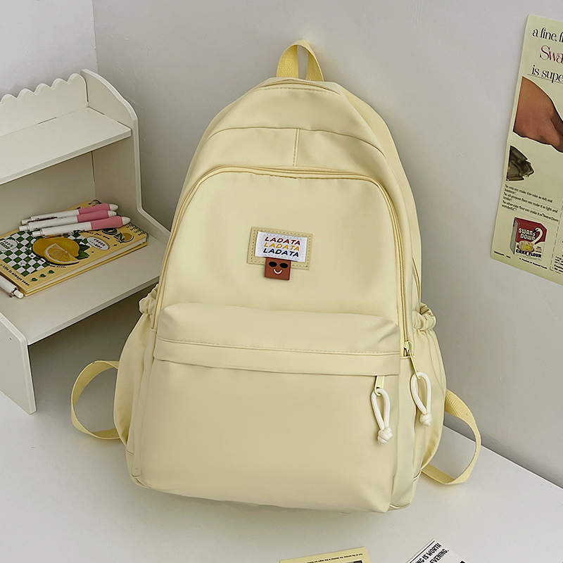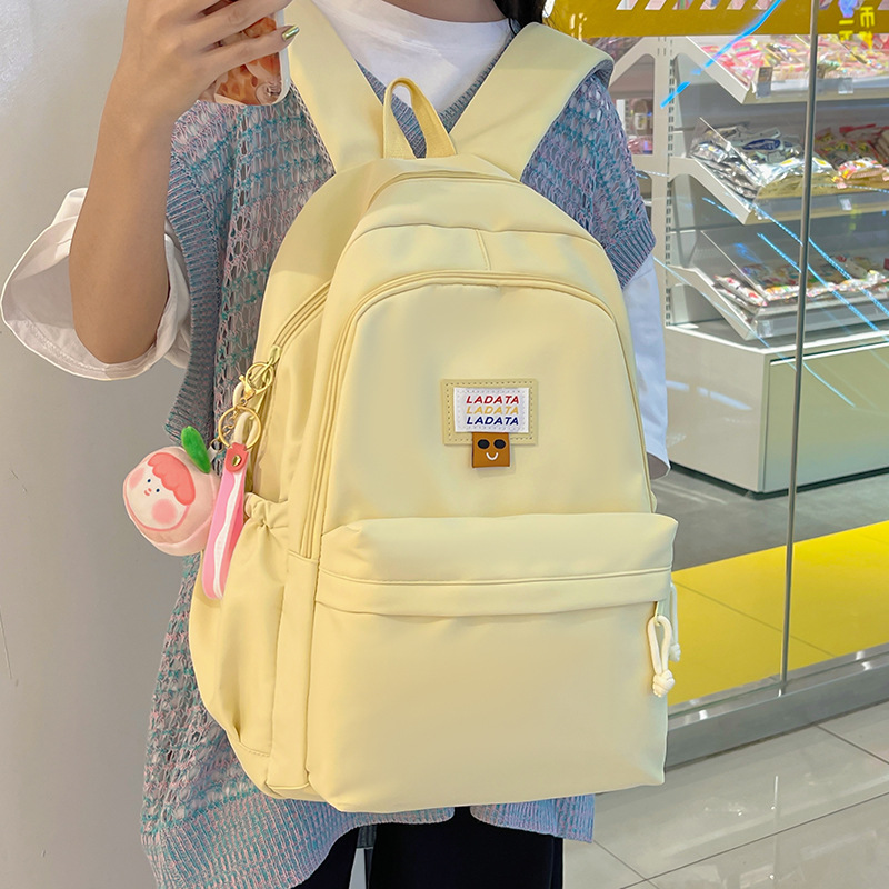 소프트 왁스 밀크 옐로우 스쿨백 여성 단순 올 매치 Ins 중학생 고등학생을위한 대용량 배낭 캐주얼 배낭스토어 가기