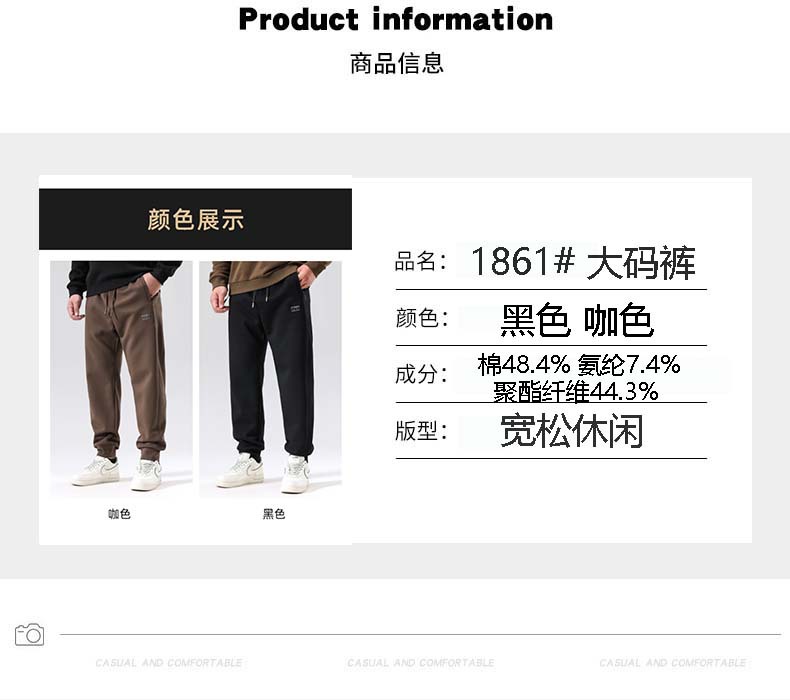 1861 | 플러스 사이즈 남자의 가을과 겨울 새로운 모달 캐주얼 바지 느슨한 편안한 스트레치 자수 스트레이트 바지