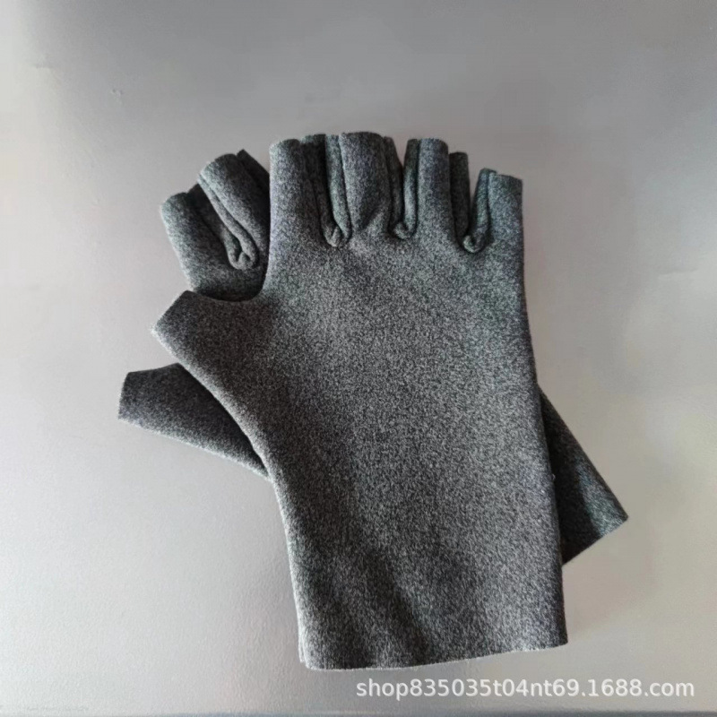 하프 핑거 장갑 여자 겨울 어린이 사무실 글쓰기 기모 따뜻한 유지 터치 스크린 학생 셀프 가열 오픈 핑거 운전스토어 가기