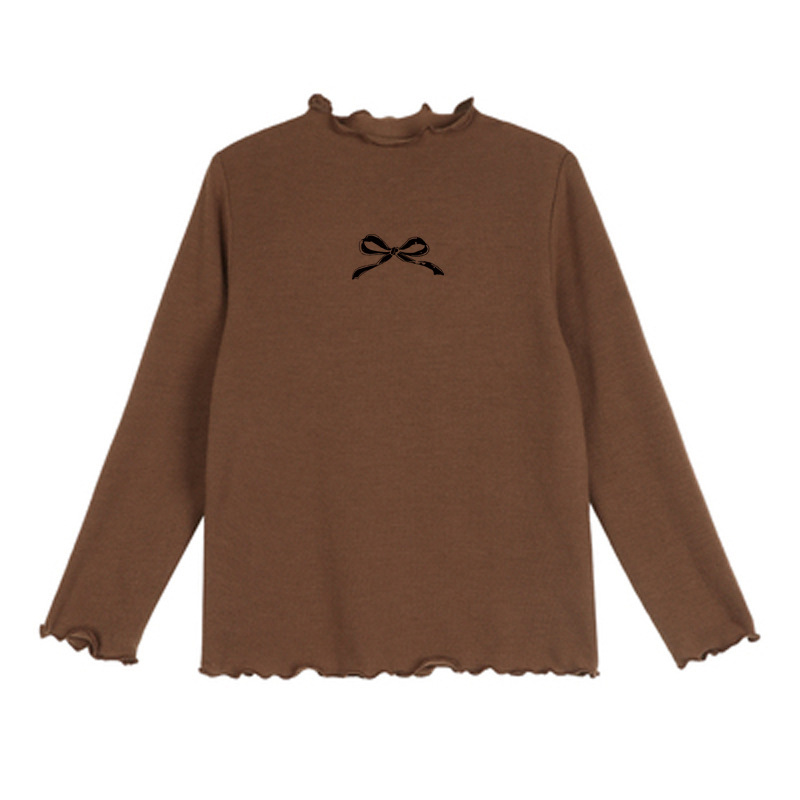 여자 서양식 슬림 핏 내면베이스 셔츠 따뜻한 가을과 겨울 소녀 반 높은 칼라 탑 어린이 외신 긴팔 티셔츠스토어 가기