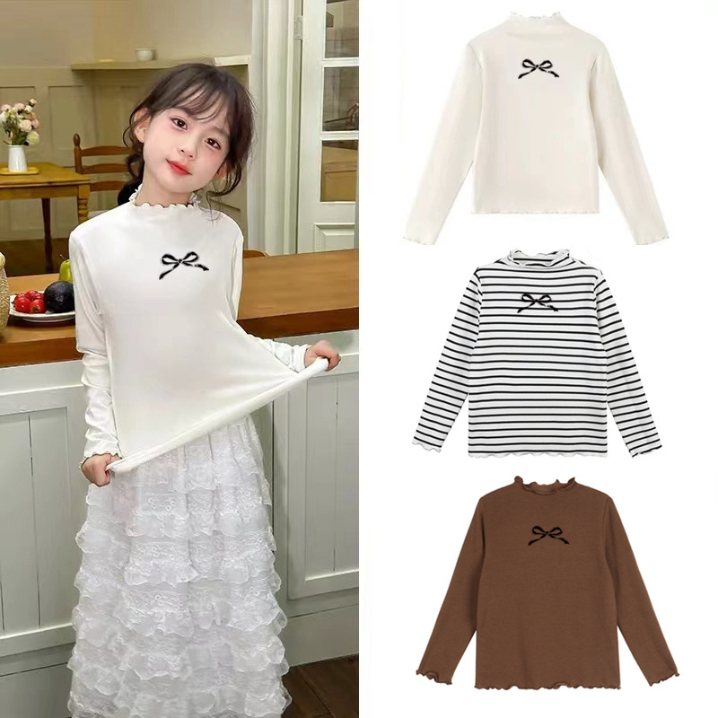 여자 서양식 슬림 핏 내면베이스 셔츠 따뜻한 가을과 겨울 소녀 반 높은 칼라 탑 어린이 외신 긴팔 티셔츠