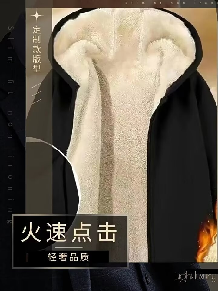 가을과 겨울 기모 두꺼운 후드 카디건 스웨터 남자 2024 뉴 플러스 사이즈 올 매치 따뜻한 양가죽 자켓스토어 가기