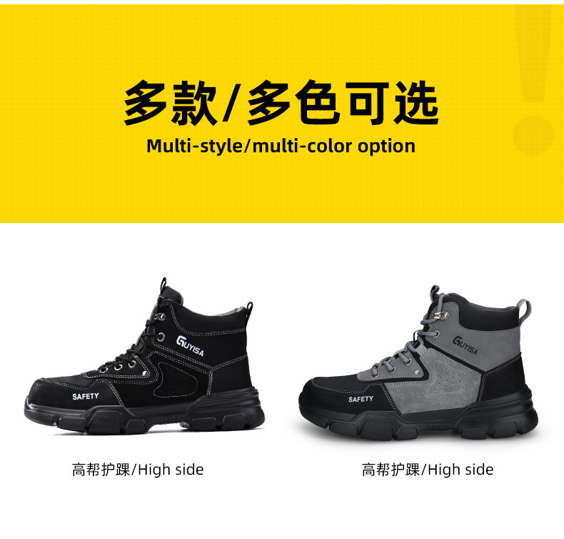 안전 신발 남성용 스매싱 방지 및 피어싱 방지 부드러운 밑창 편안한 긴 작업 신발 하이 탑 블랙 스틸 발가락 안전 신발스토어 가기