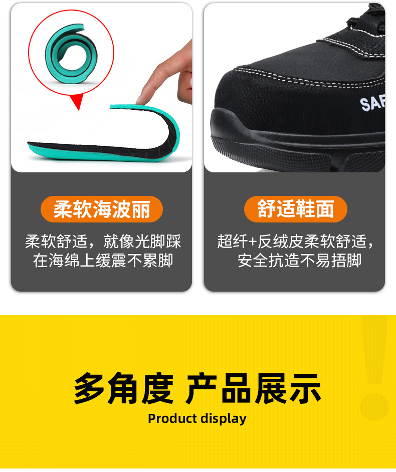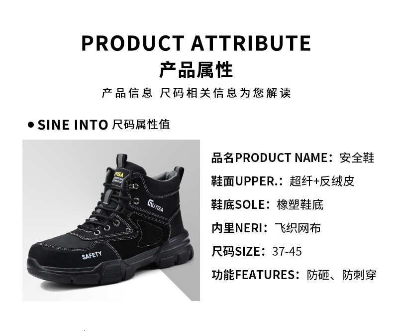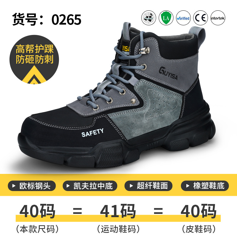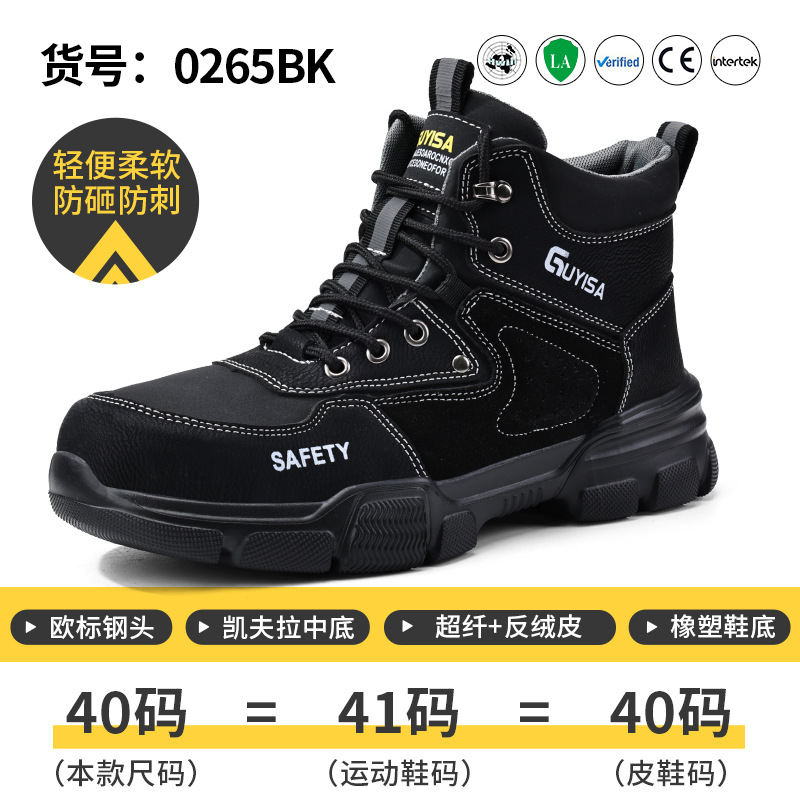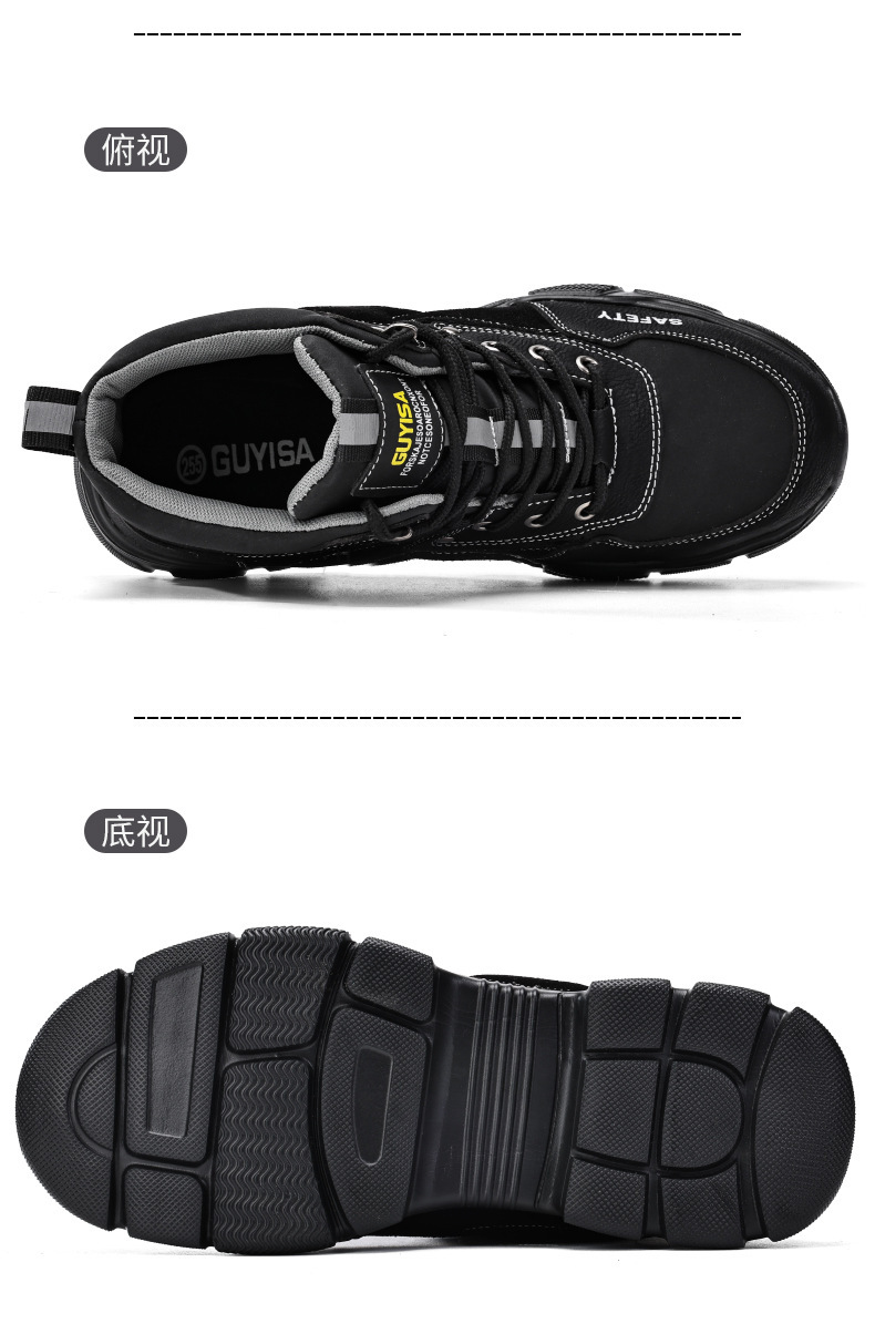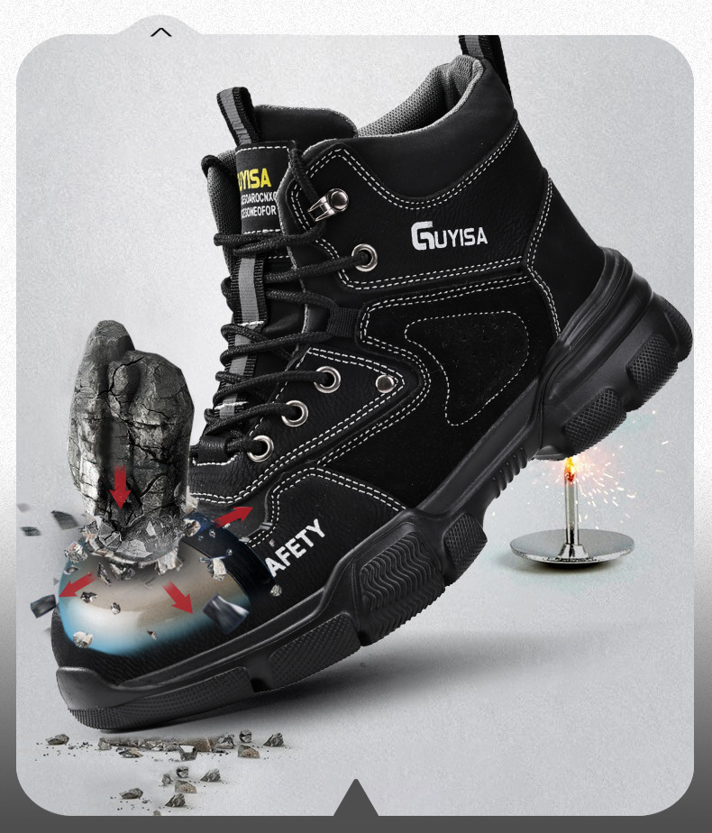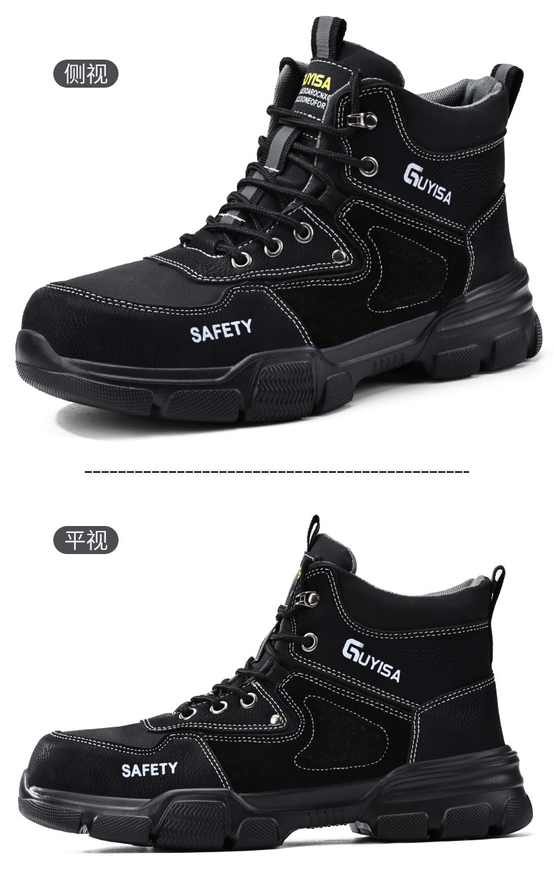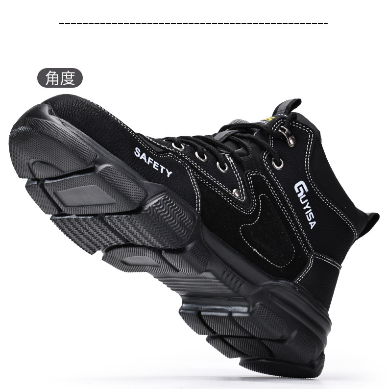 안전 신발 남성용 스매싱 방지 및 피어싱 방지 부드러운 밑창 편안한 긴 작업 신발 하이 탑 블랙 스틸 발가락 안전 신발
