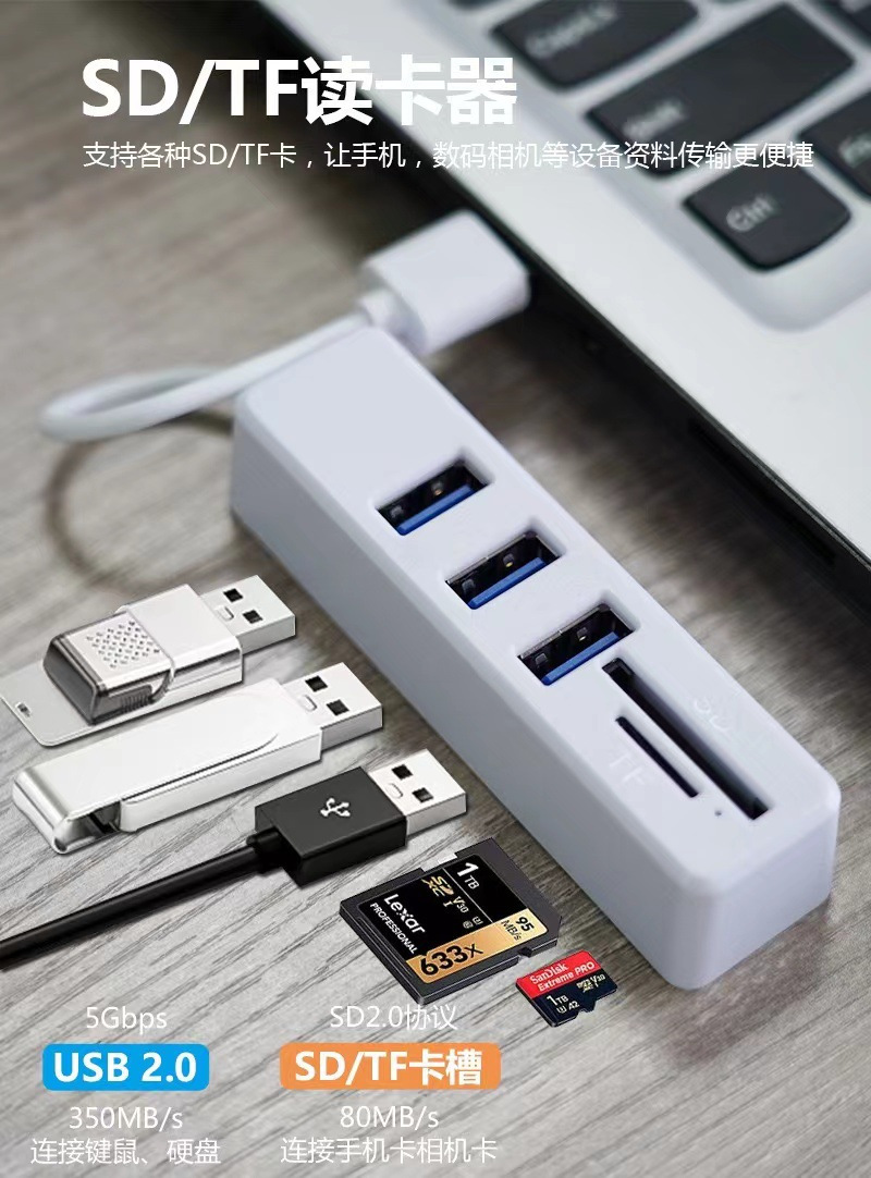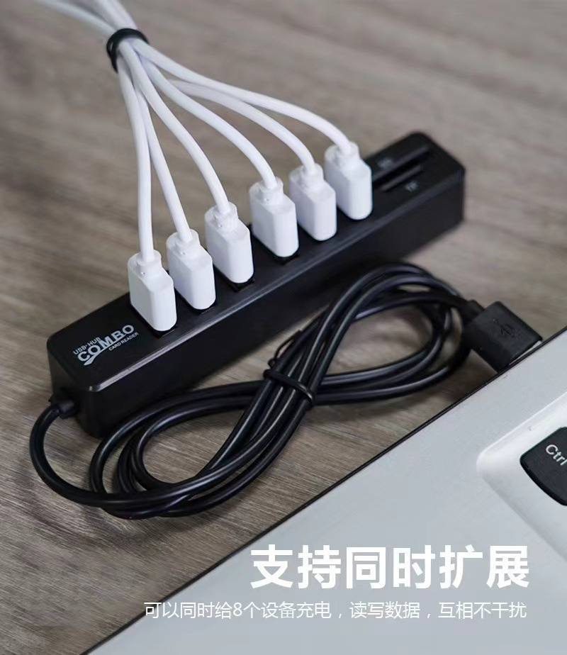 케이블이 포함된 USB2.0HUB 8-in-1 콤보 카드 리더기 SD/TF 멀티 인터페이스 분배기