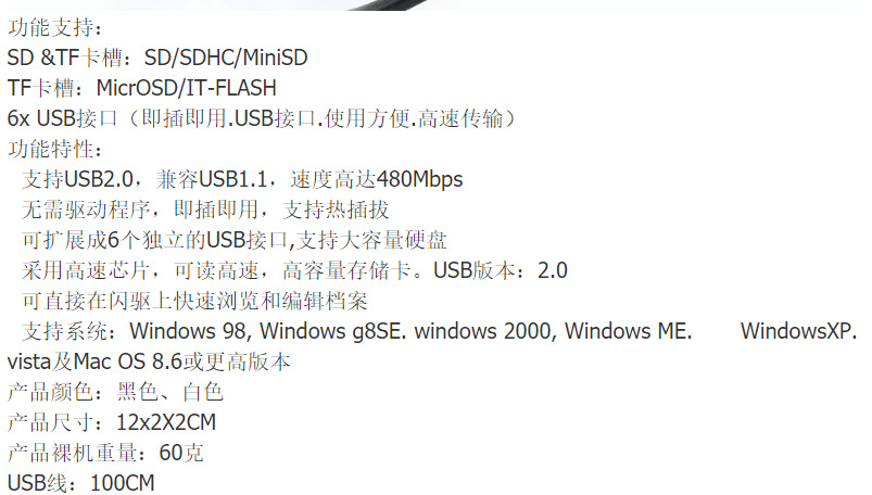 • 3포트 허브 + 조명이 포함된 듀얼 SIM SD/TF(색상 랜덤)