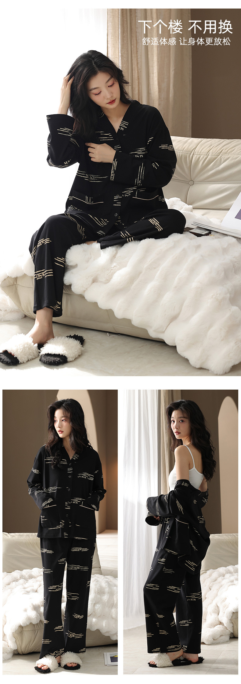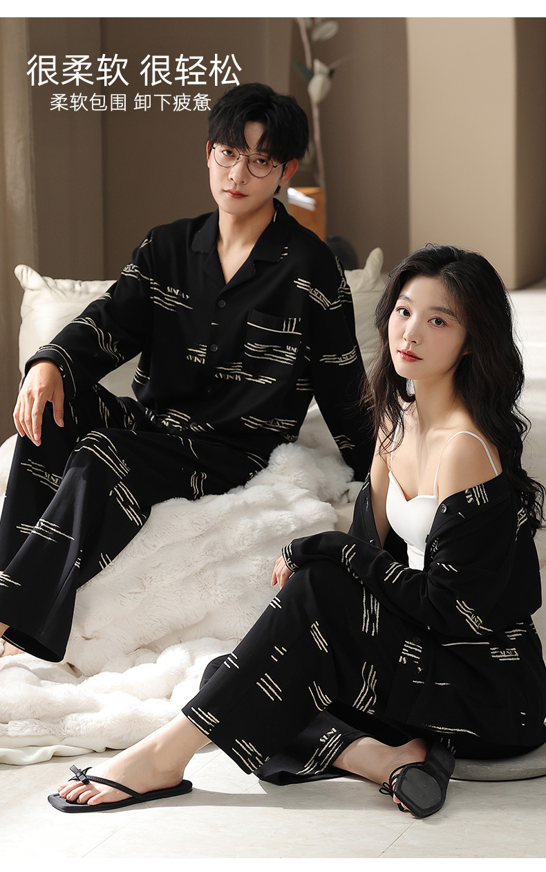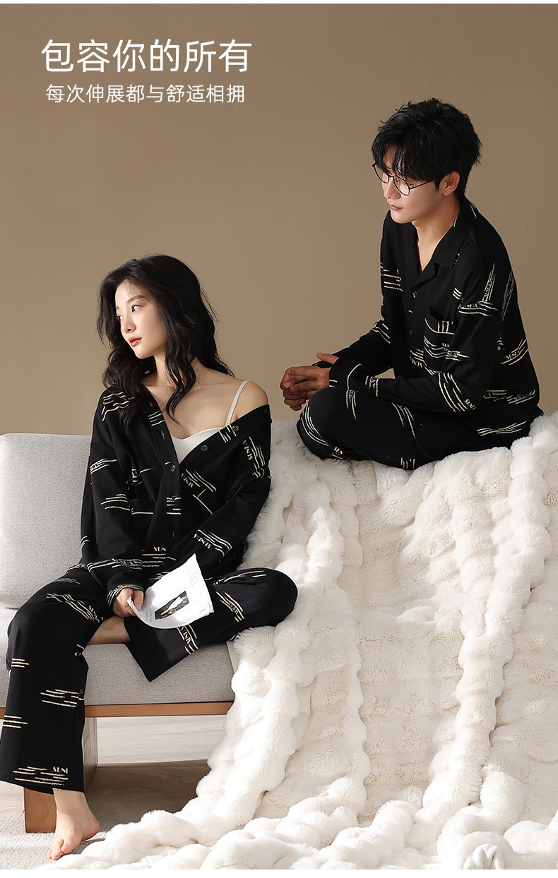 2025 새로운 메인 푸시 블랙 매칭 커플 잠옷 긴 소매 캐주얼 남성 옷깃 홈 의류 세트스토어 가기