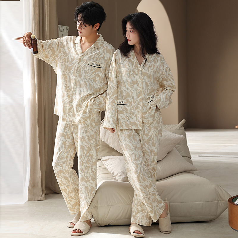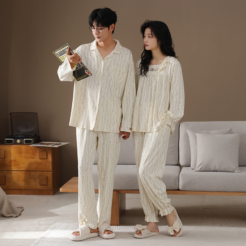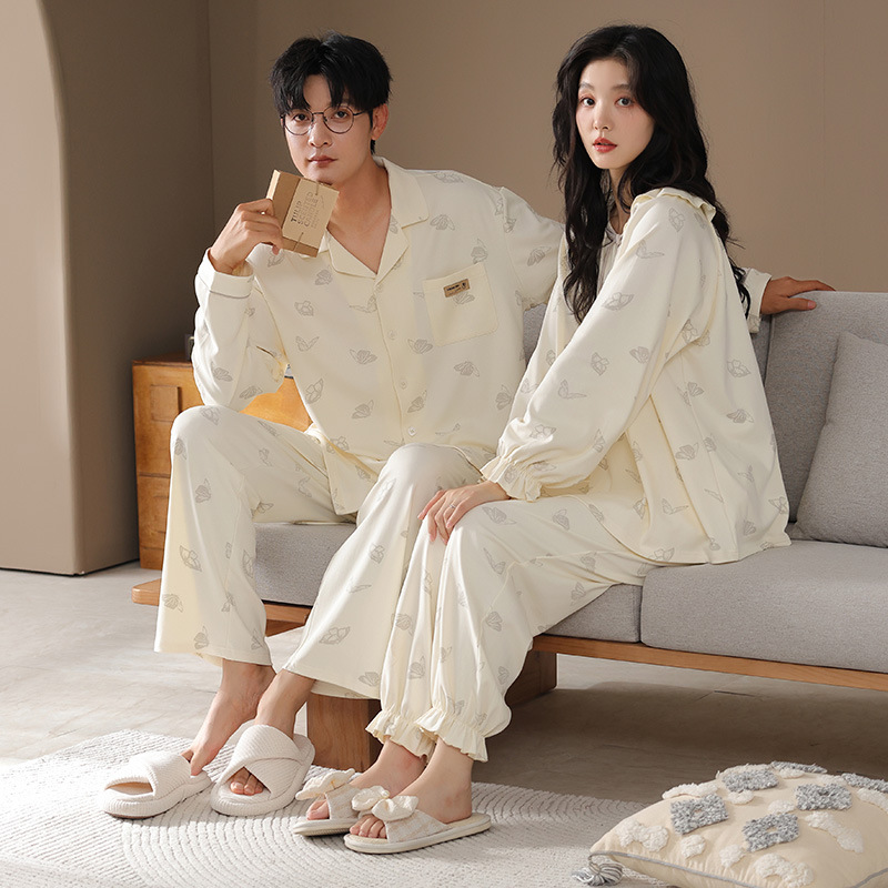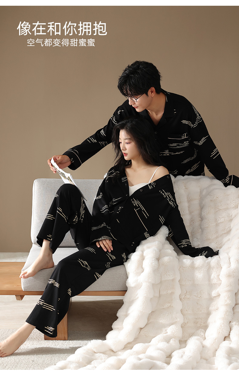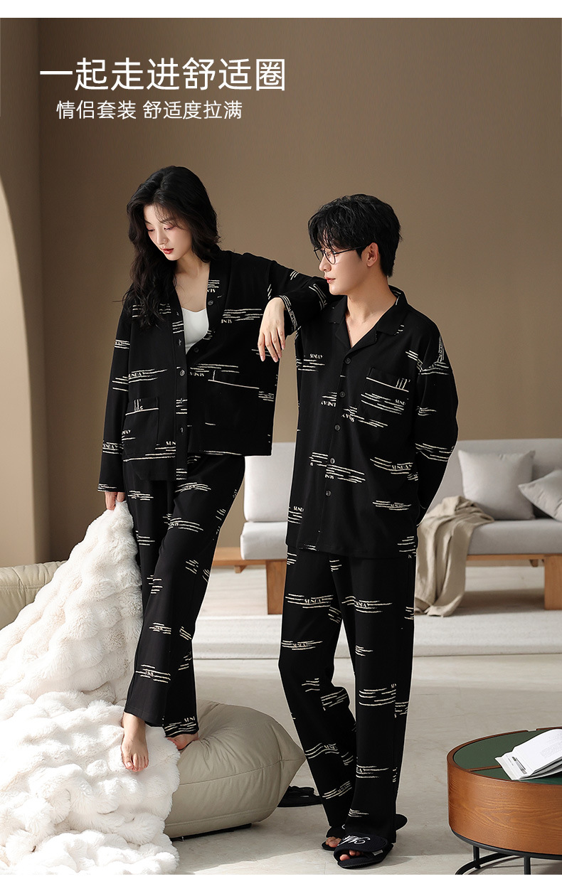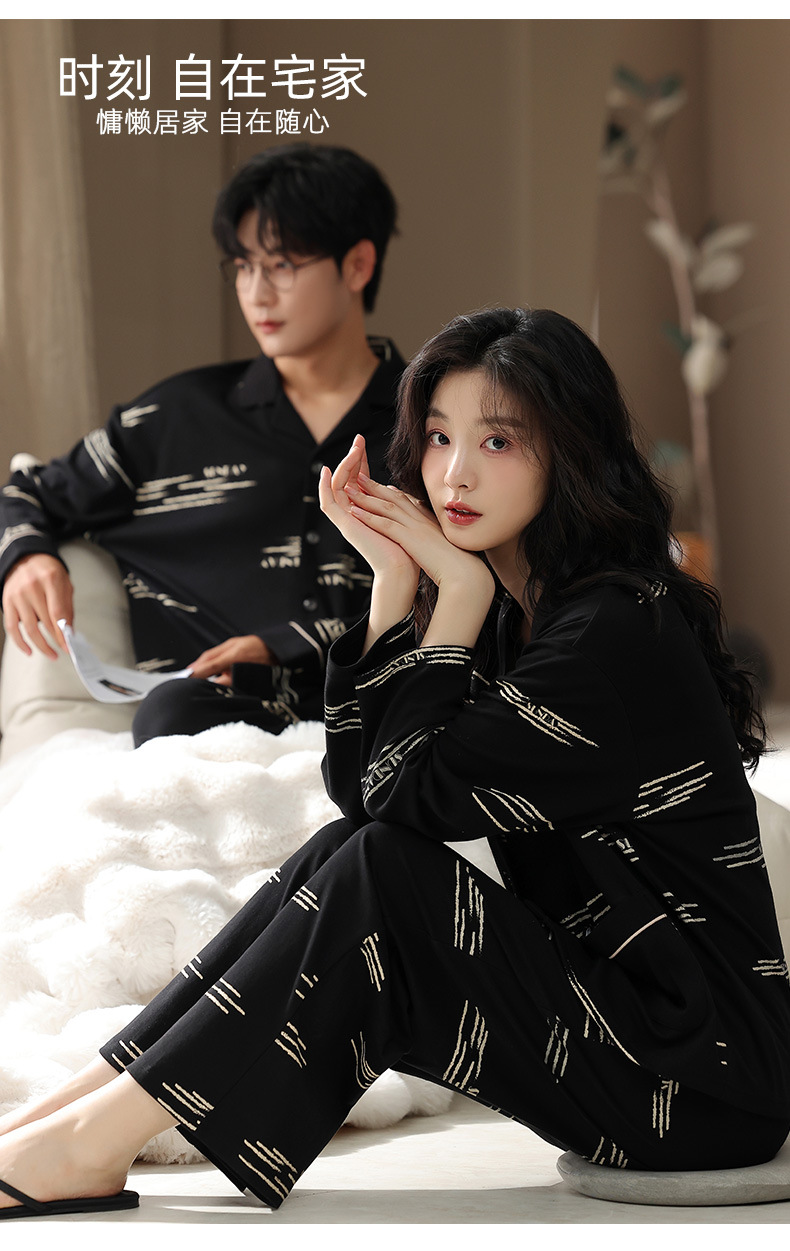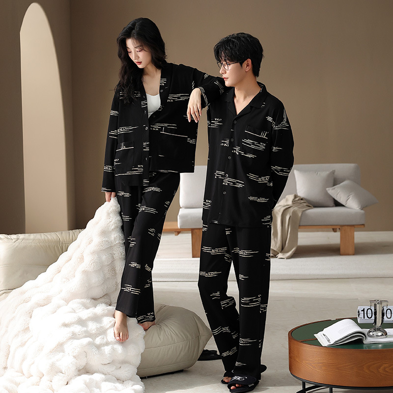 2025 새로운 메인 푸시 블랙 매칭 커플 잠옷 긴 소매 캐주얼 남성 옷깃 홈 의류 세트