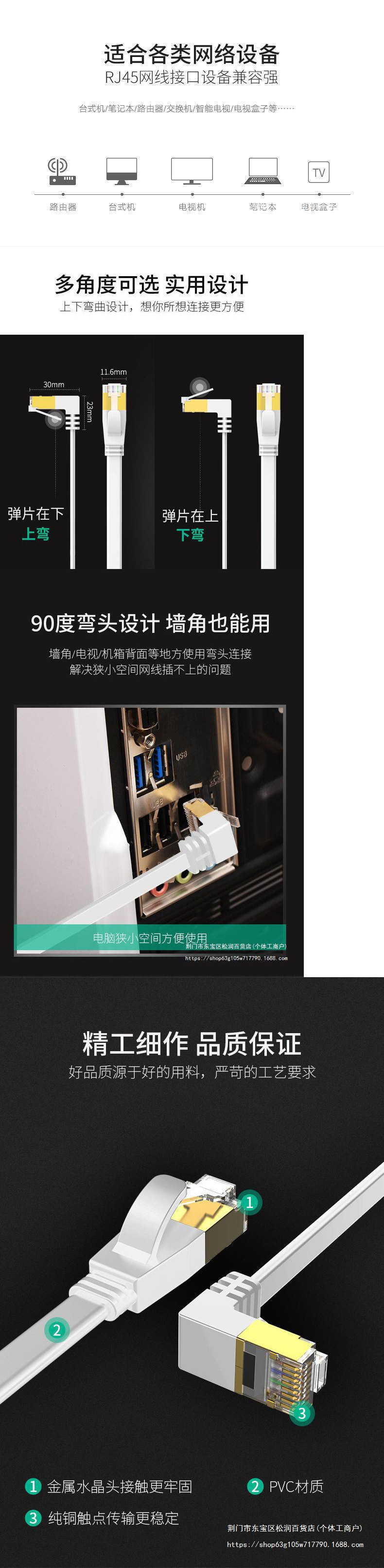 Shengshi Changying Class 6 플랫 네트워크 팔꿈치 90 도 클래스 6 구리 기가비트 고속 컴퓨터 광대역 L 자형 벤드스토어 가기