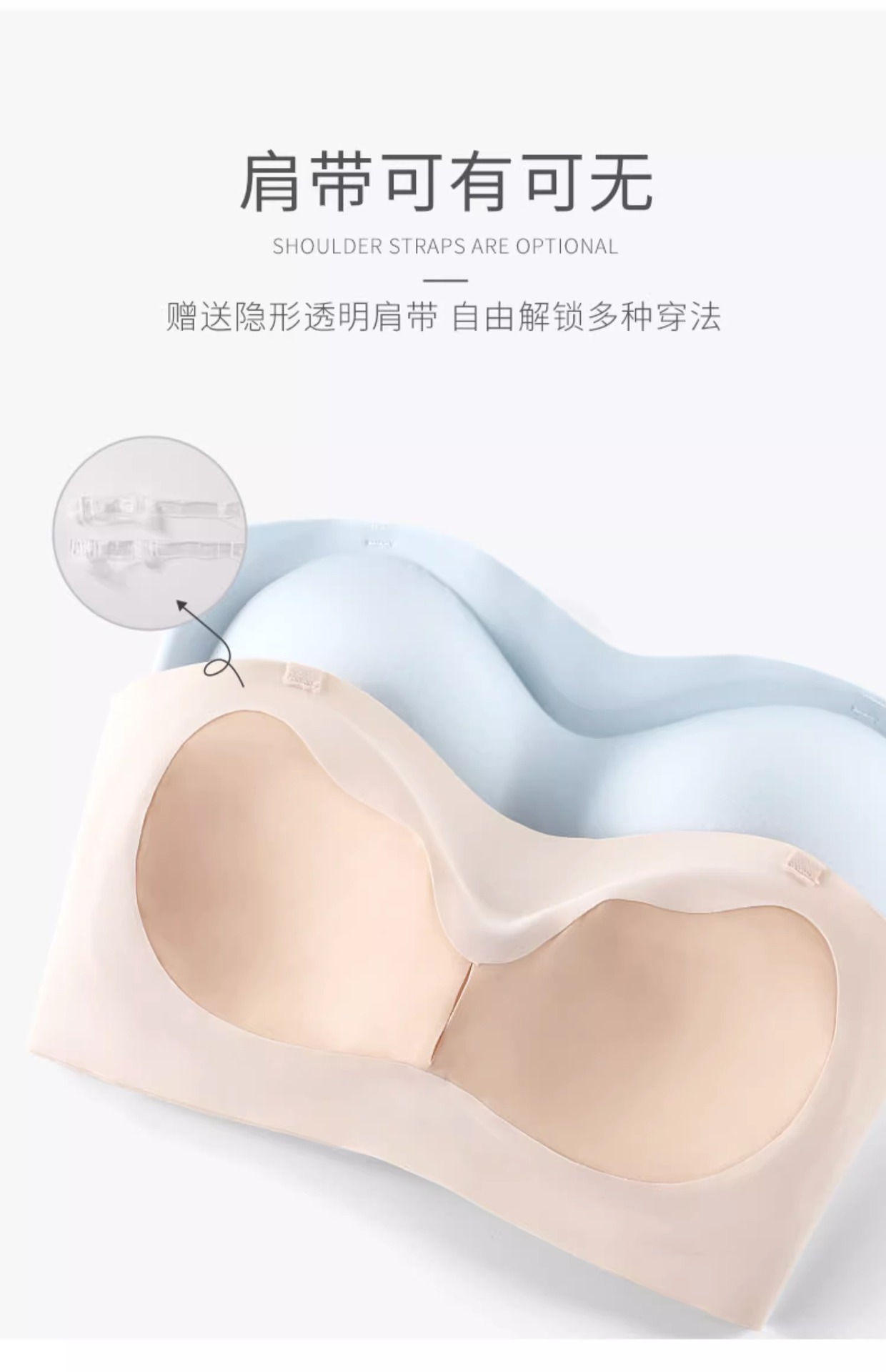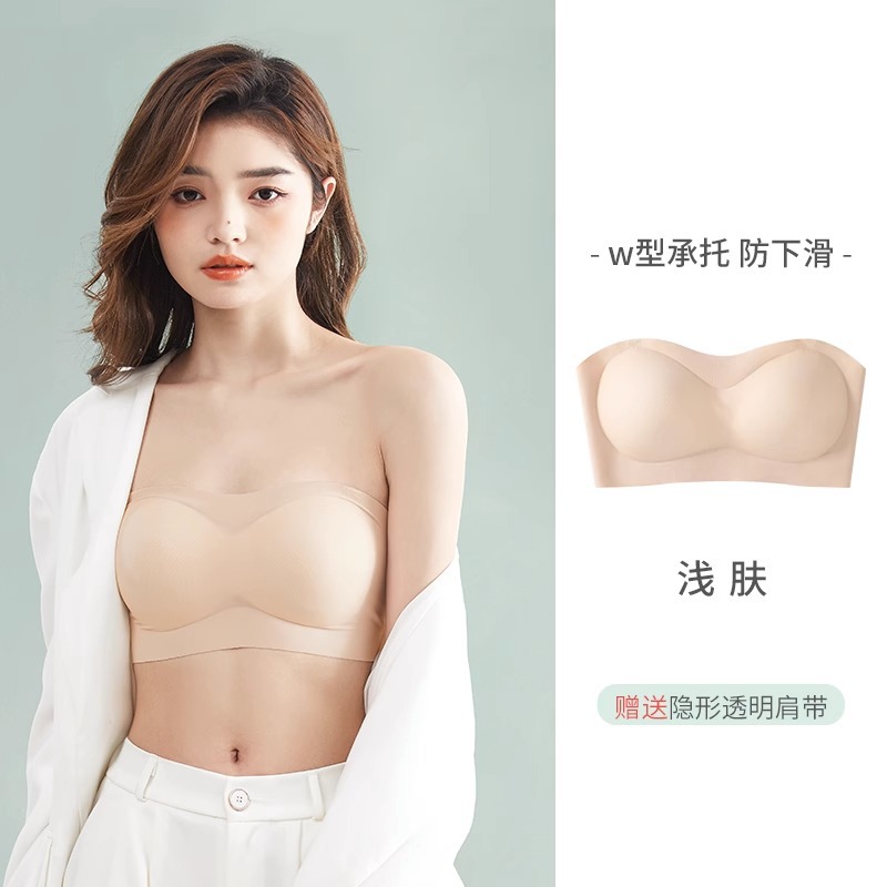 여름용 얇은 통기성 튜브탑 스트랩리스 노라인 여성 속옷, 푸쉬업 미끄럼 방지 가슴 보호 노출 방지 투명 브라스토어 가기