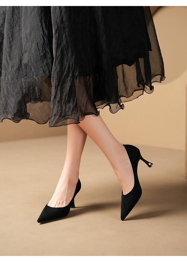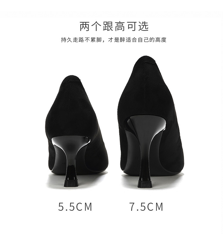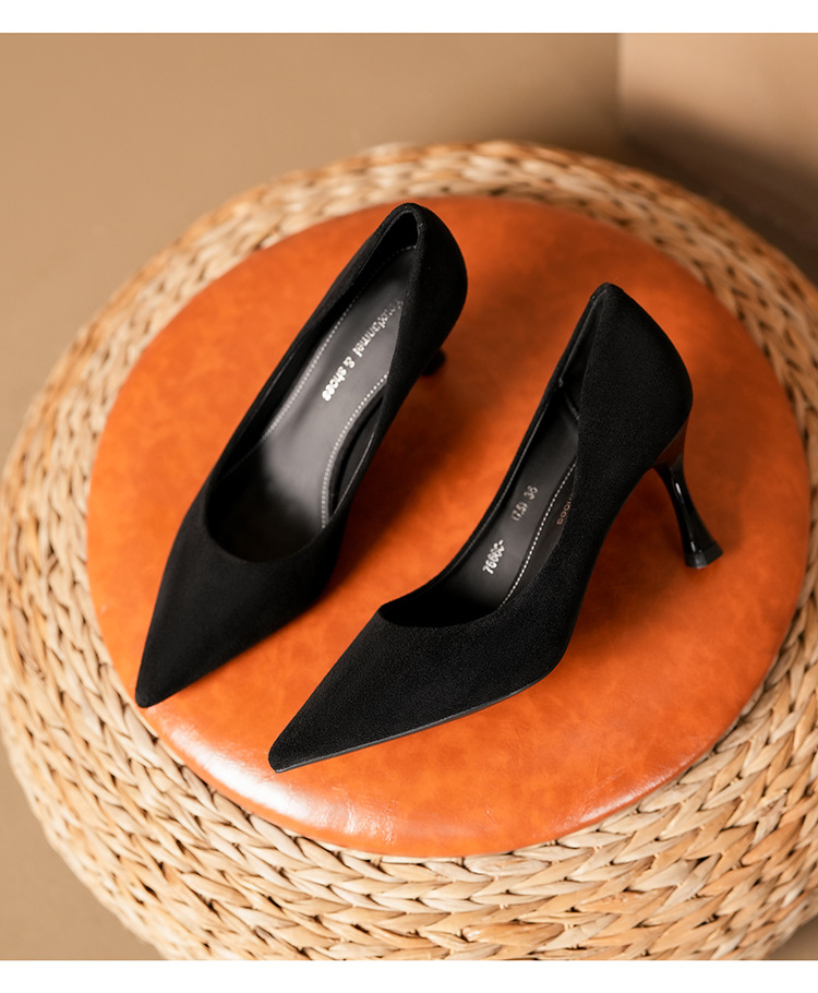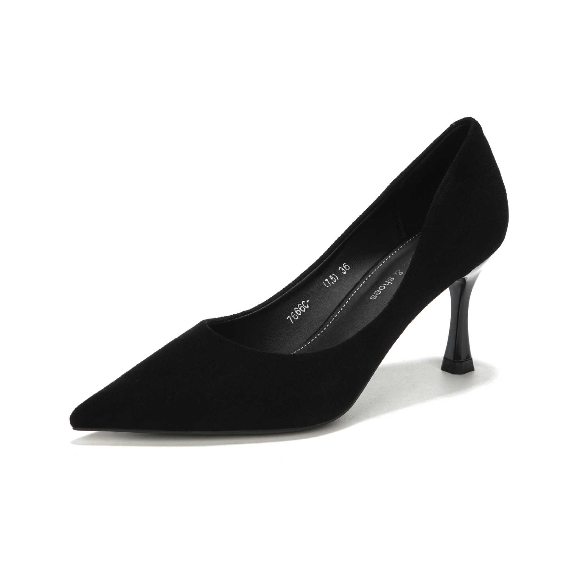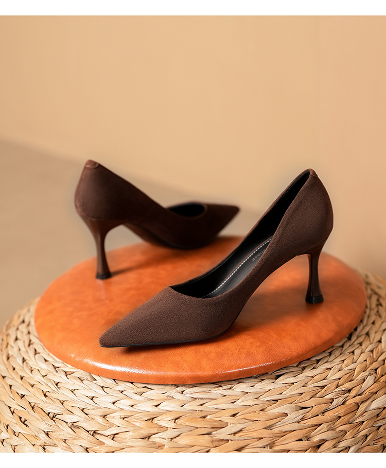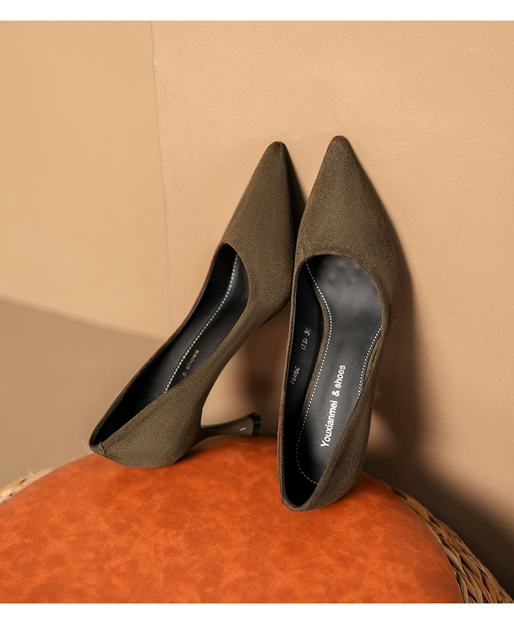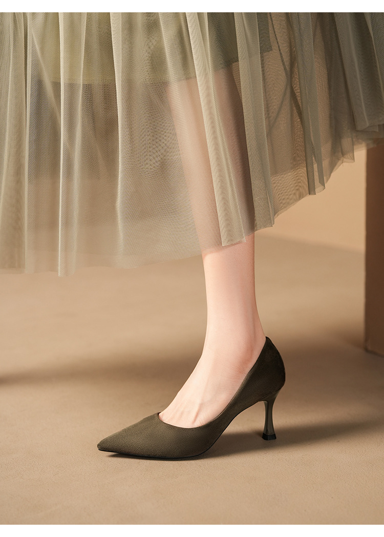 7666C 스웨이드 뾰족한 스틸레토 힐 간단한 기질 여성 신발 피곤하지 않은 발 통근 전문 신발 패션 하이힐