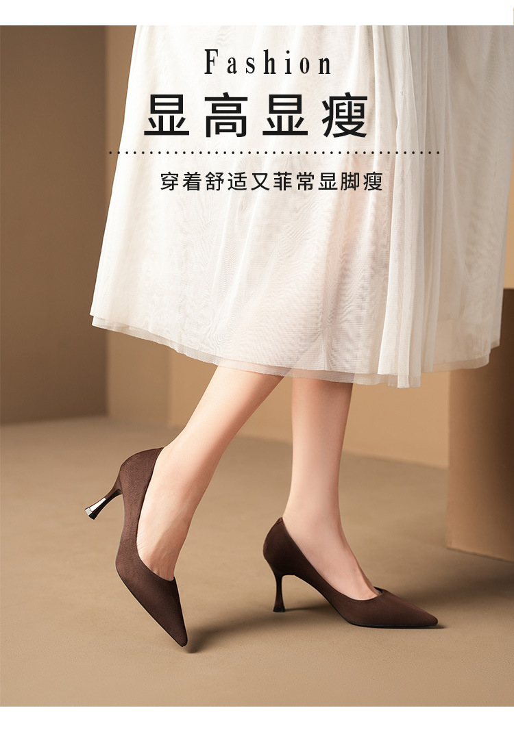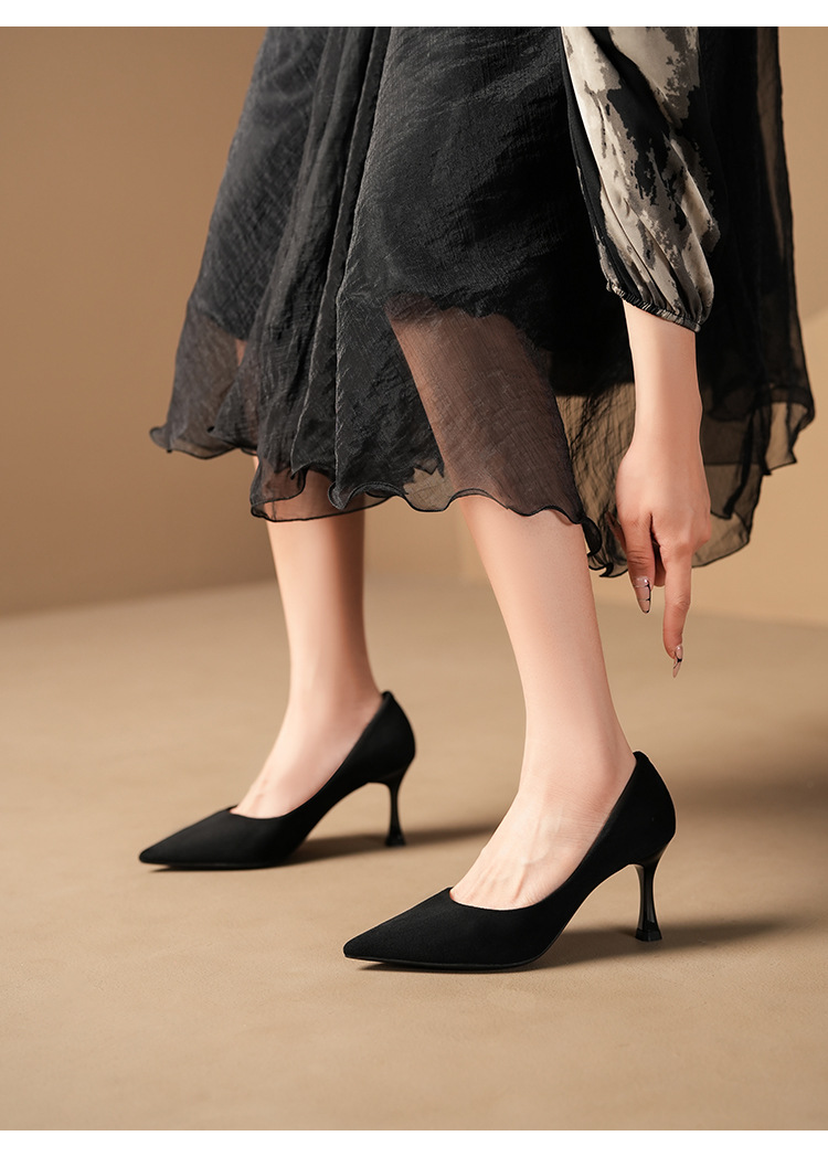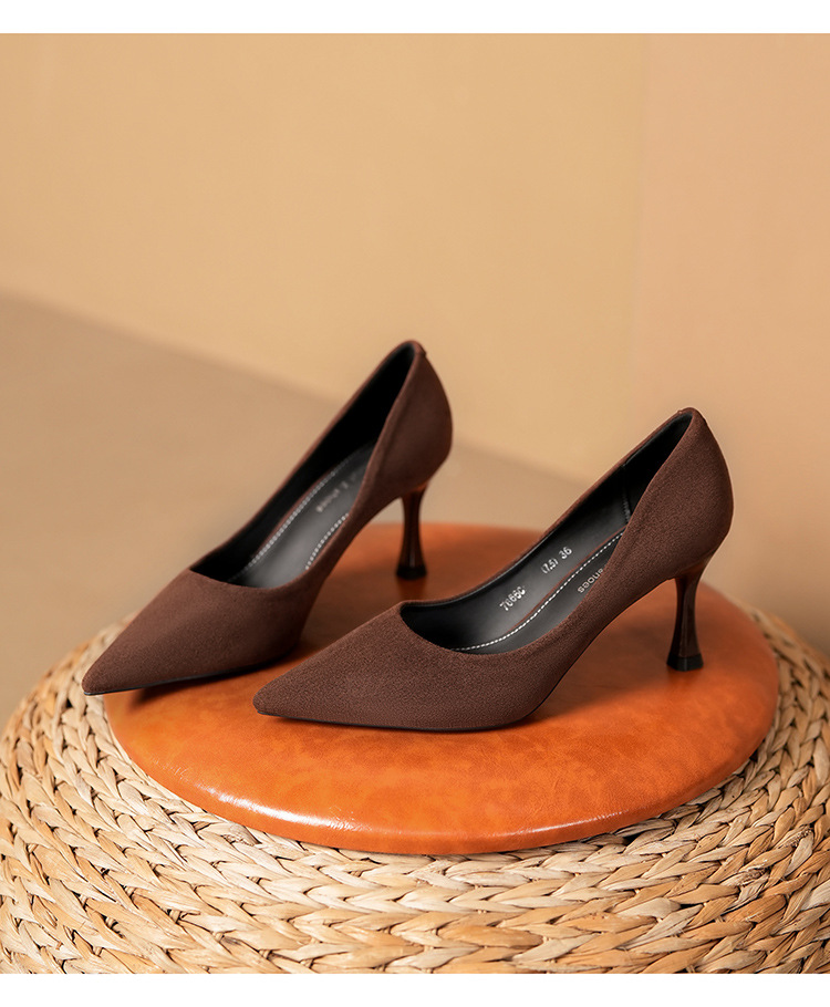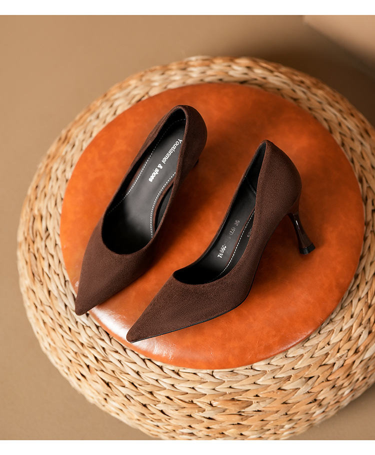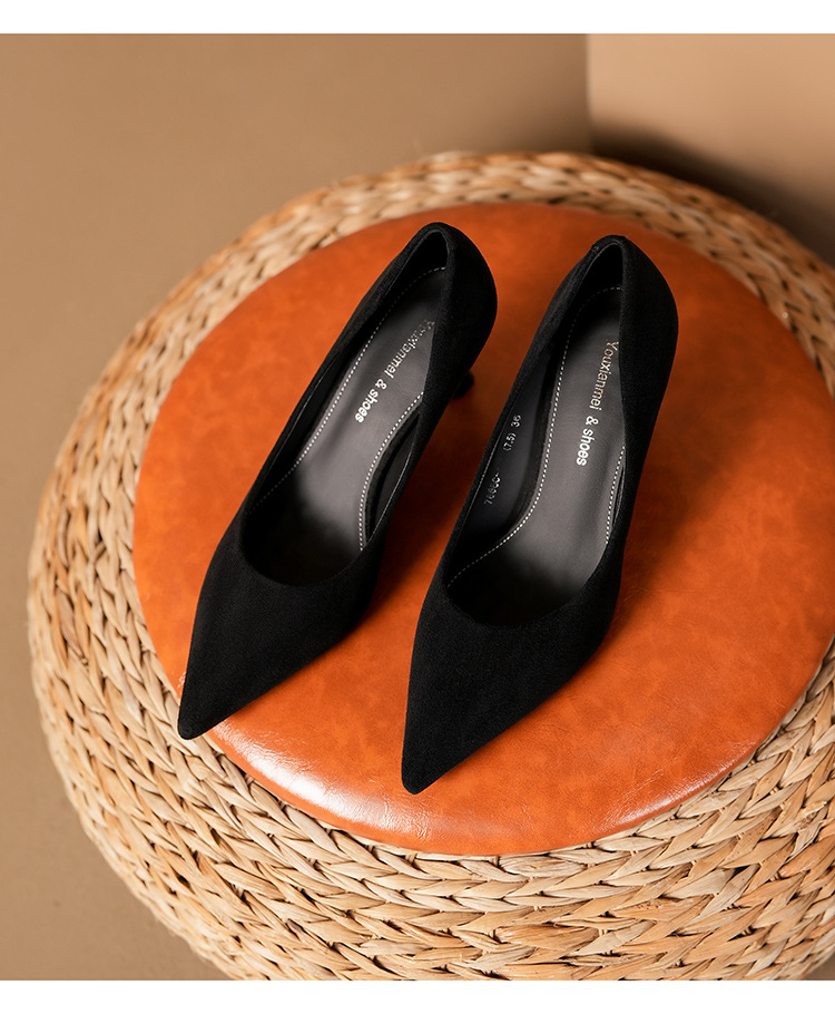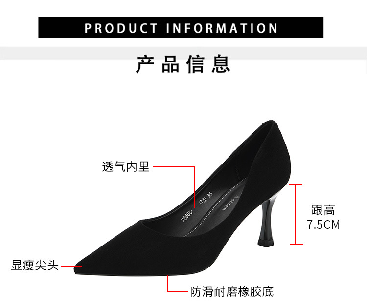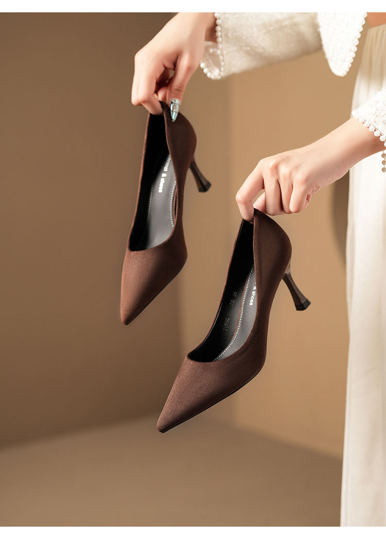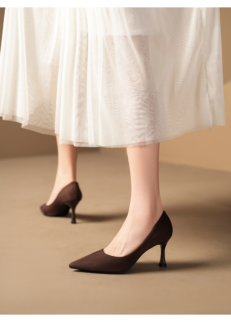 7666C 스웨이드 뾰족한 스틸레토 힐 간단한 기질 여성 신발 피곤하지 않은 발 통근 전문 신발 패션 하이힐