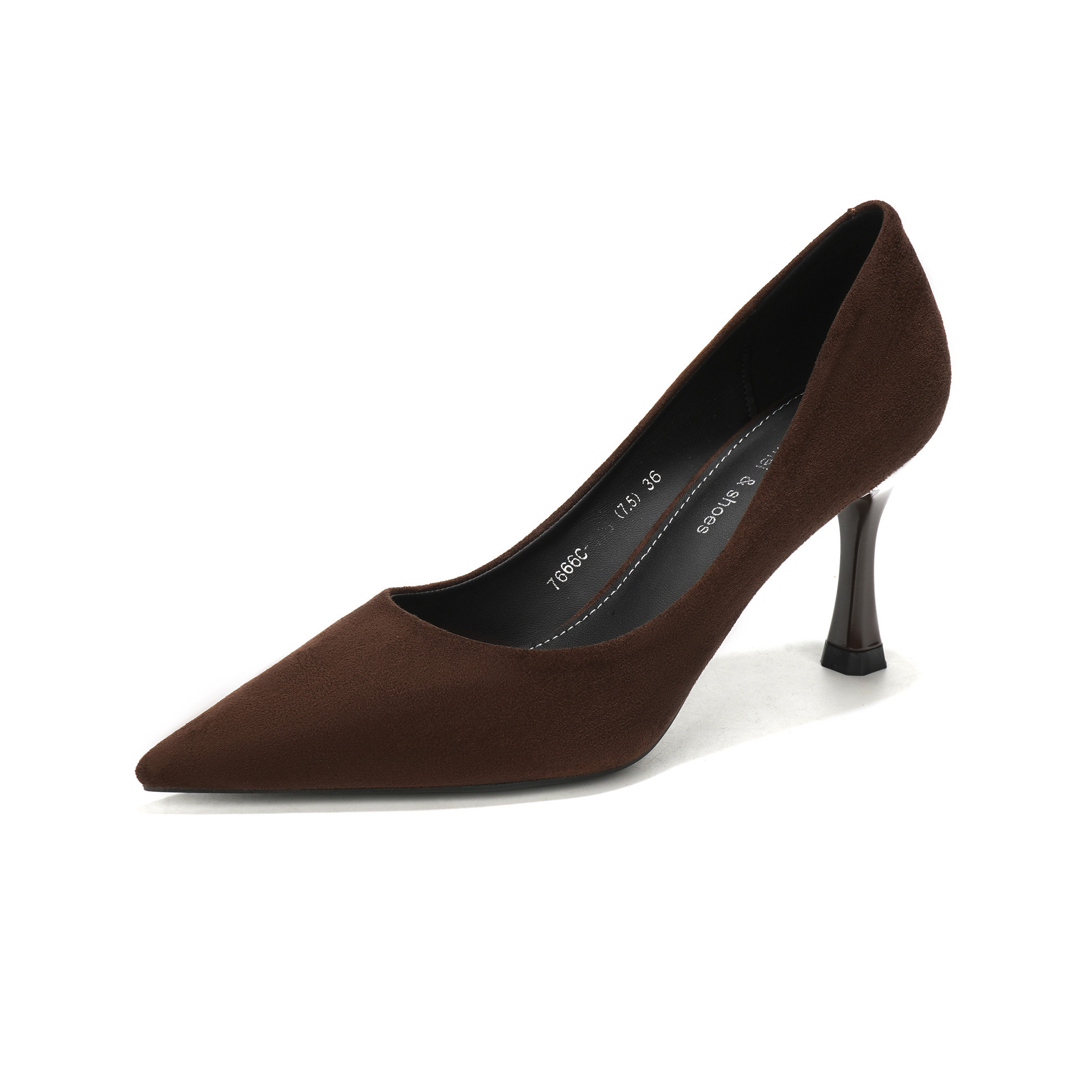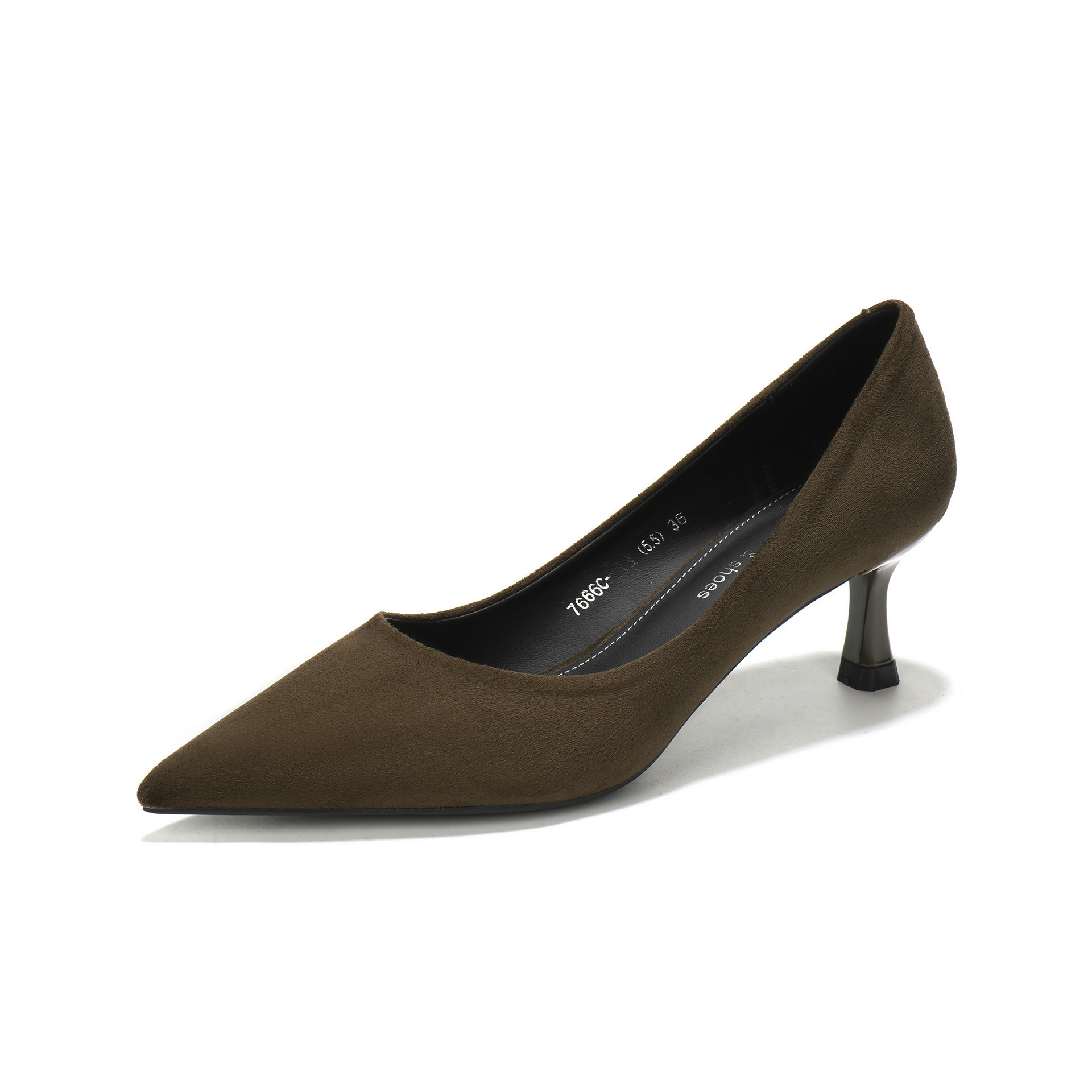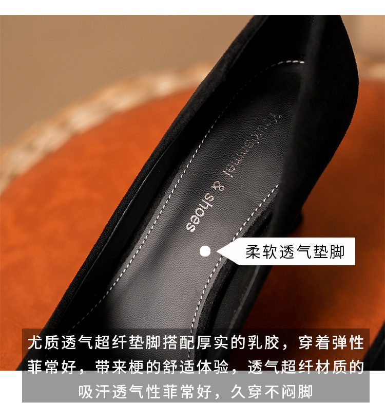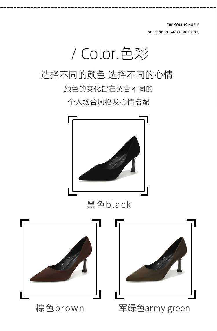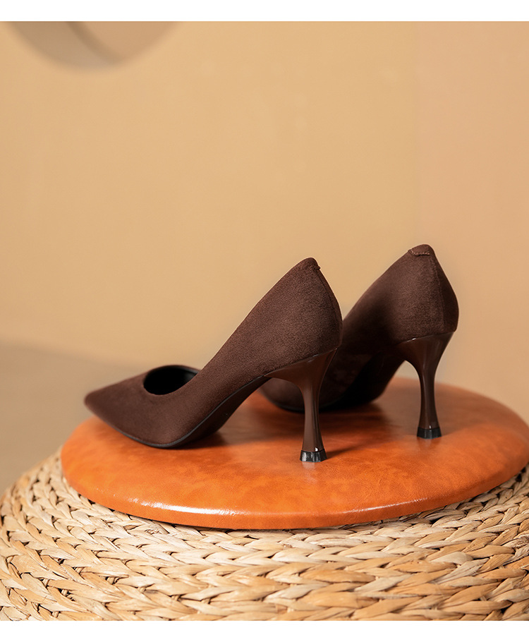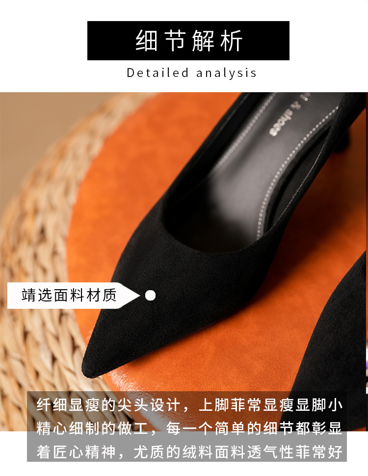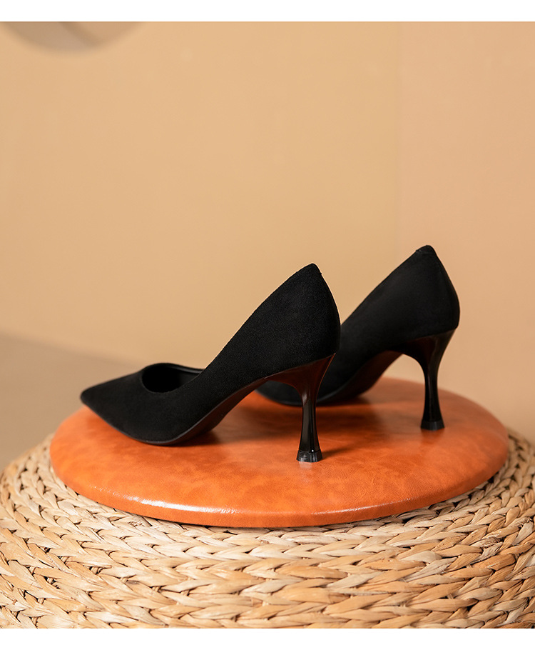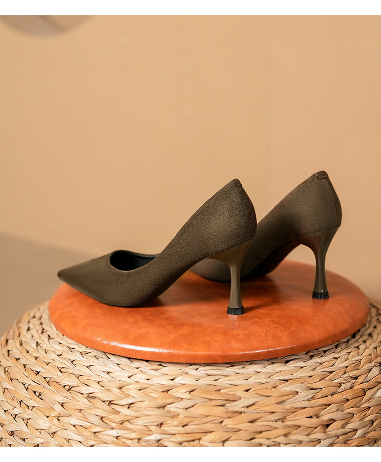 7666C 스웨이드 뾰족한 스틸레토 힐 간단한 기질 여성 신발 피곤하지 않은 발 통근 전문 신발 패션 하이힐