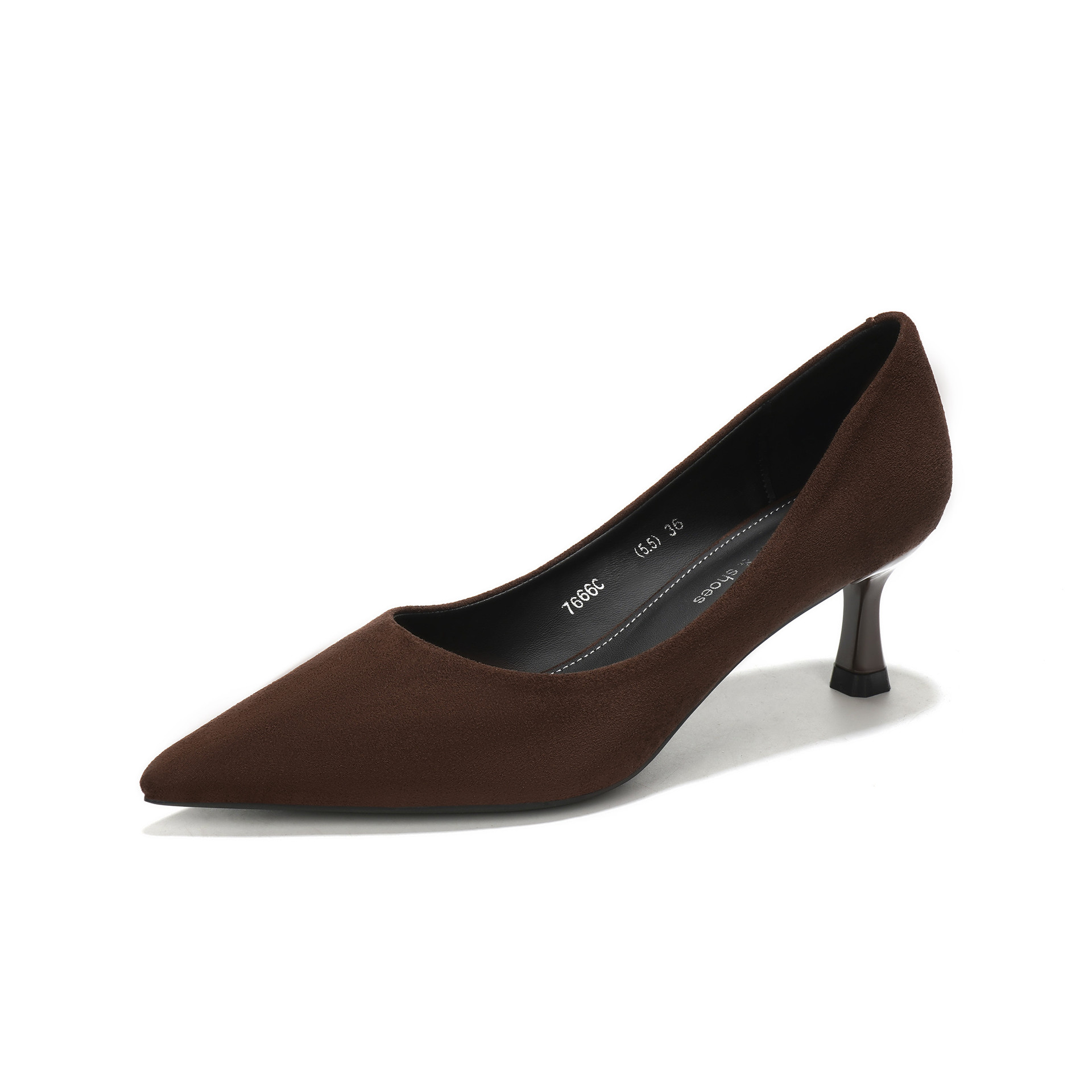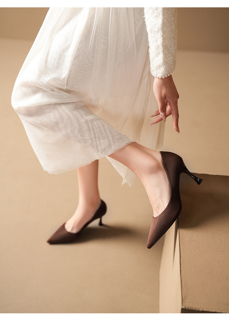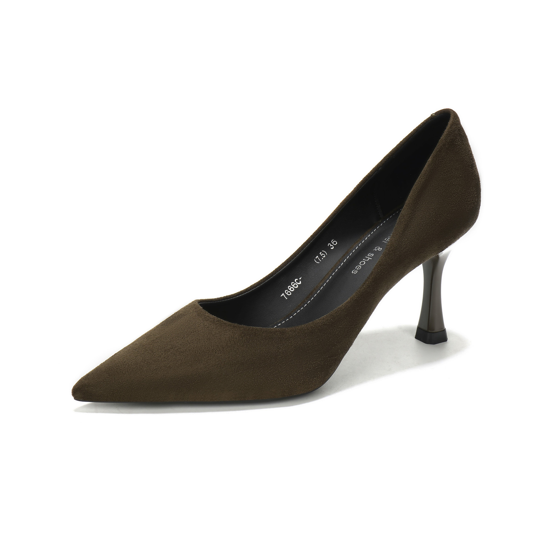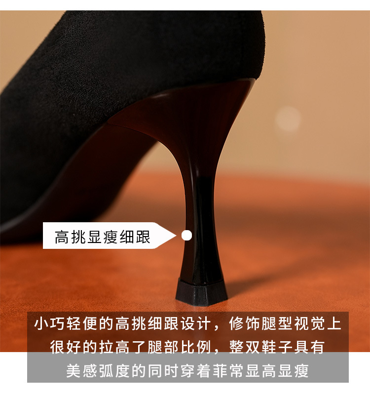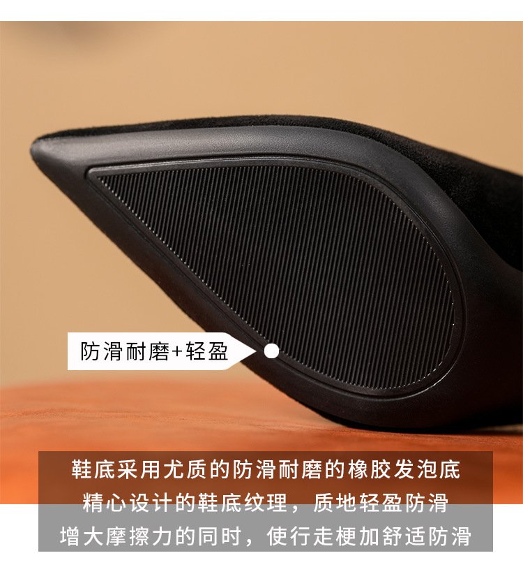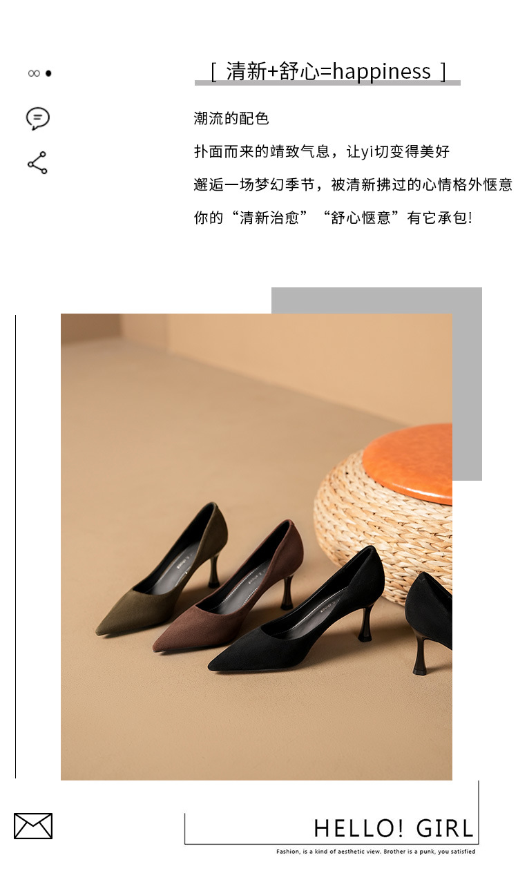 7666C 스웨이드 뾰족한 스틸레토 힐 간단한 기질 여성 신발 피곤하지 않은 발 통근 전문 신발 패션 하이힐